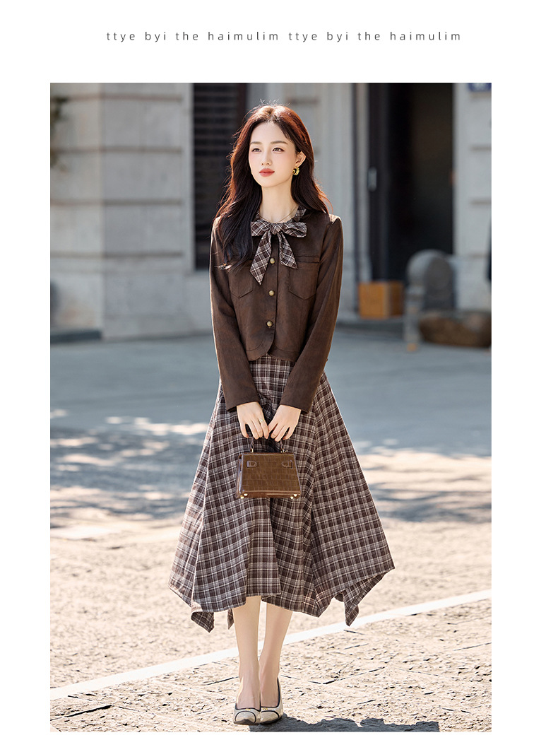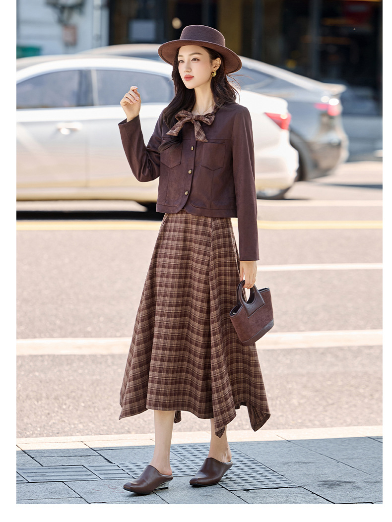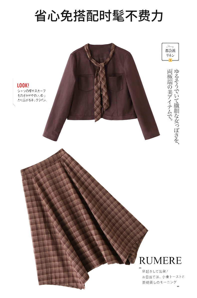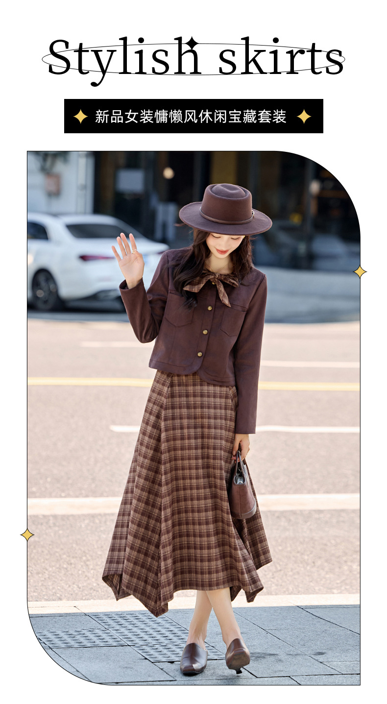 时尚覆古风格纹套装,洋气显瘦短外套半身裙两件套HR-CPYY8165