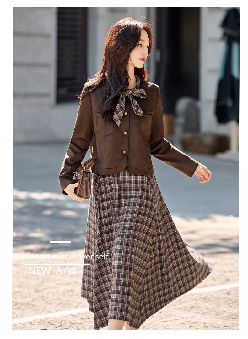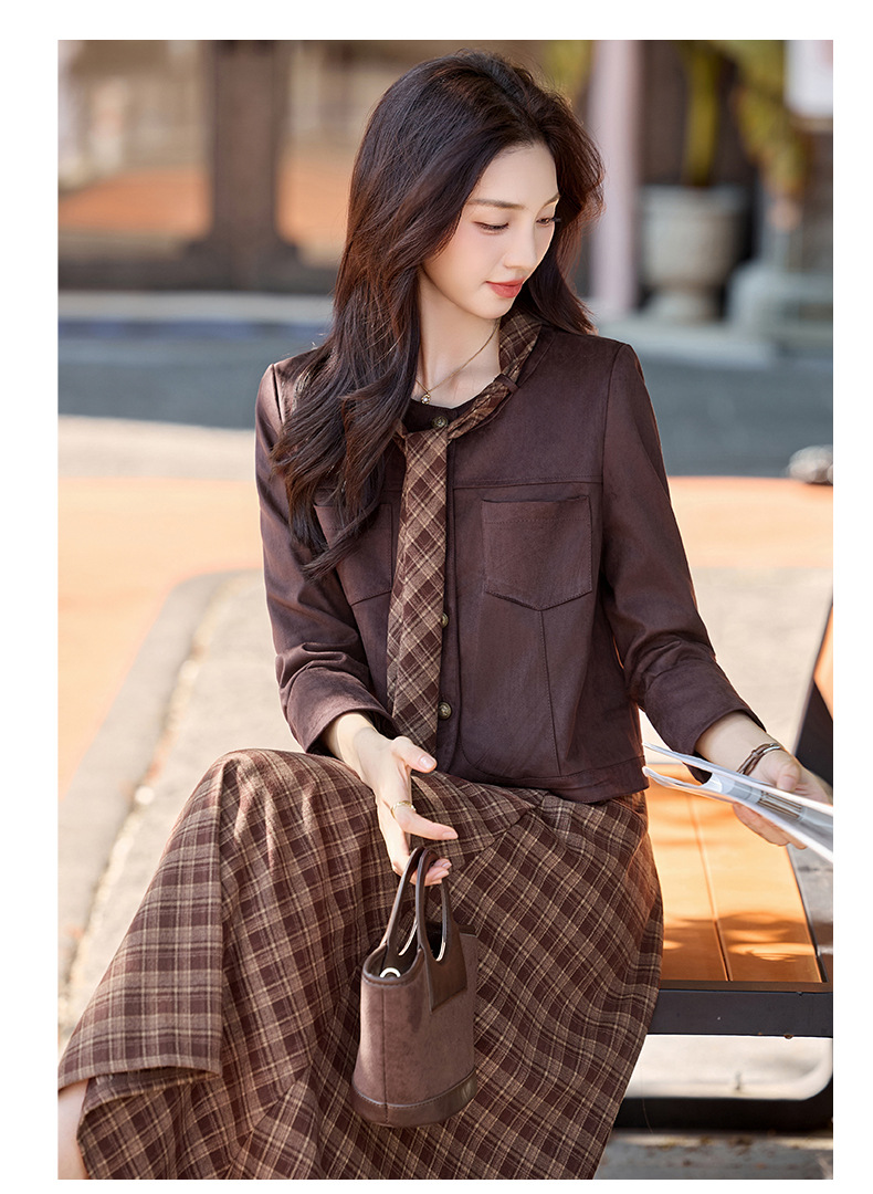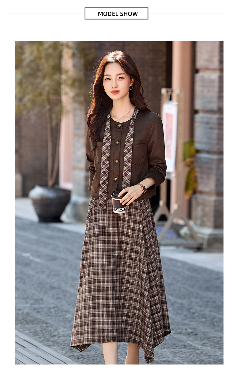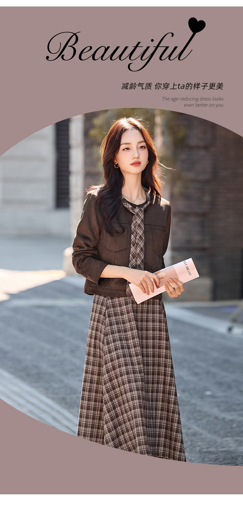 时尚覆古风格纹套装,洋气显瘦短外套半身裙两件套HR-CPYY8165
