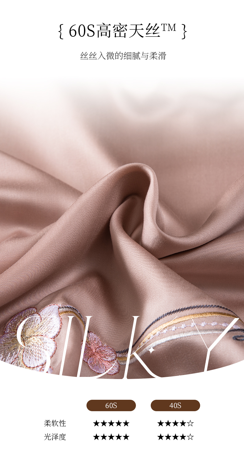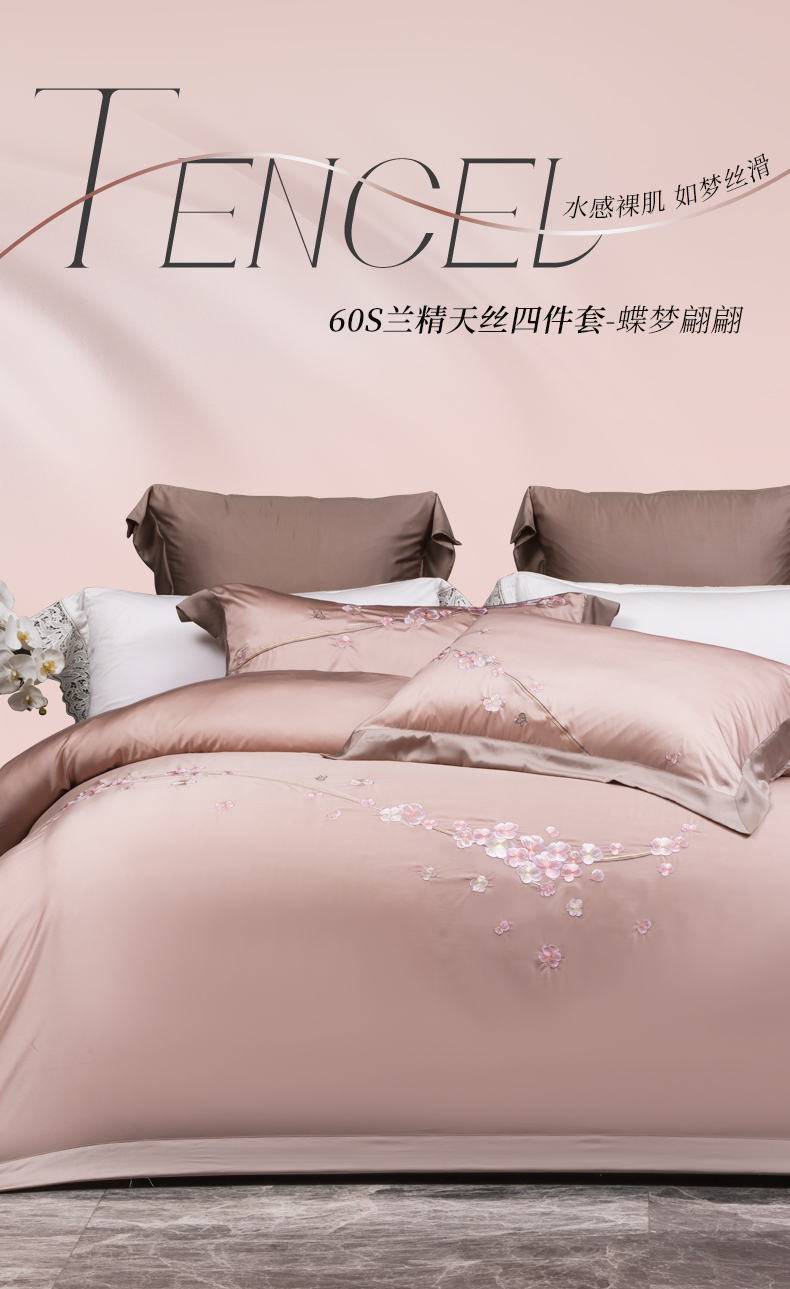 多喜爱 60S兰精天丝刺绣四件套 蝶梦翩翩 丝滑 亮泽真丝 奥地利进口兰精天丝 莱赛尔纤维 高密天丝 精美刺绣专利床单 兰花礼盒装
