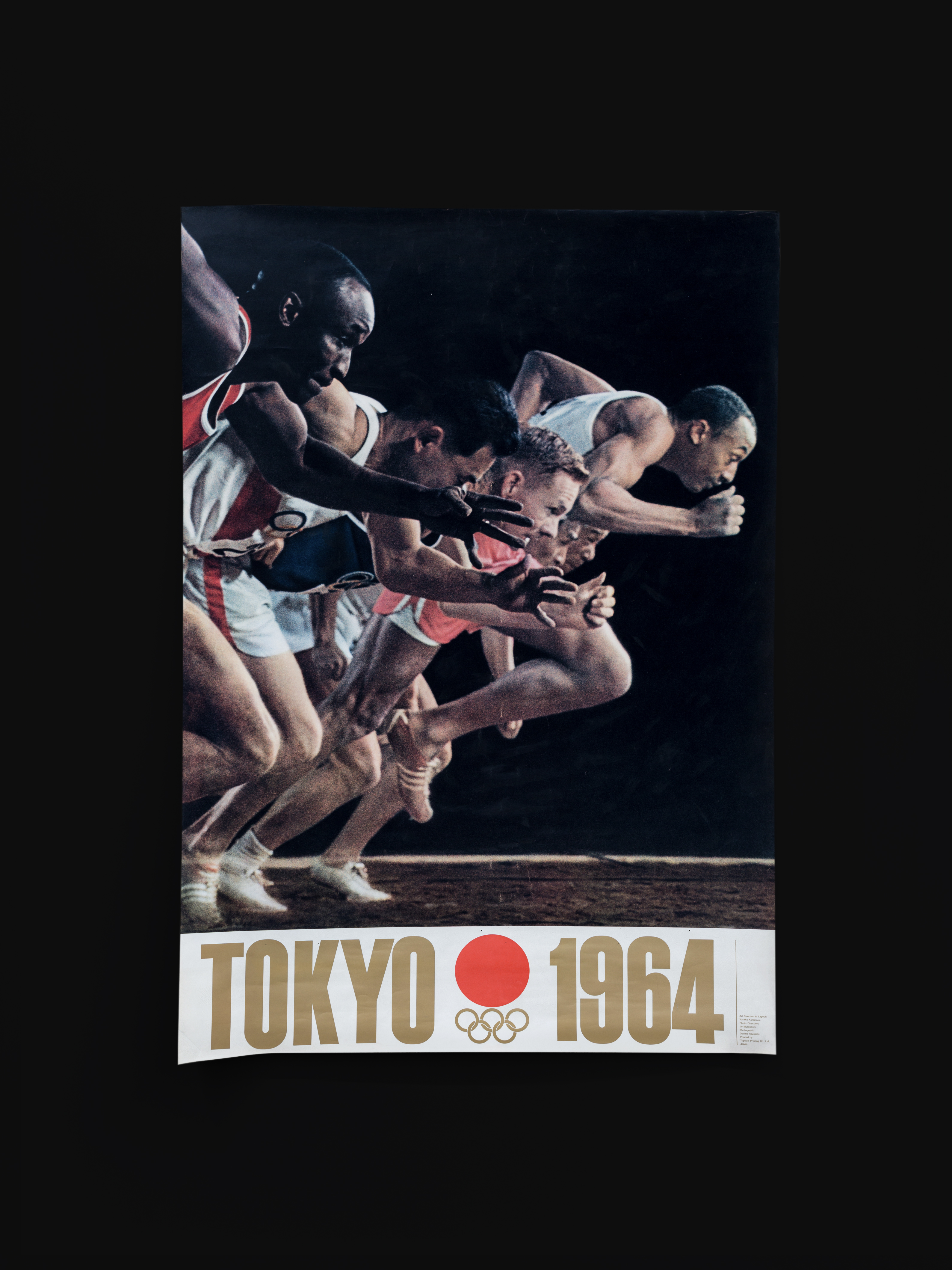 这也是奥运会历史上第一次用照片做海报 , 摄影师是日本广告界的中坚人物早崎治。海报中的奥运会logo由龟仓雄策亲自设计,红金色系的搭配让人联想到初升的太阳,昭示着大和民族战后的全面崛起。在奥运会举办前夕的1964年十月一日,日本第一条东海道新干线通车,成为世界上第一条高速铁路车辆。在这样的时代跟社会背景下应运而生的平面设计承载了人们对未来的期许,以及日本在战后重建中的需求:发展、更新换代。由此 , 1964奥运会海报向世界展现了日本战后的全新国际形象。