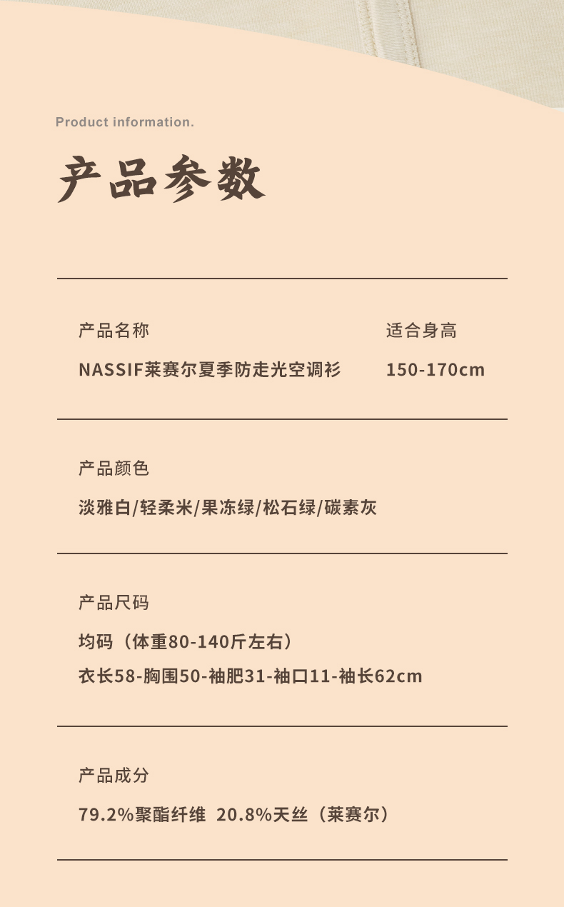 【一穿就变美】NASSIF莱赛尔防走光空调衫凉爽透气防止走光搭配穿着场景更多样