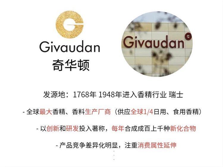 奇华顿香精(Givaudan):香氛界全球顶尖香精巨头,超200年调香底蕴,与众多知名香水品牌合作。