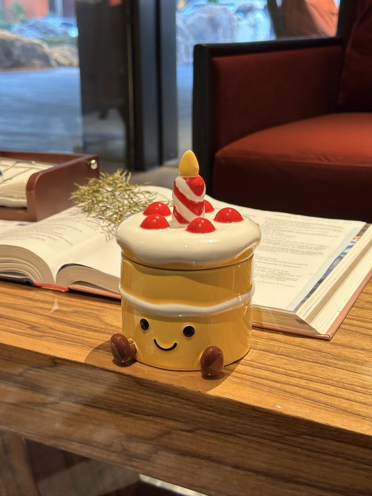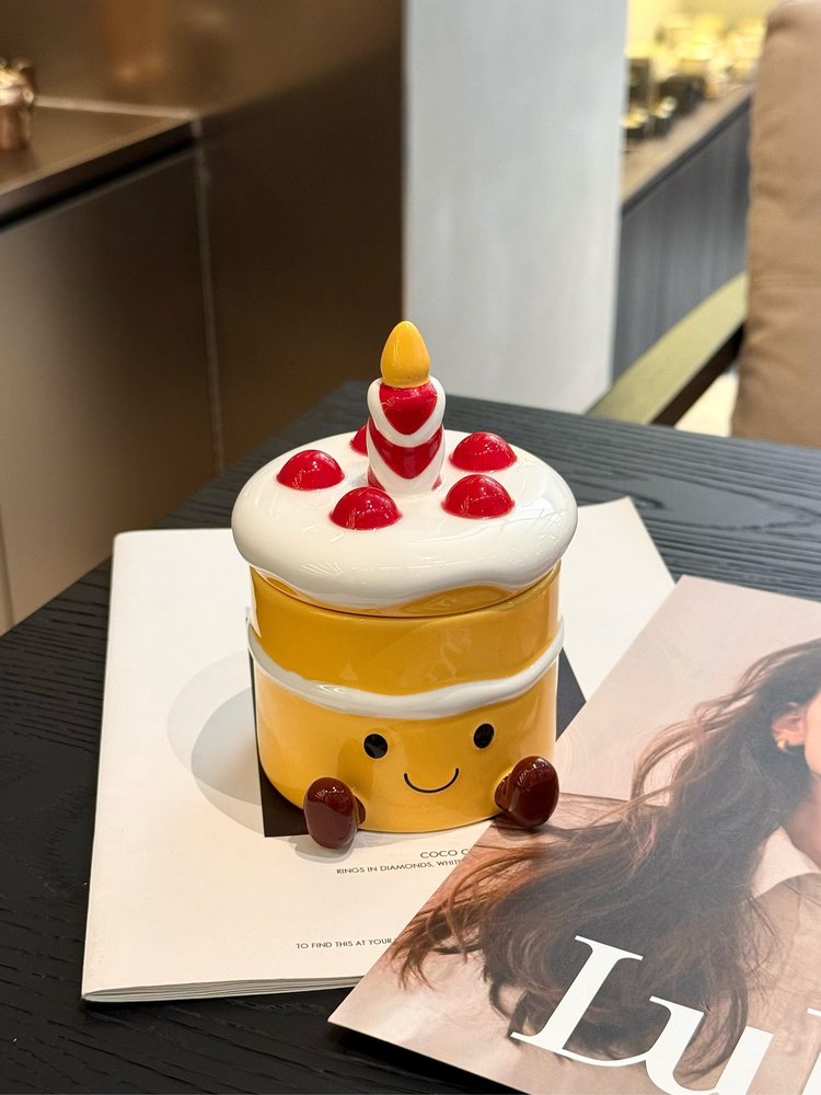 「萌趣蛋糕款」:顶着蜡烛的萌萌蛋糕造型,复刻奶油蛋糕立体感,奶白糖霜配鲜红“樱桃”,红白条纹蜡烛似将闪烁烛光,暖黄色蛋糕体带治愈笑脸,还有萌萌小短腿“站”桌,童趣感爆棚。点燃后,前调绿色柑橘与佛手柑清新脱俗,如清晨露水让人清醒;中调百合与玫瑰花香温柔浪漫,似置身花海;后调雪松木、广藿香、麝香和琥珀木质香沉稳温暖,给人安心之感。