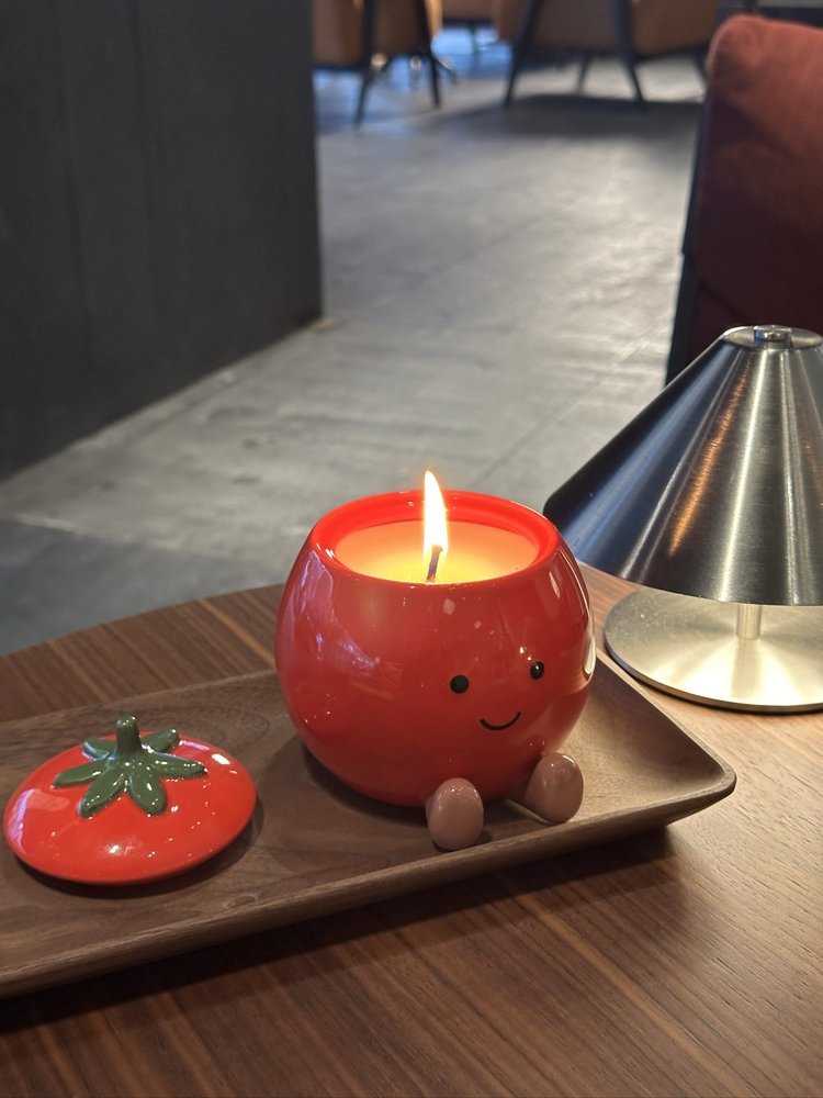 「番茄萌宝款」:红彤彤番茄造型憨态可掬,翠绿蒂叶配圆润果身,小脚丫可爱。点燃后,味道清新自然独特,仿佛置身菜园或果园,充满生命力与自然有机感。