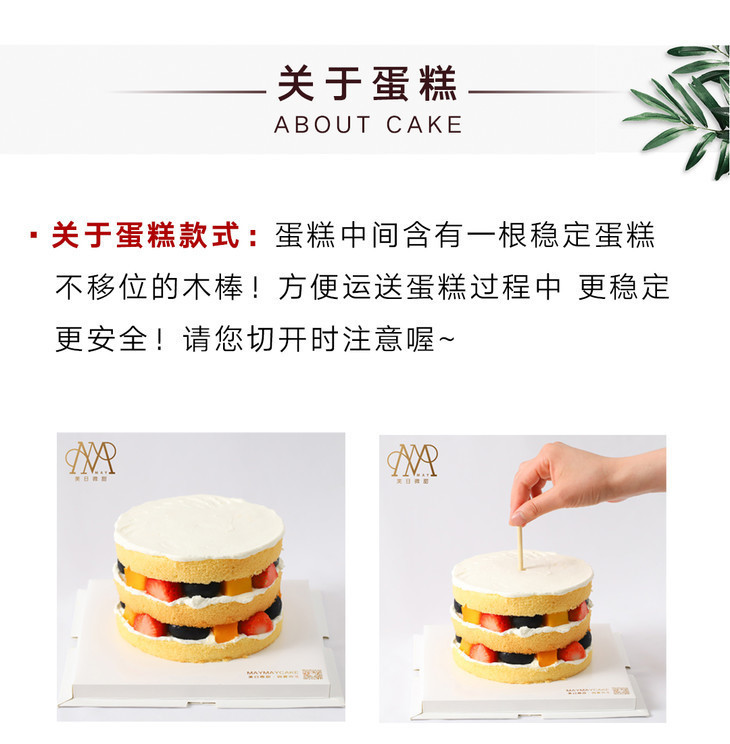 MAYMAYCAKE是一家高端定制最潮最新蛋糕店,坚持选用进口原料,每日纯手工用心制作,只为每位顾客尝试最美味的放心。一心一意做蛋糕,把它做到极致。每款蛋糕都有一个故事一个回忆,因为蛋糕而喜欢上生