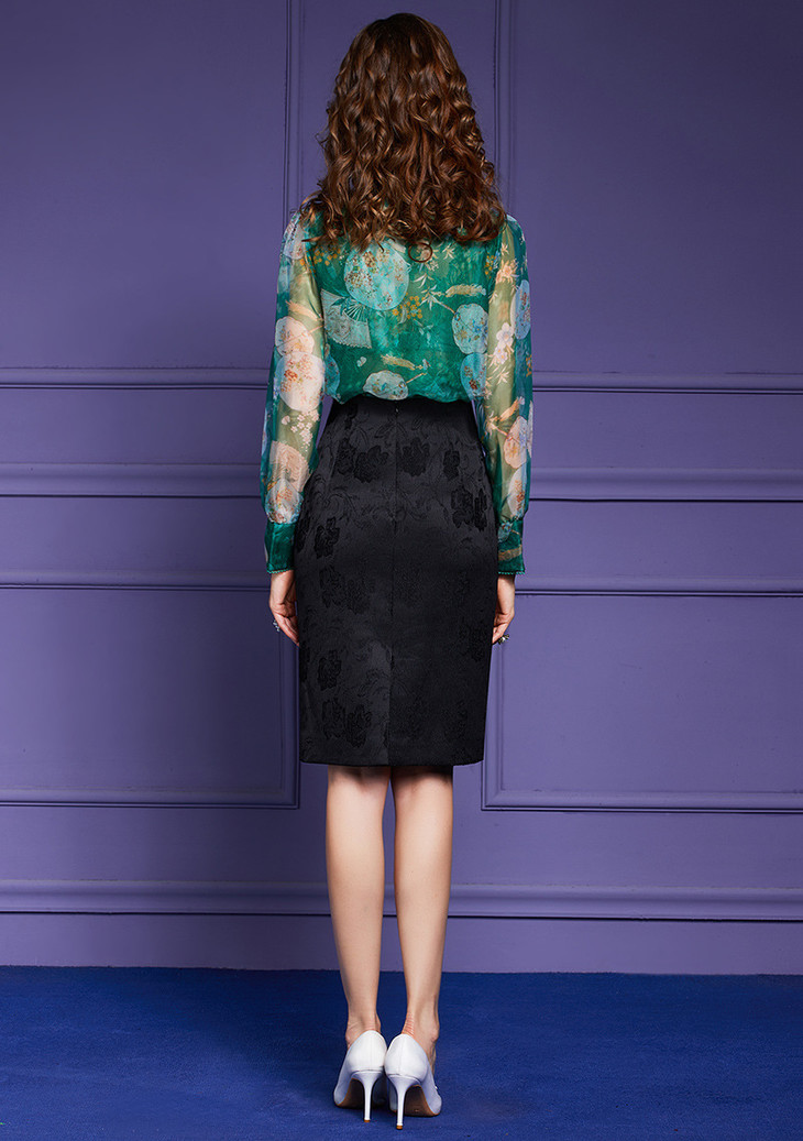 FMY43988新款复古优雅气质立领盘扣长袖欧根纱衬衫