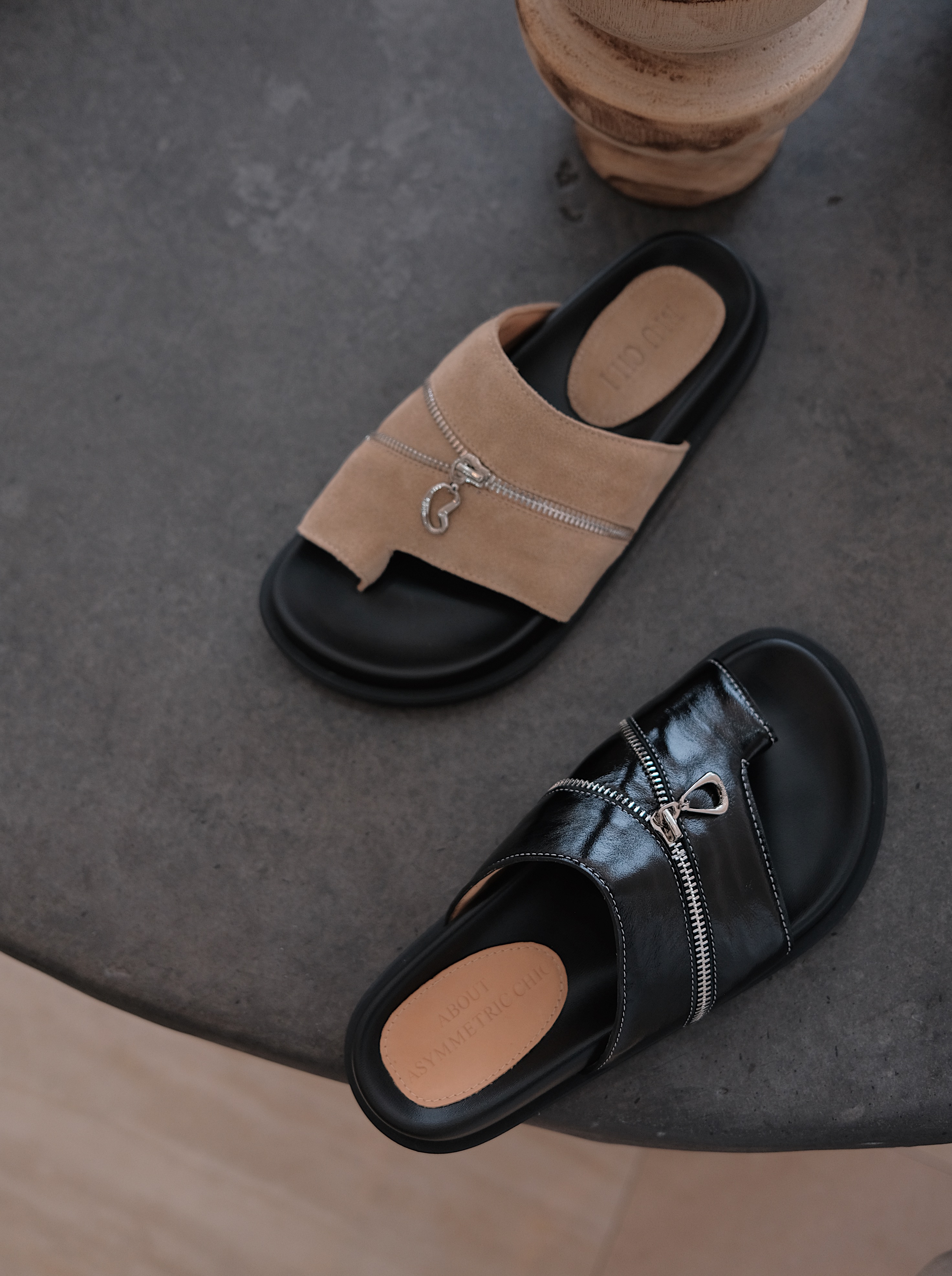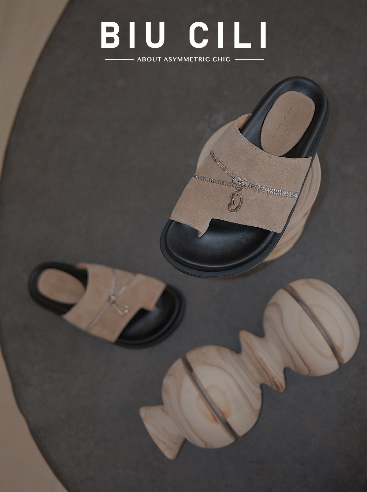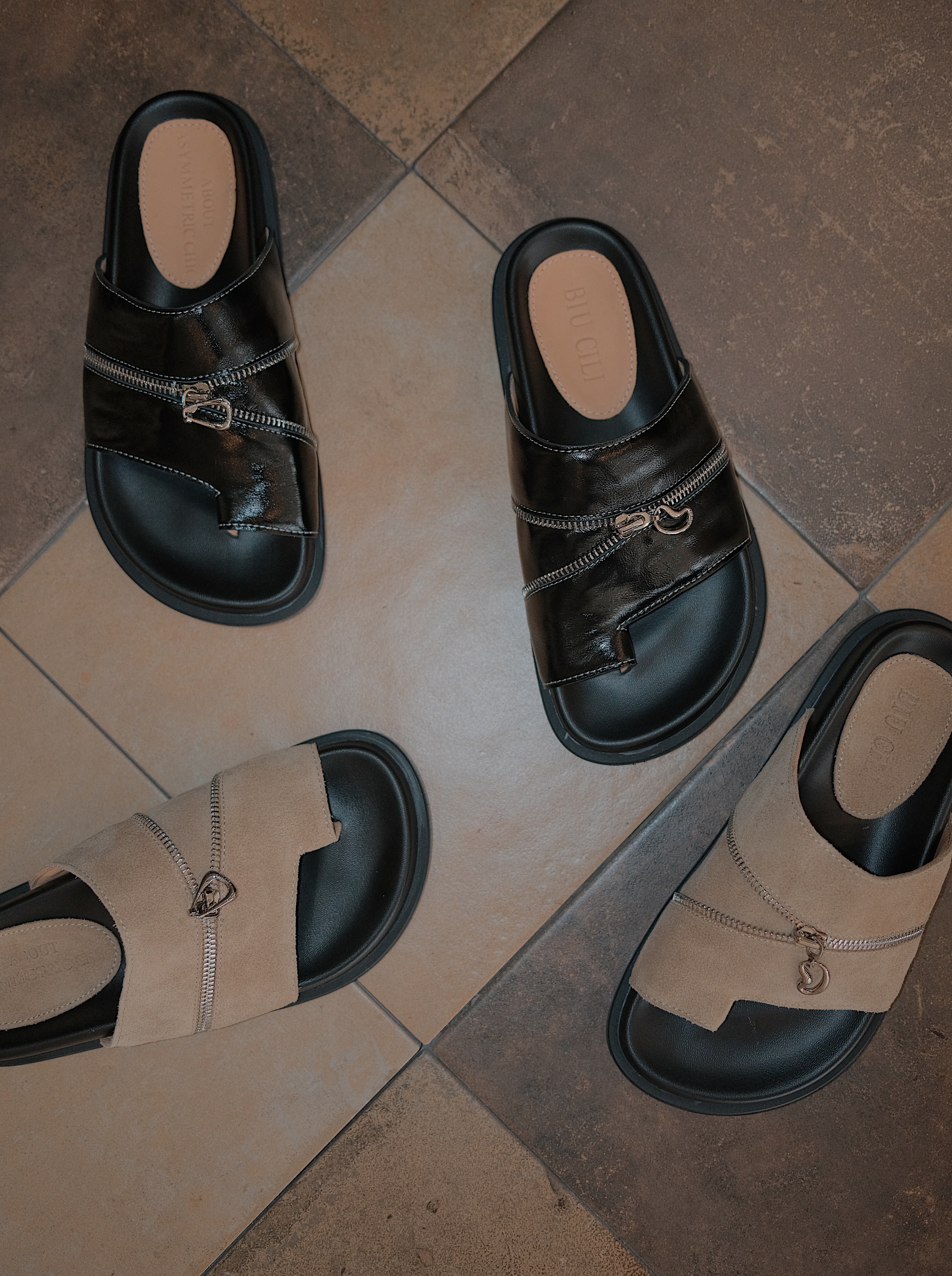BIUCILI原创设计解构拉链夹脚勃肯 拖鞋懒人凉鞋