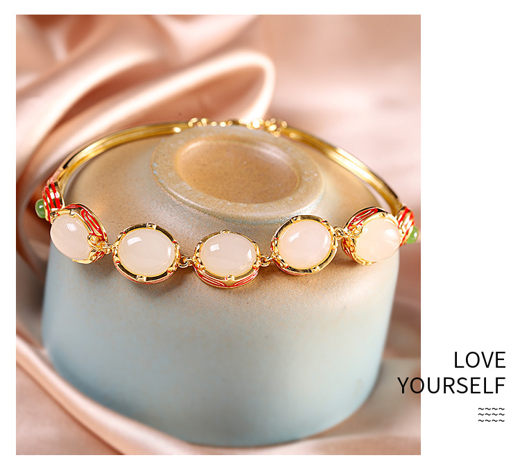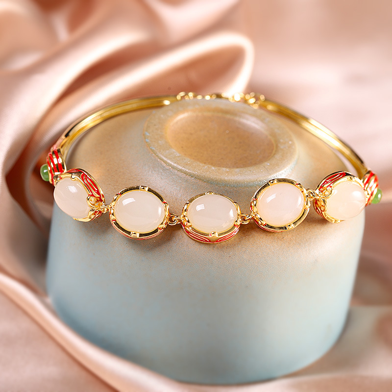 RP-SL01185S925银女式珐琅和田玉手链