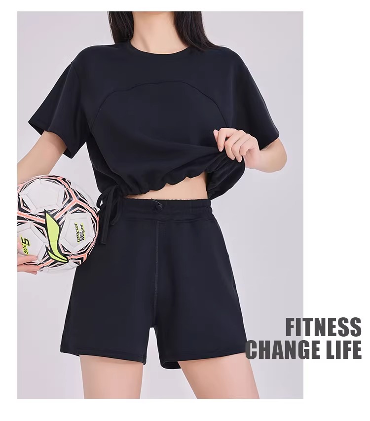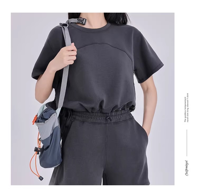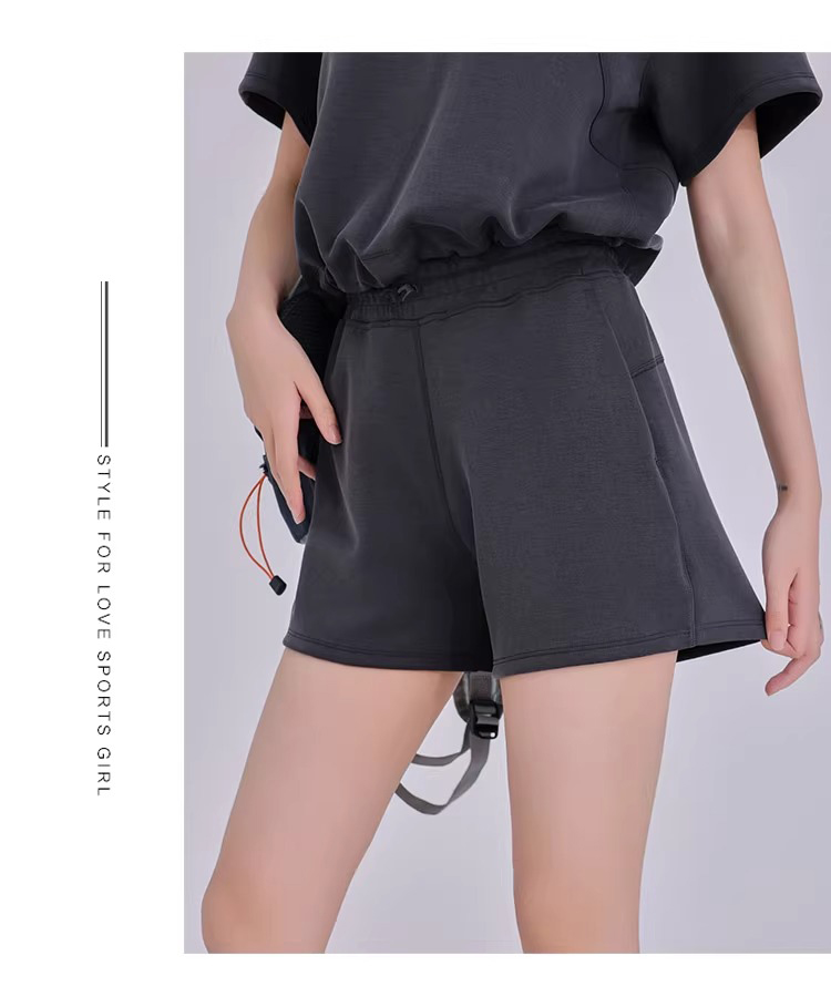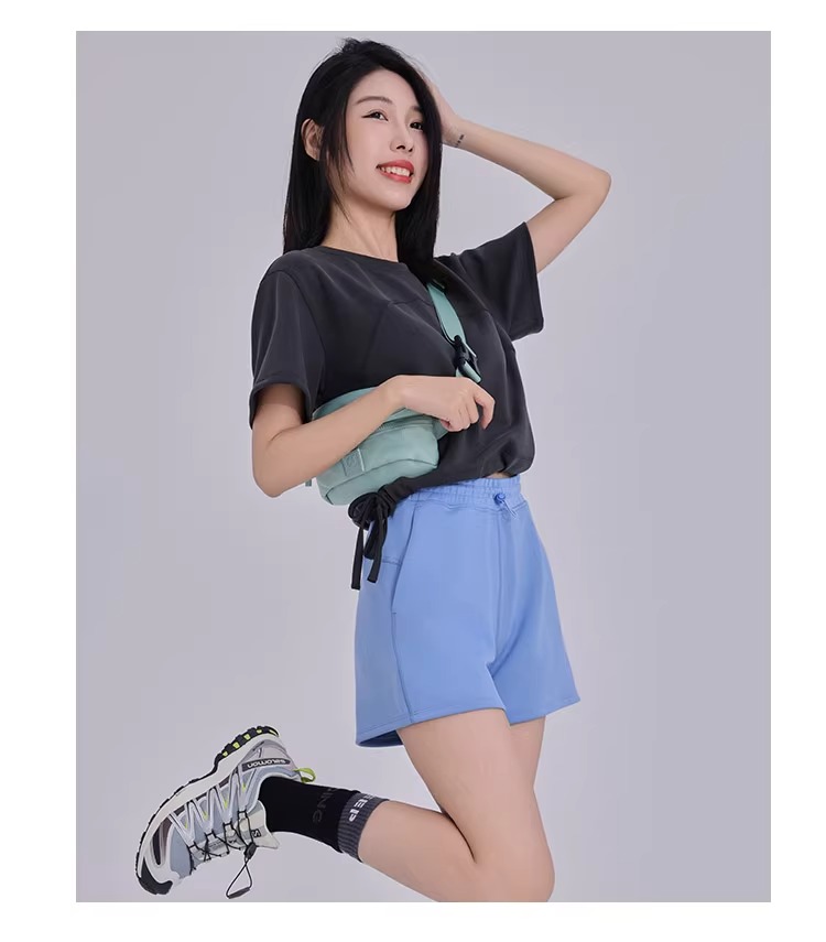 跃牌【倚窗听雨】系列 三分裤女砂洗莫代尔高腰调节扣跑步运动健身瑜伽短裤DK051