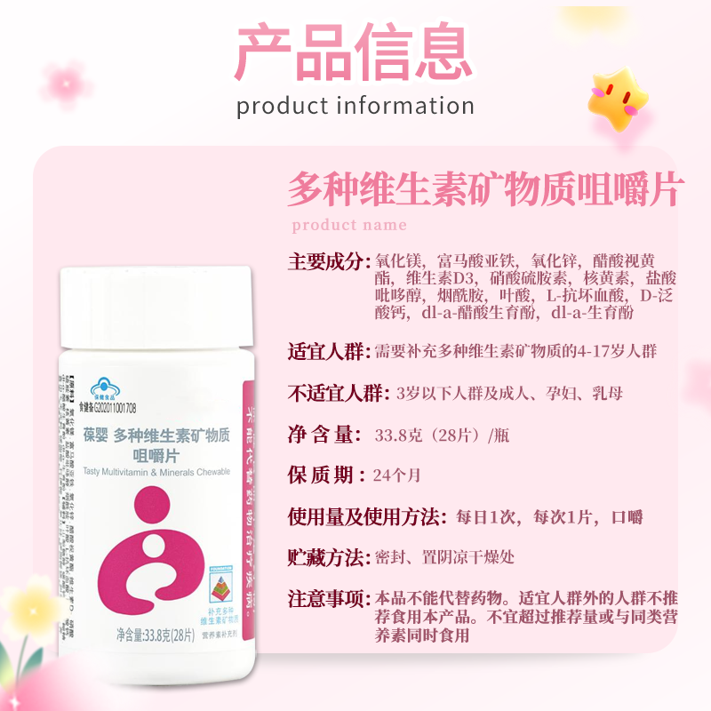 葆婴多种维生素矿物质咀嚼片33.8g(28片)