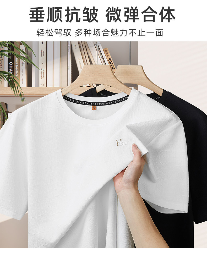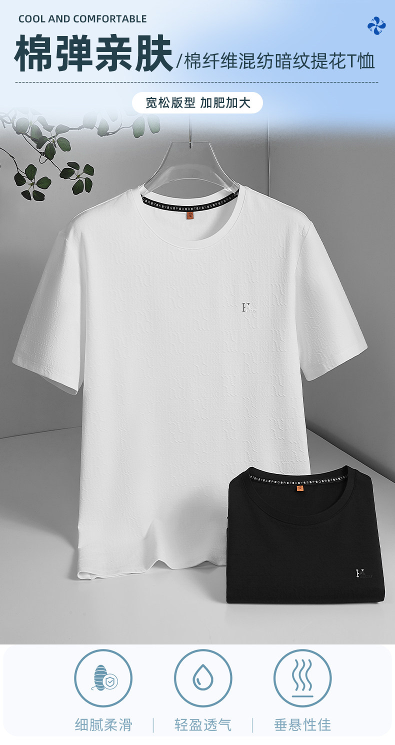 【DWP】大依优型大码男装夏季圆领短袖T恤棉质透气上衣商务休闲百搭男士