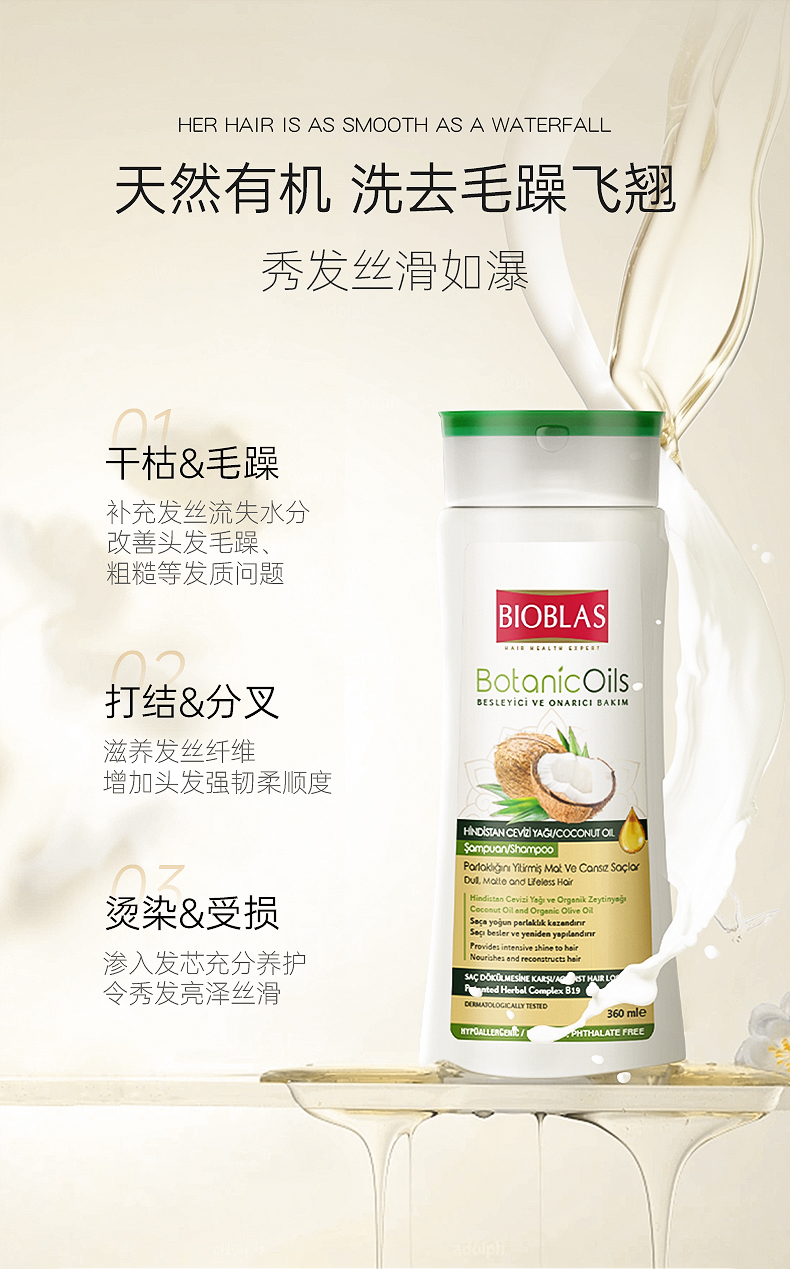 Bioblas德国椰子油洗发水柔顺改善毛躁干枯补水保湿滋润干性发质沙发专用