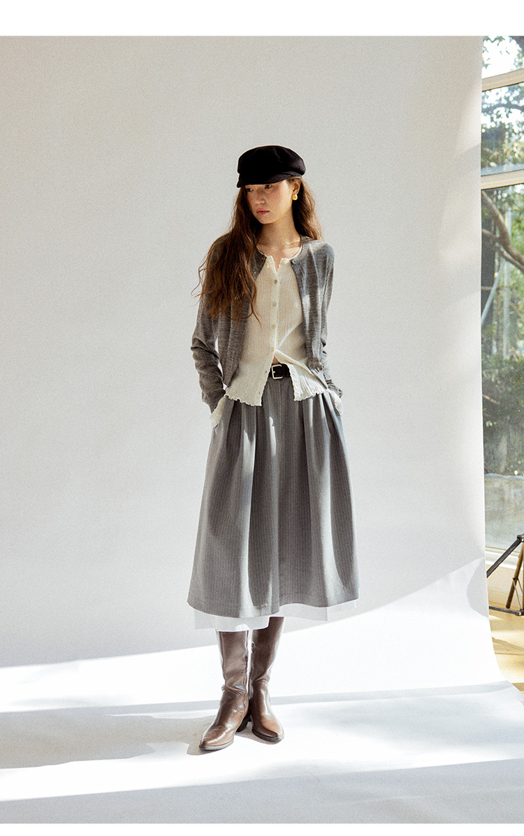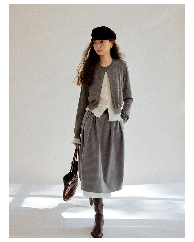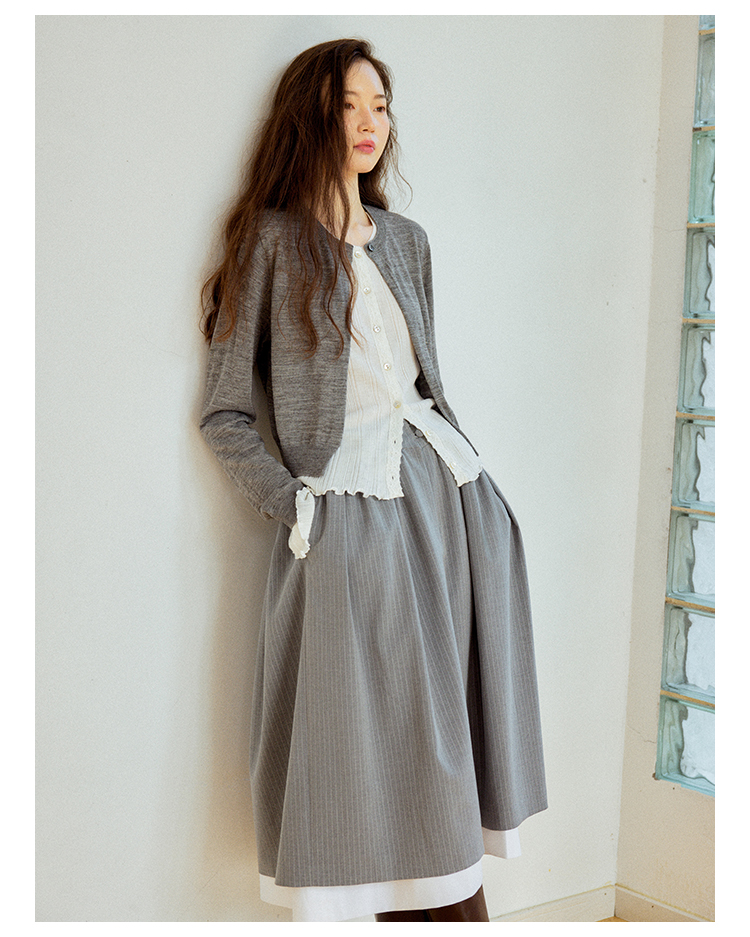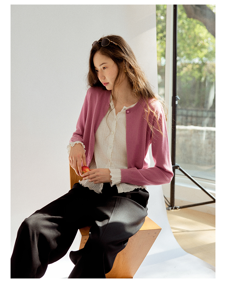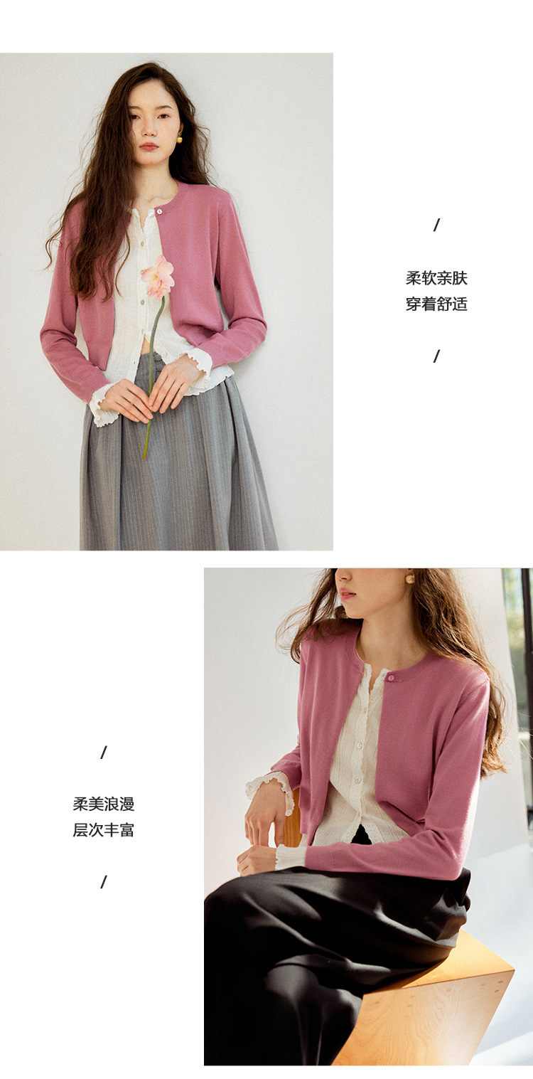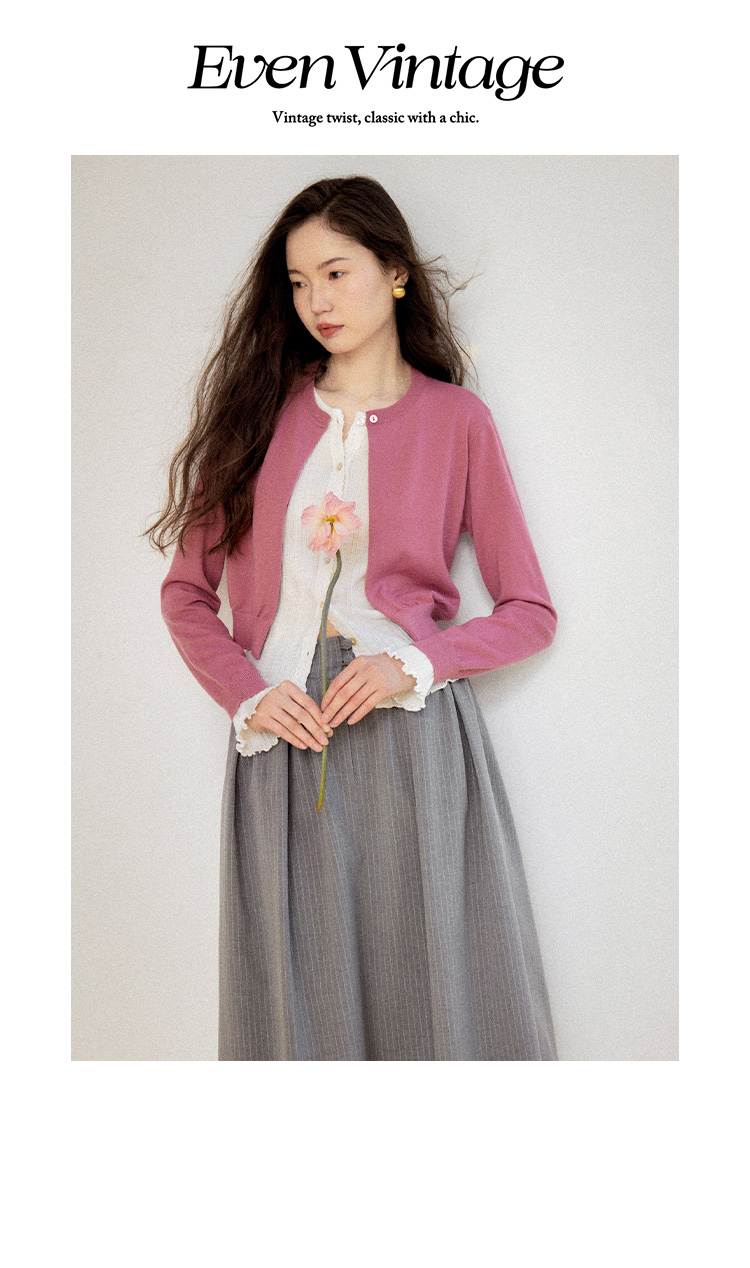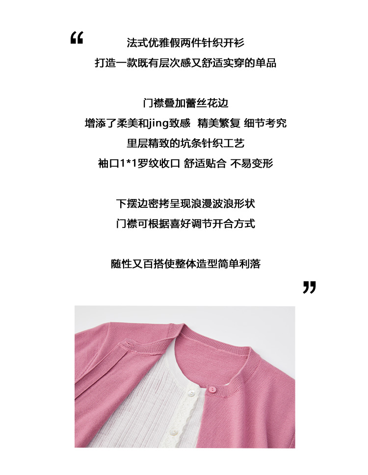 Even Vintage|100%羊毛 早春优雅精美蕾丝花边假两件针织开衫毛衣