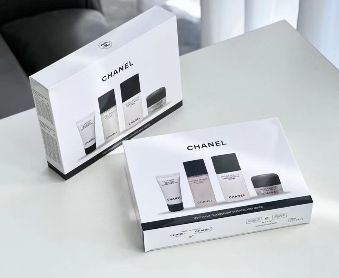 Chanel香奈儿山茶花护肤品套装🖤润泽微精华面霜洗面奶中小样四件套⚠️超级实用!全部都是香奶奶家明星产品!没有一款会踩雷!日常出门携带非常便捷!