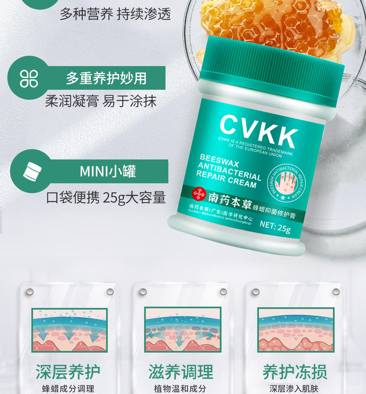 【限时特惠!拍1发3】南药本草蜂蜡修护膏英国CVKK联合南药本草多方共同研发、深层滋养防干裂、抚平毛刺、死皮、温和不刺激、一瓶=预防+滋养+修复!