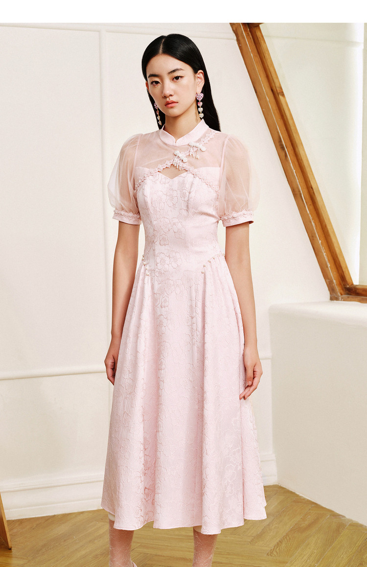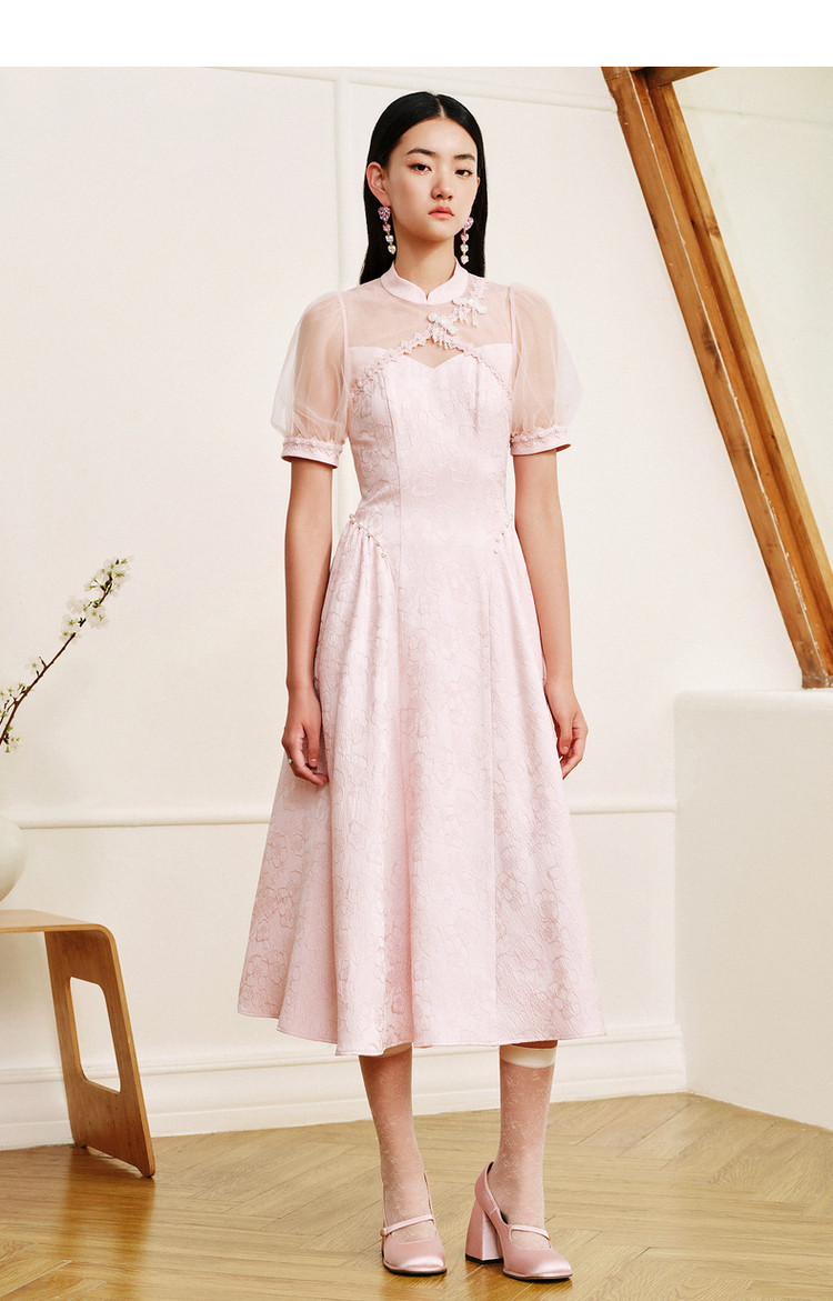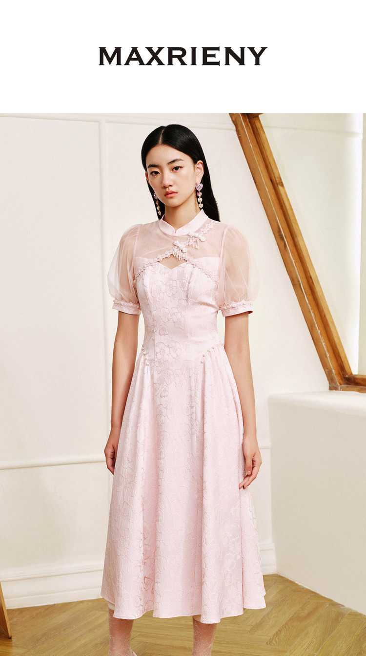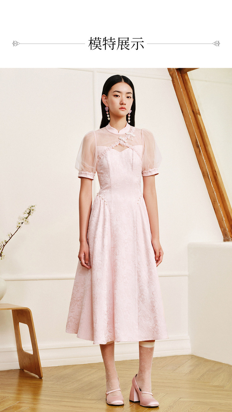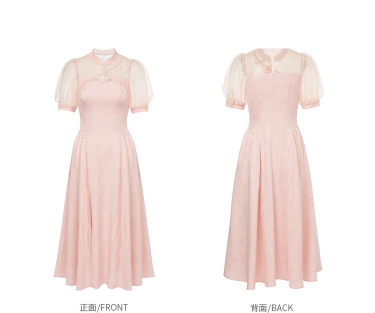 国风新中式复古感连衣裙夏日温柔感盘扣提花