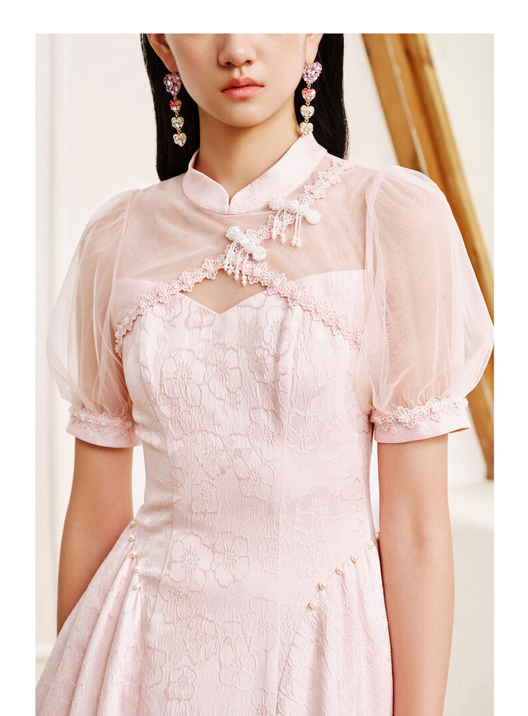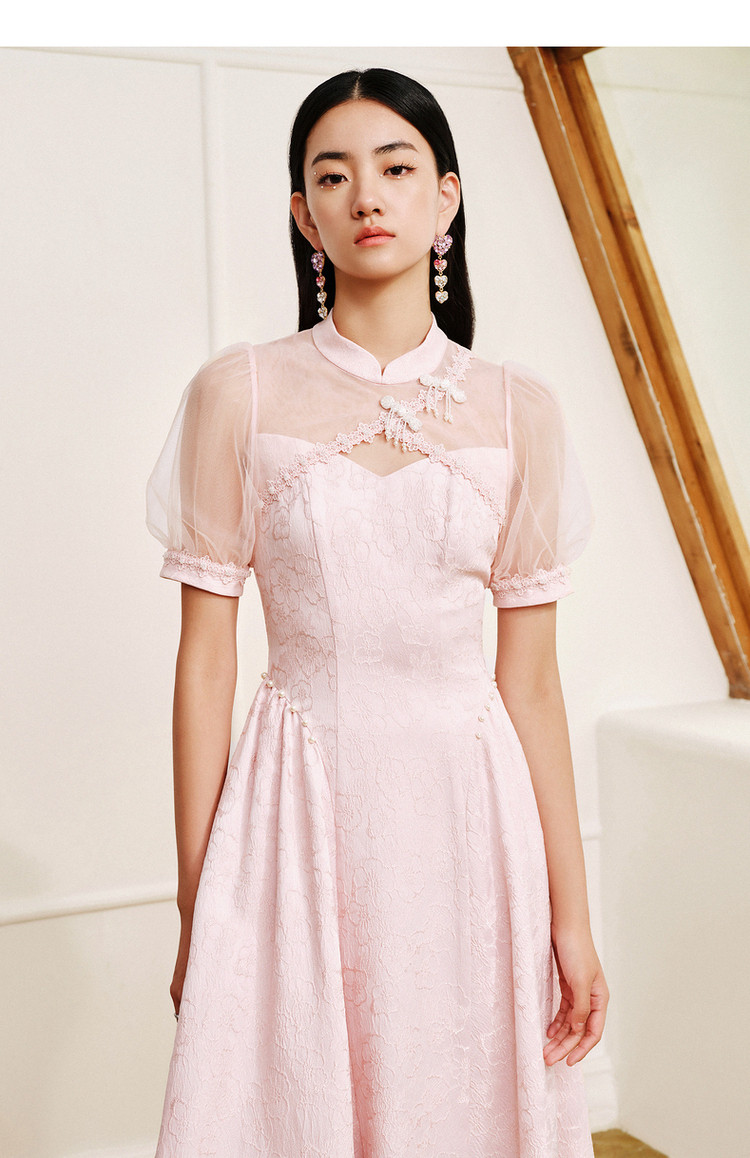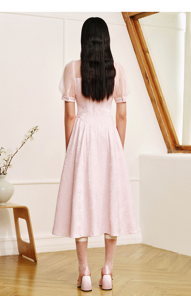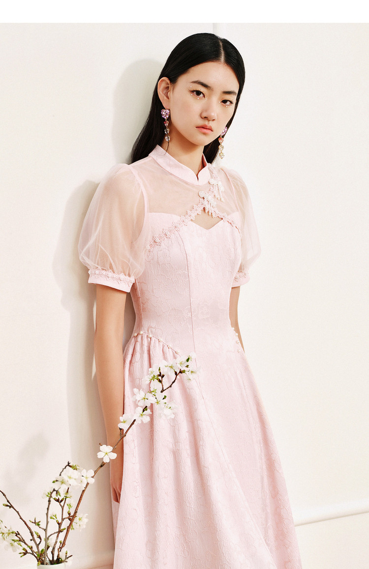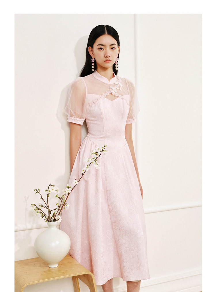 国风新中式复古感连衣裙夏日温柔感盘扣提花