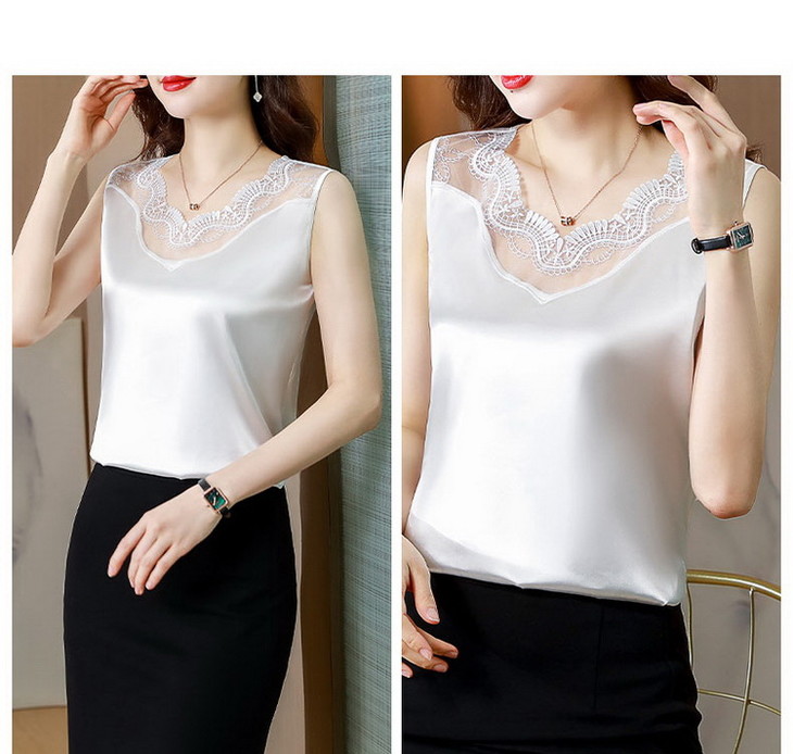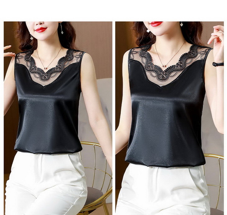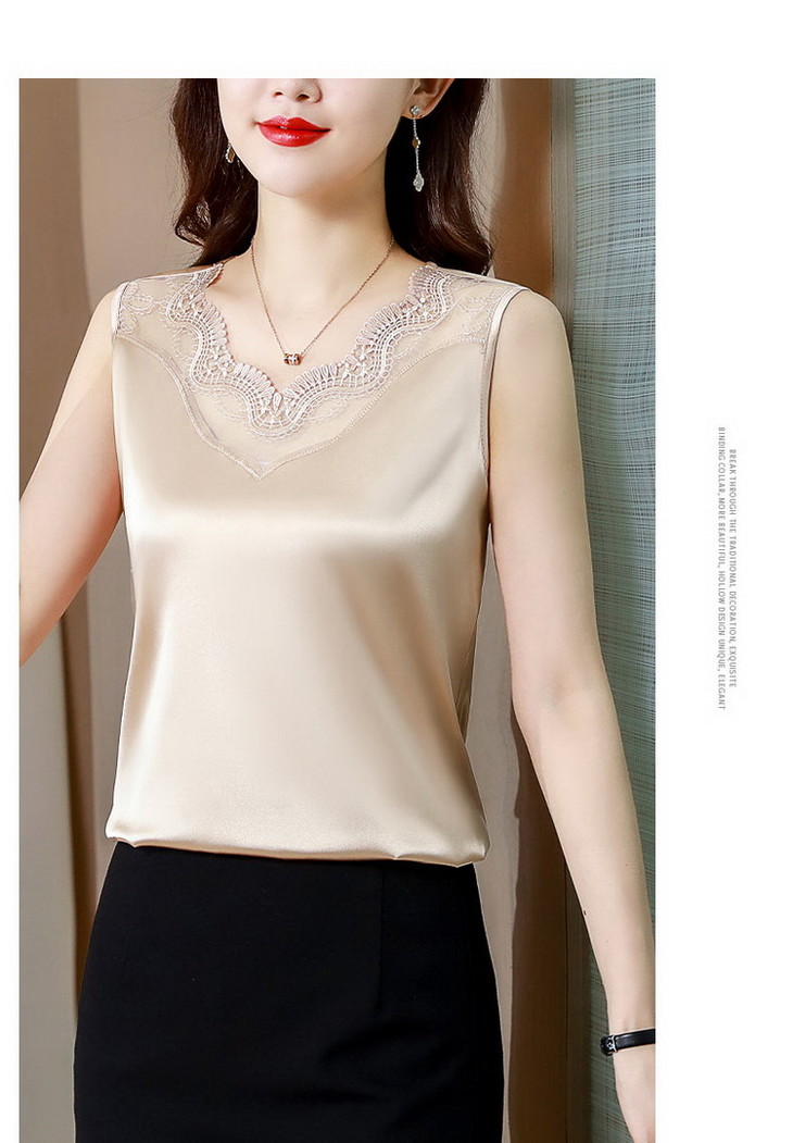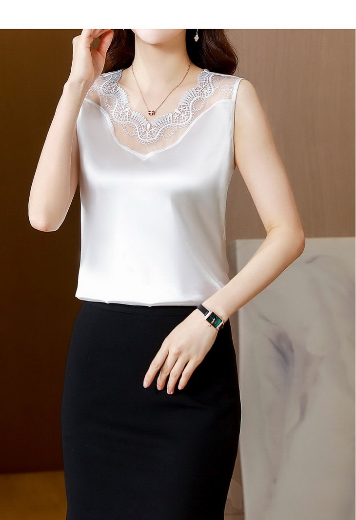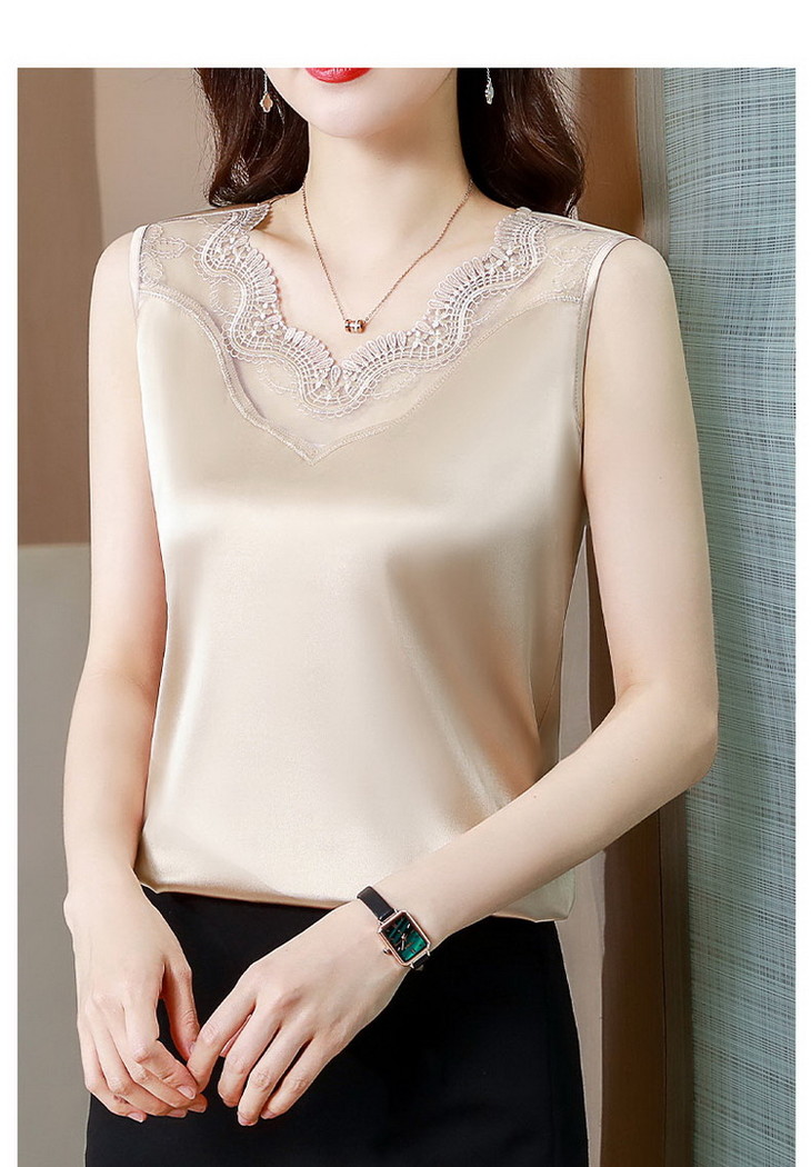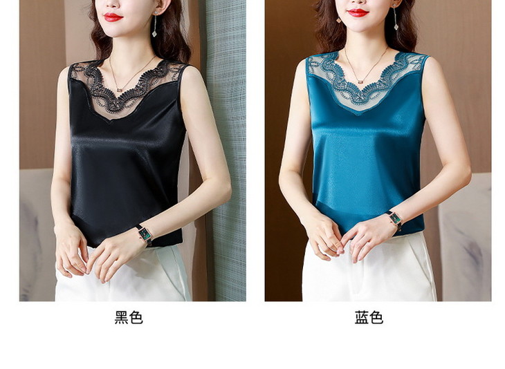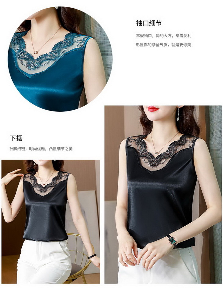 KQL 402H3177 蕾丝吊带背心女外穿2022春夏宽松百搭打底西装内搭无袖丝绸面上衣