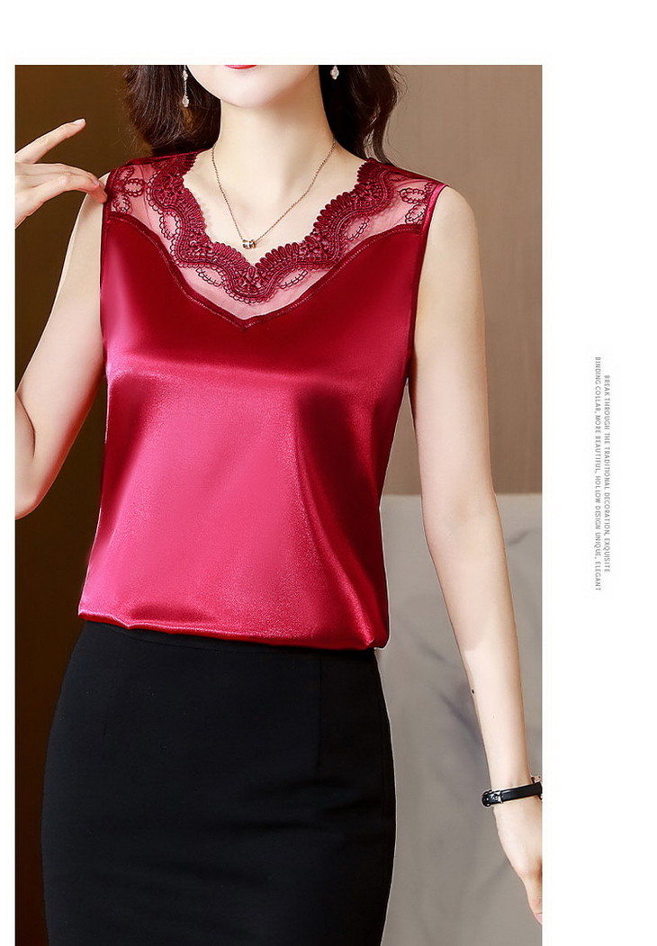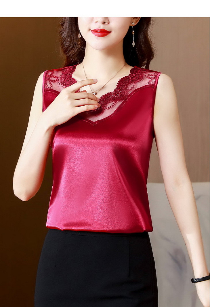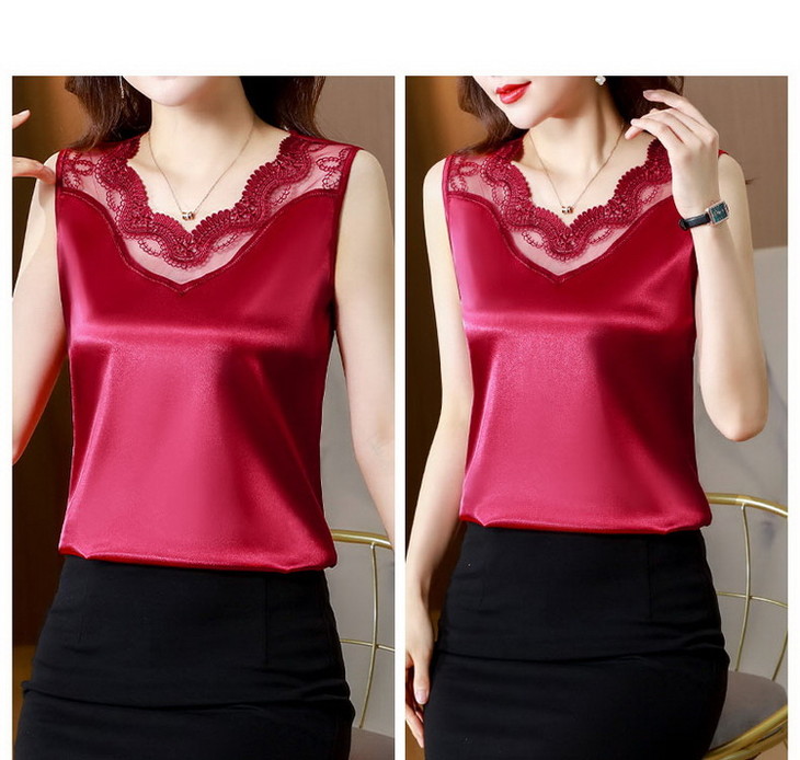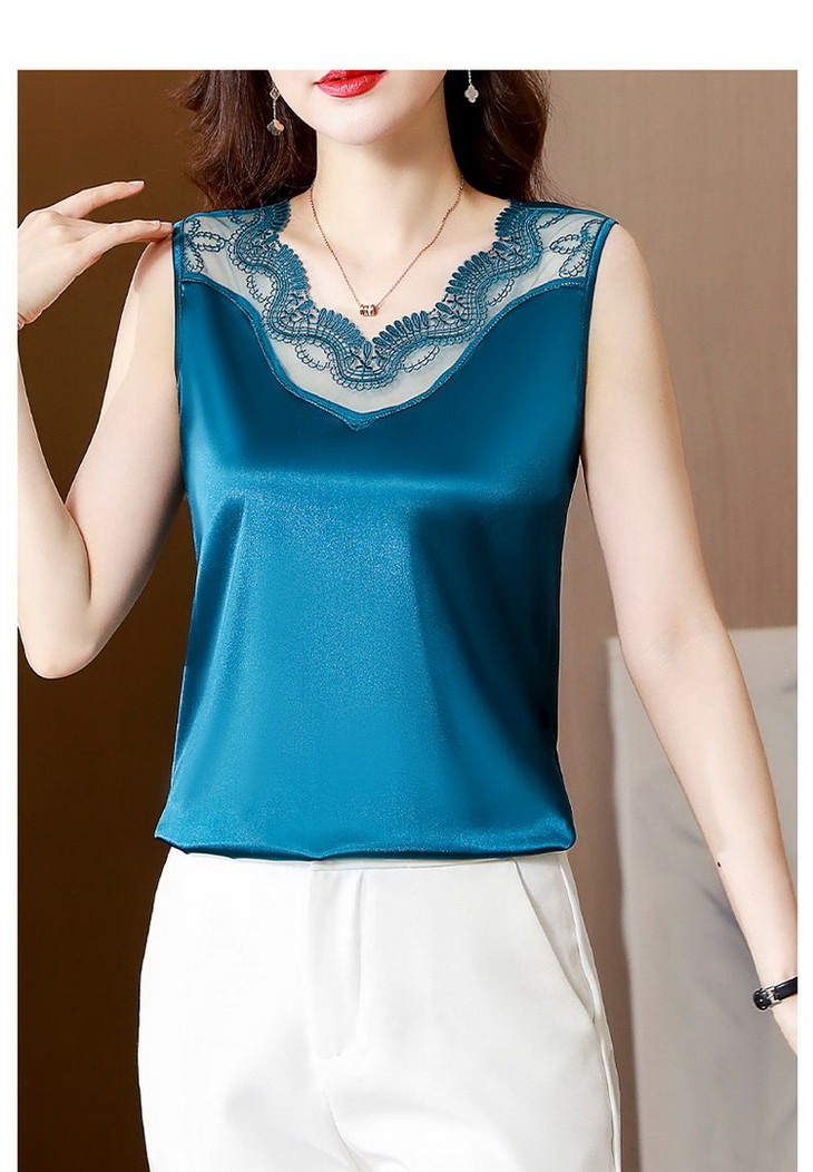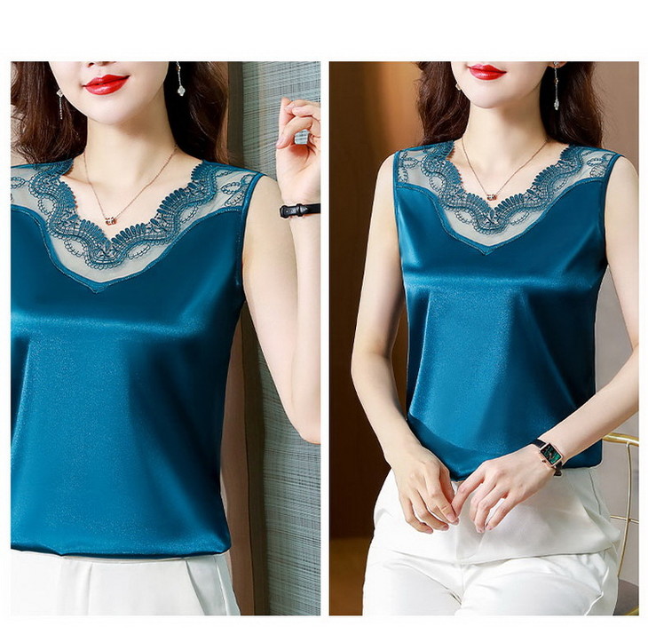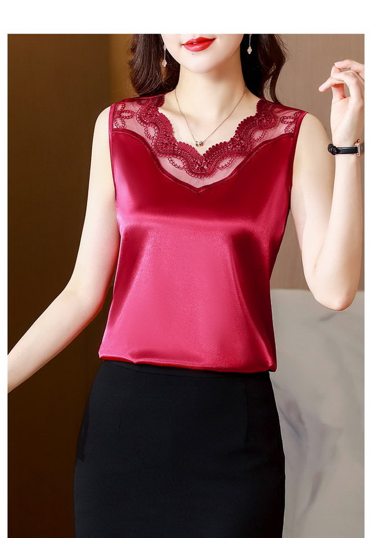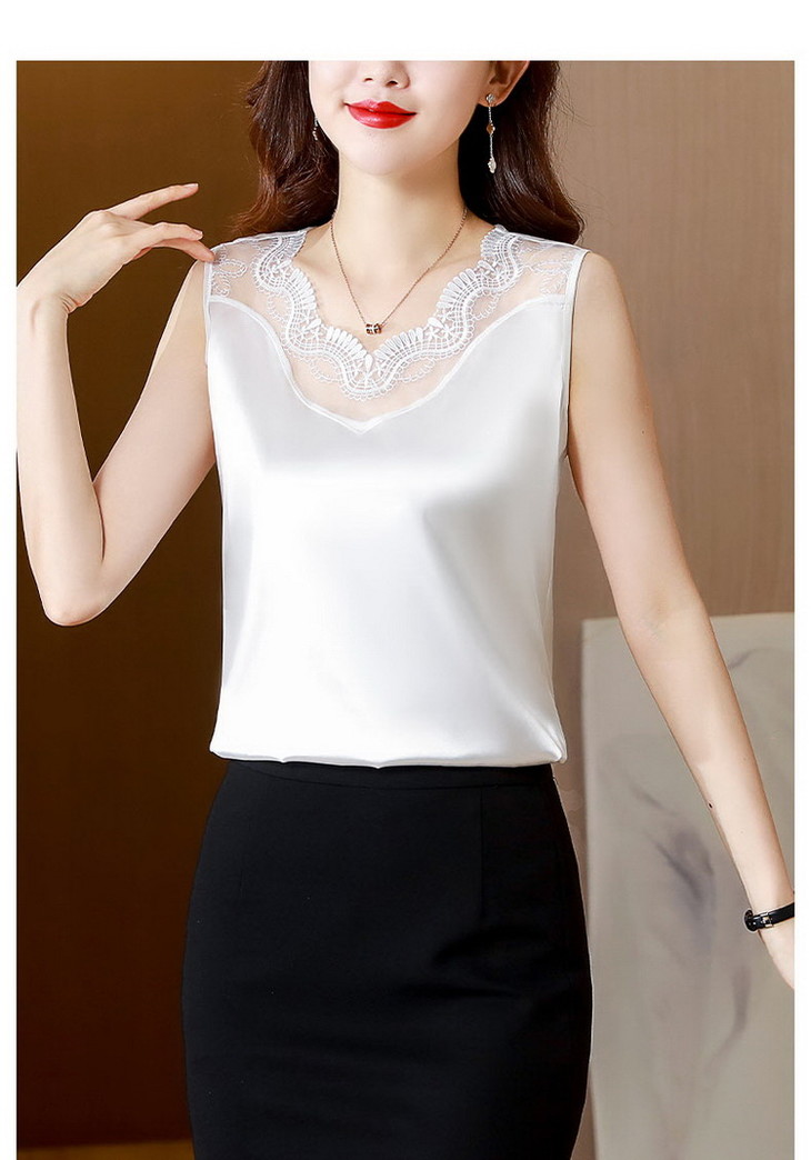 KQL 402H3177 蕾丝吊带背心女外穿2022春夏宽松百搭打底西装内搭无袖丝绸面上衣
