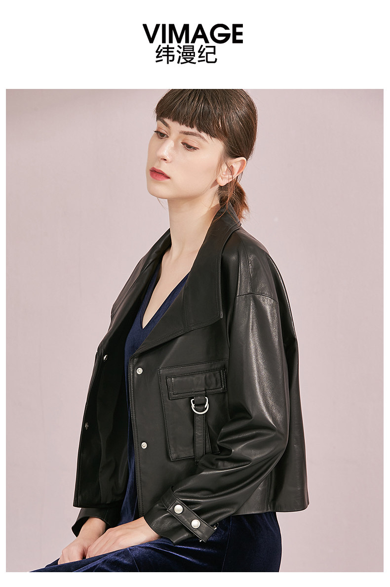 VIMAGE纬漫纪品牌女装冬季新款时尚绵羊皮舒适保暖皮衣女V1093606