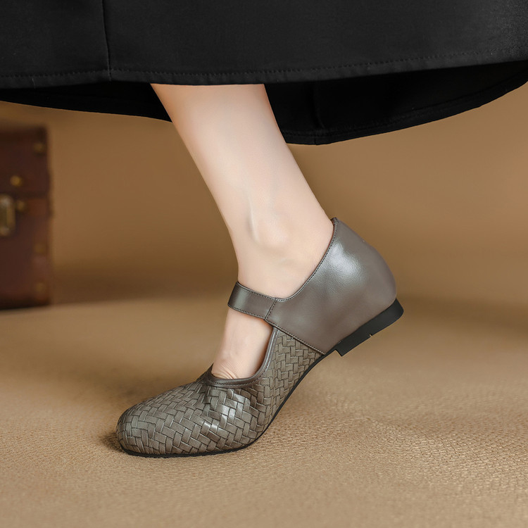 【预售5天】春秋季绝美羊皮灰色圆头单鞋女浅口低跟平底鞋女软底舒适玛丽珍NJMK&K1703 商品图0