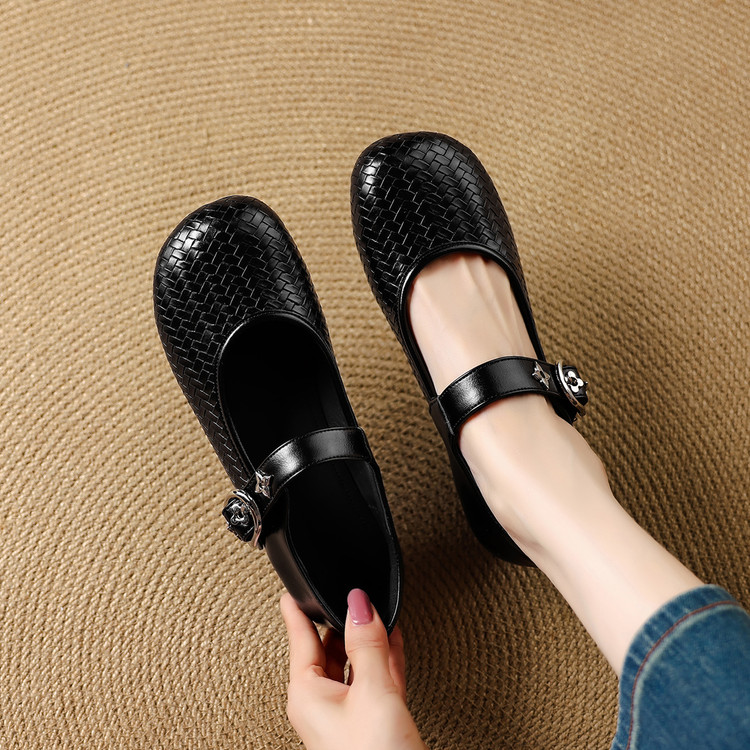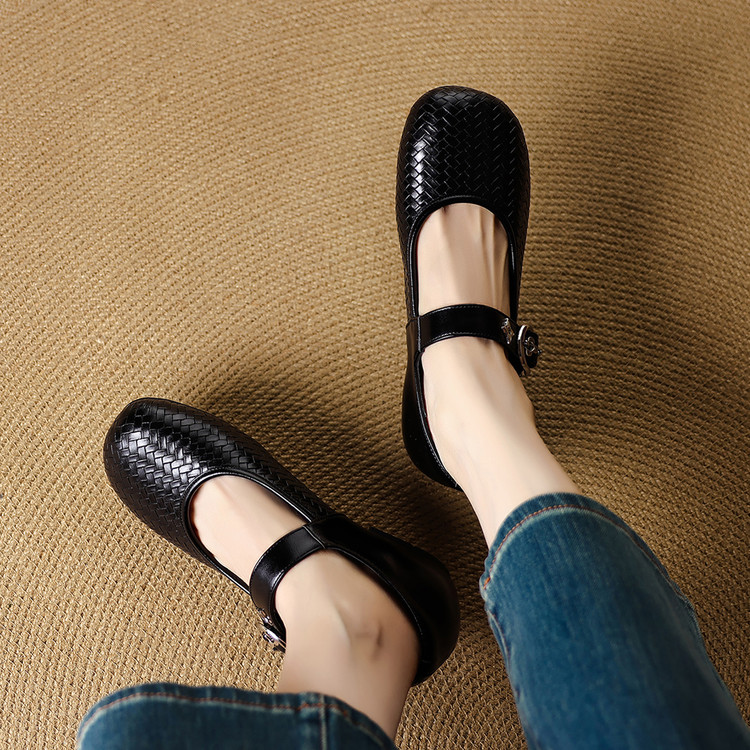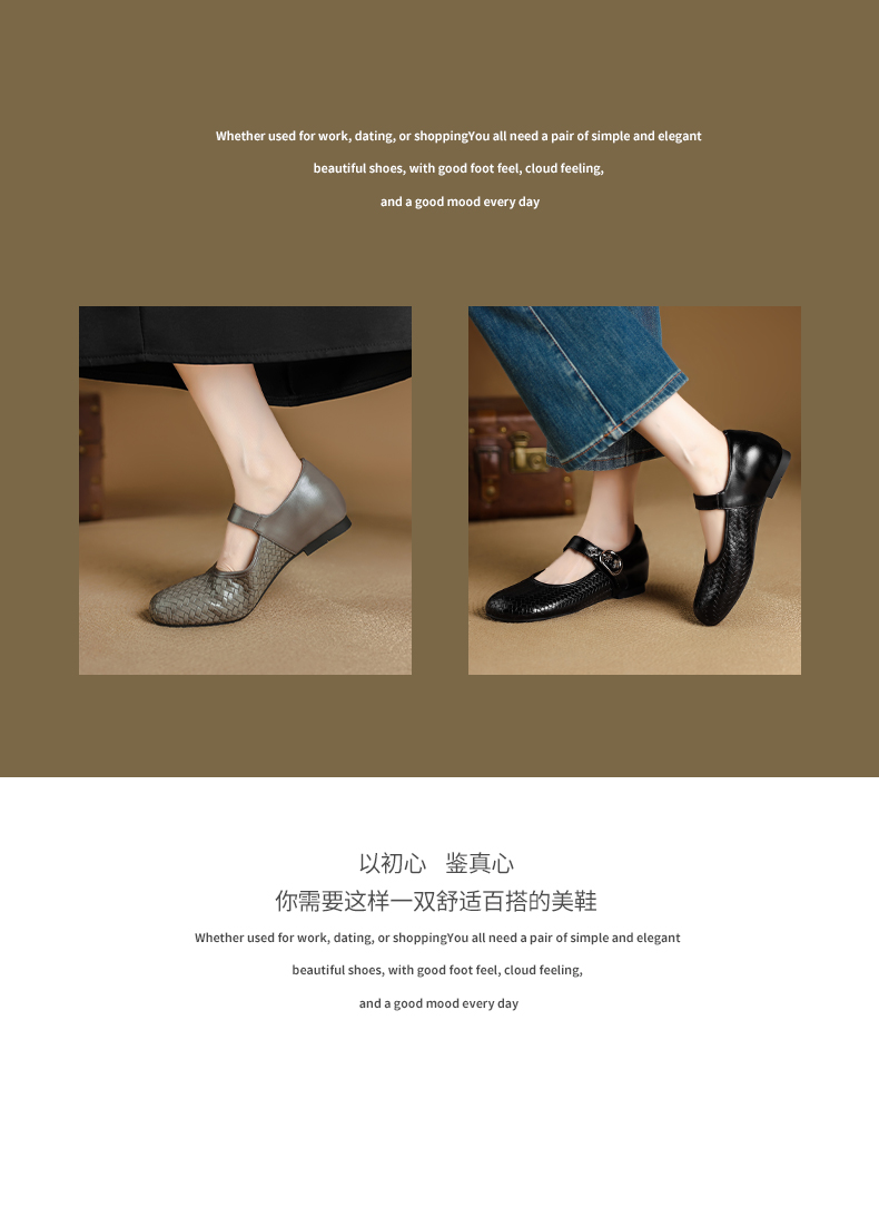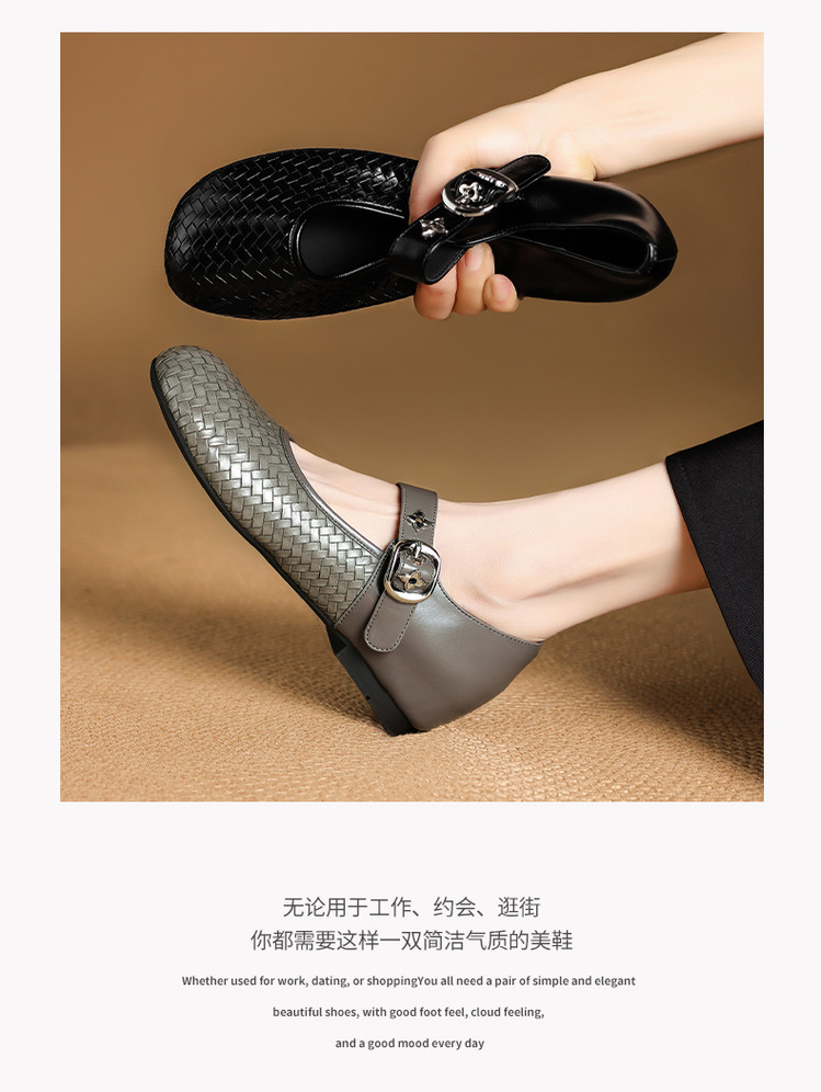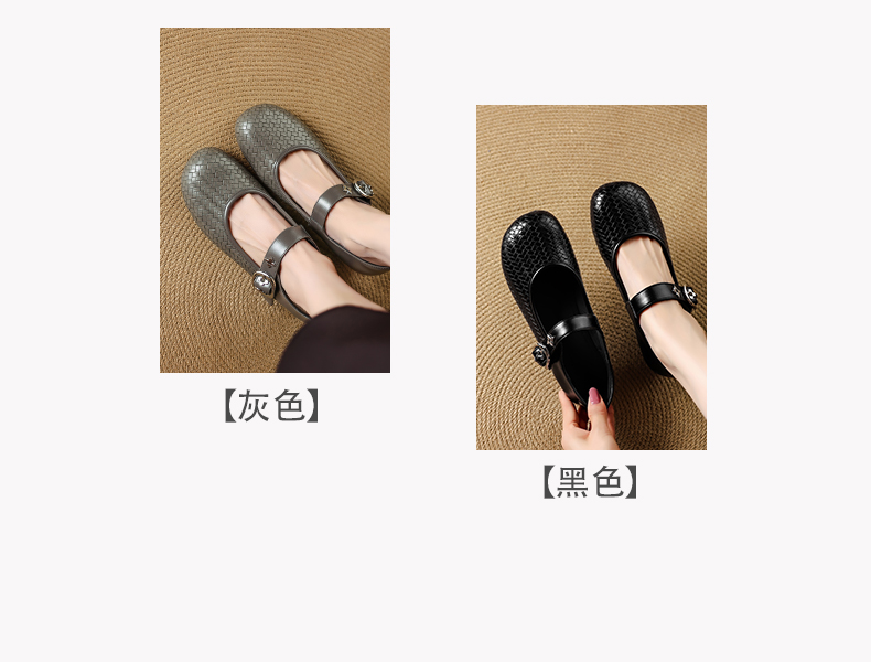 【预售5天】春秋季绝美羊皮灰色圆头单鞋女浅口低跟平底鞋女软底舒适玛丽珍NJMK&K1703 商品图2