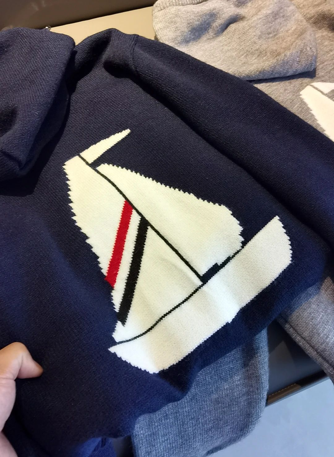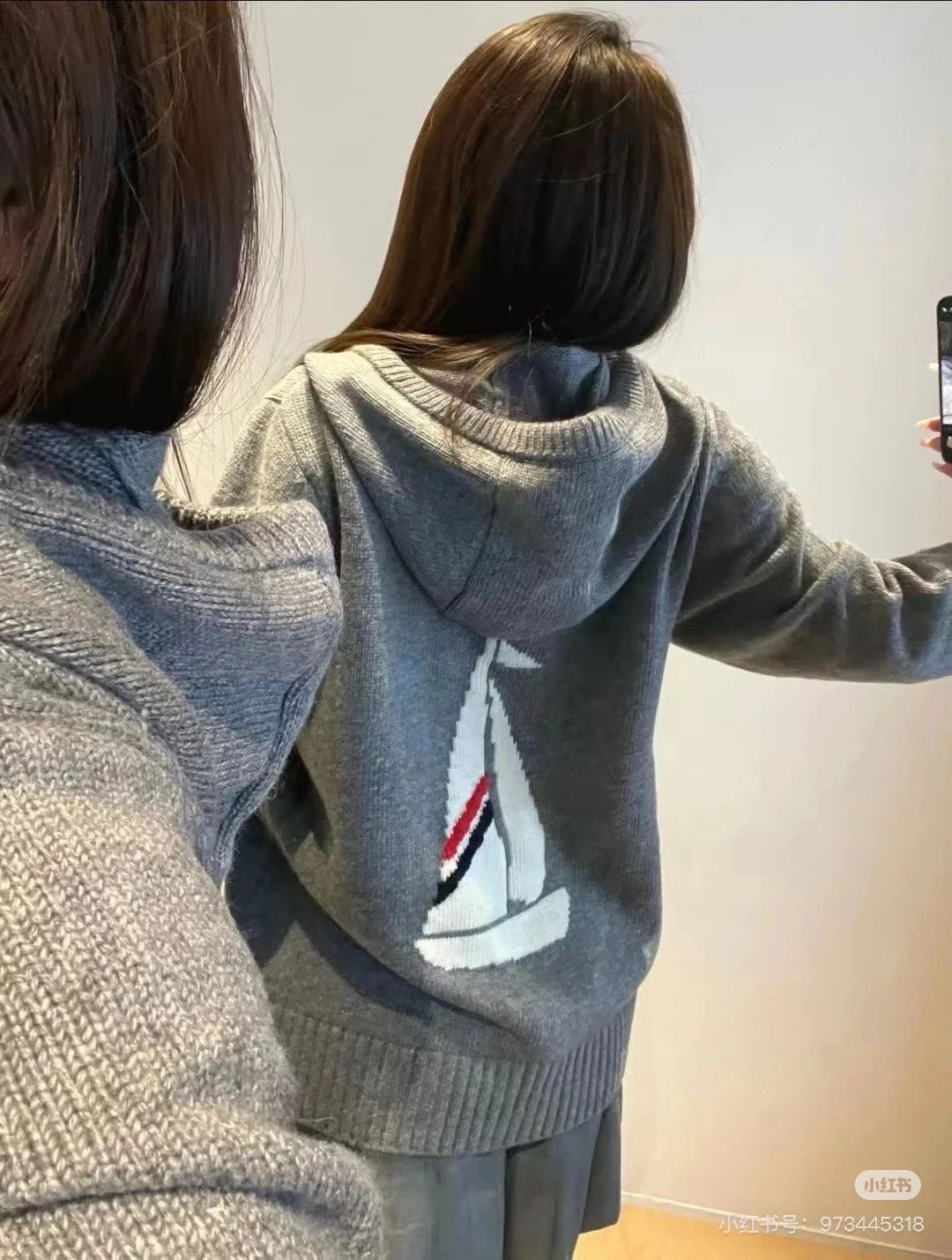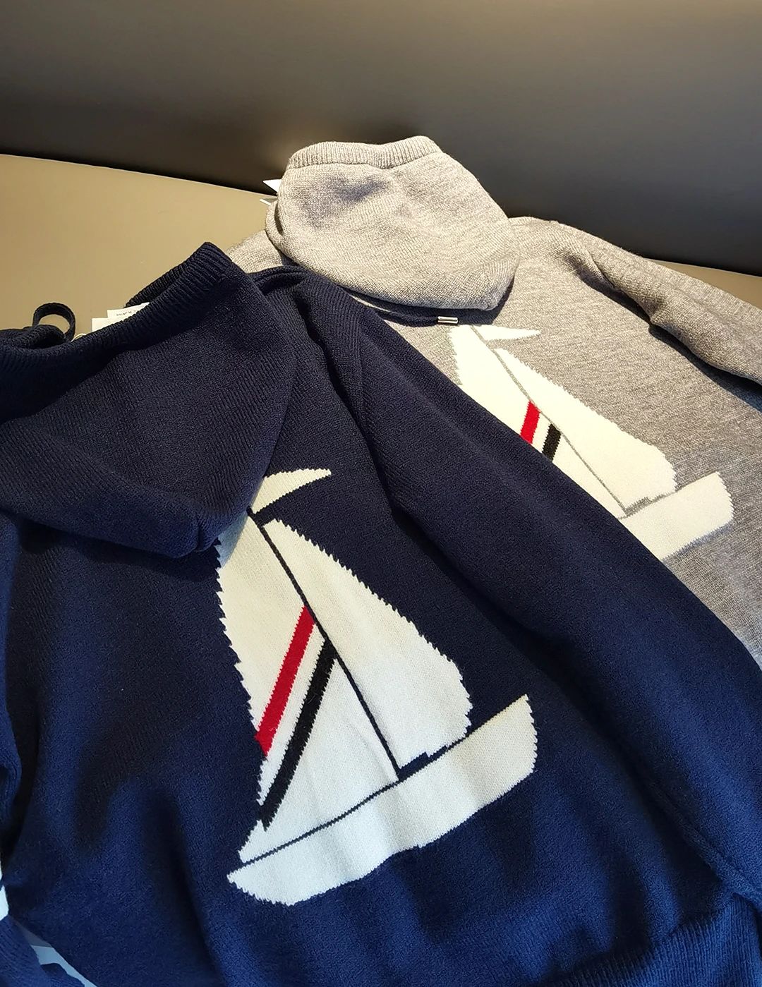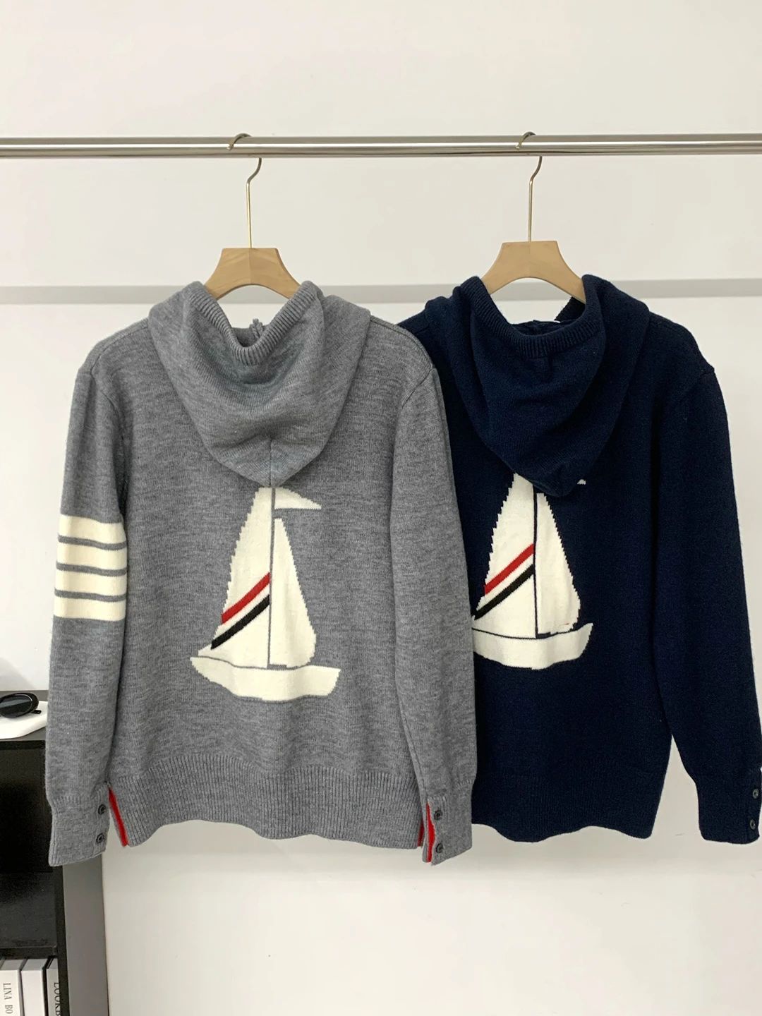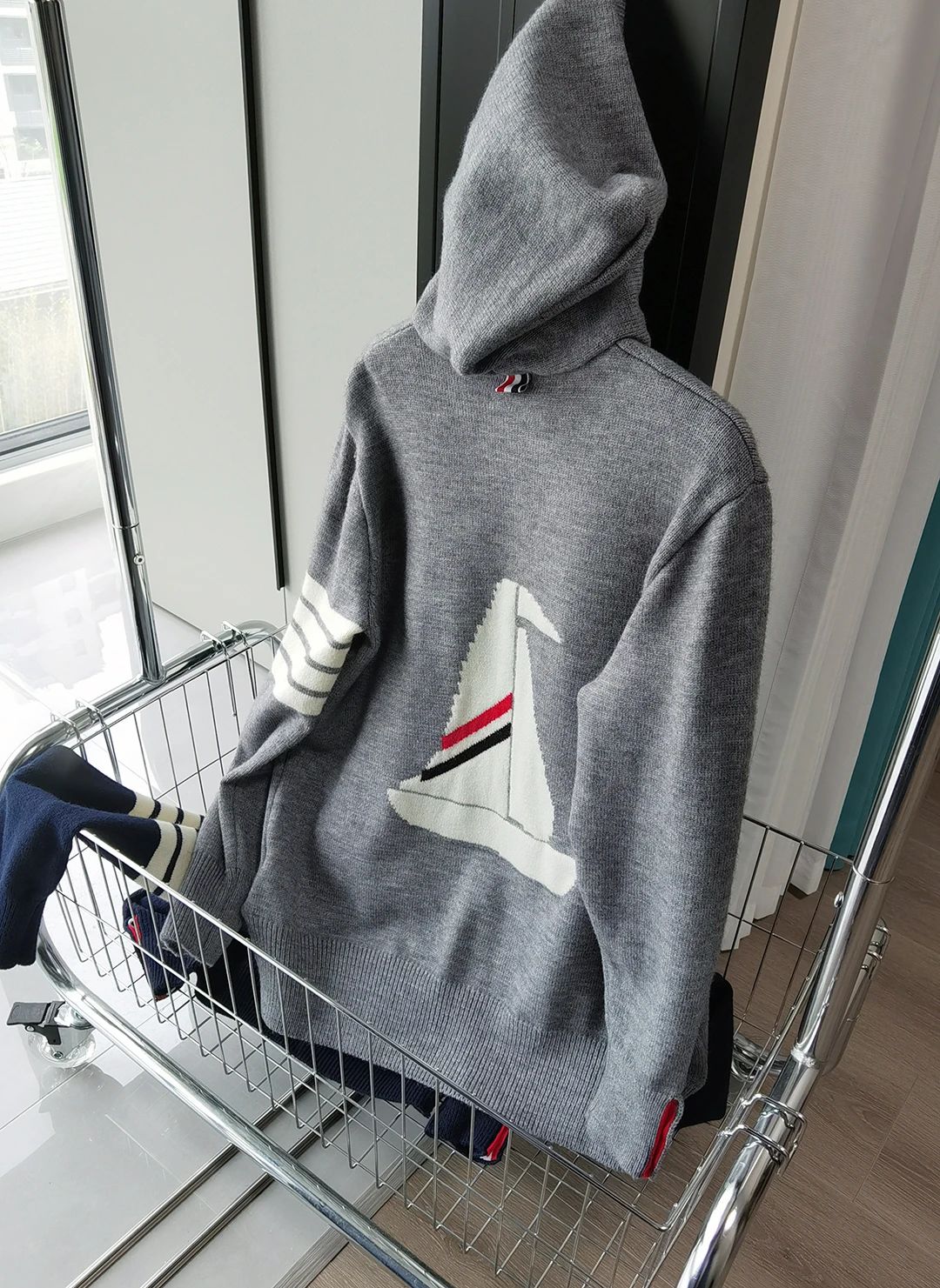 高级感TB汤姆*布情侣款帆船提花粗线精纺羊毛针织连帽衫