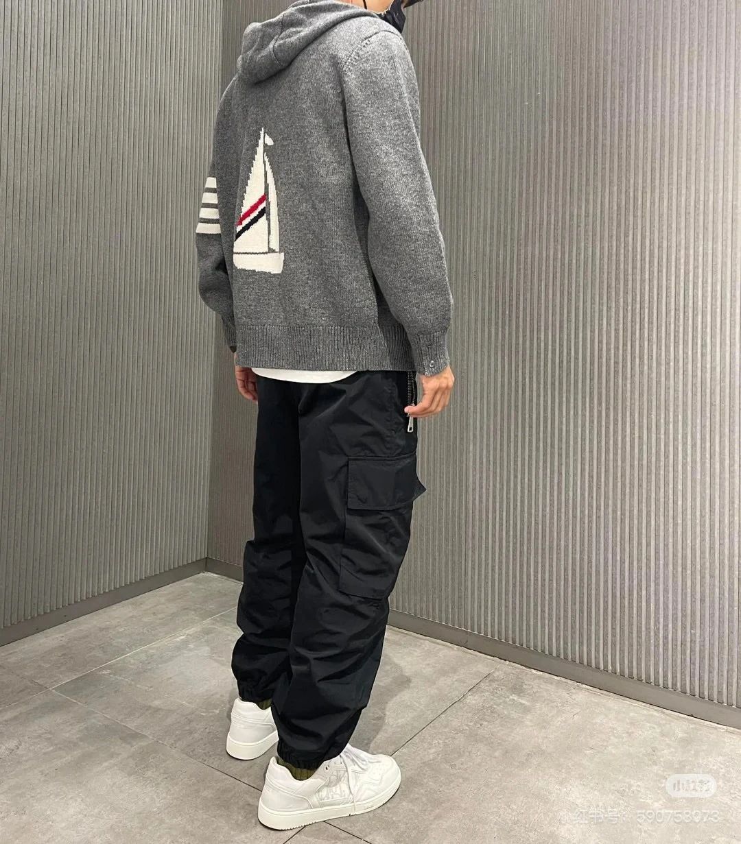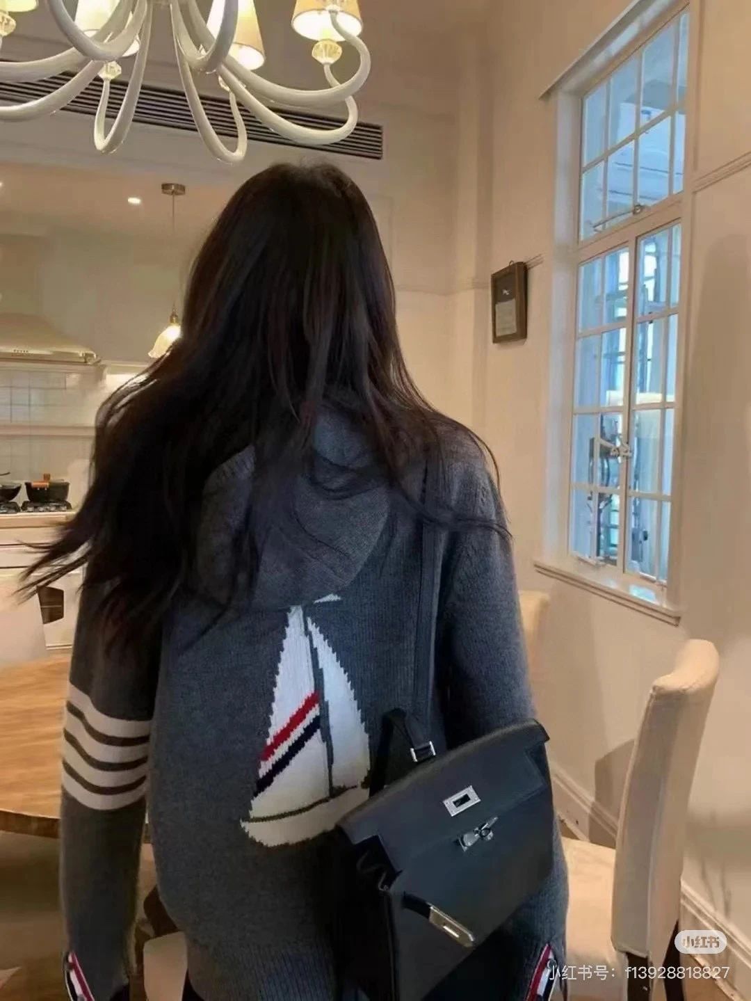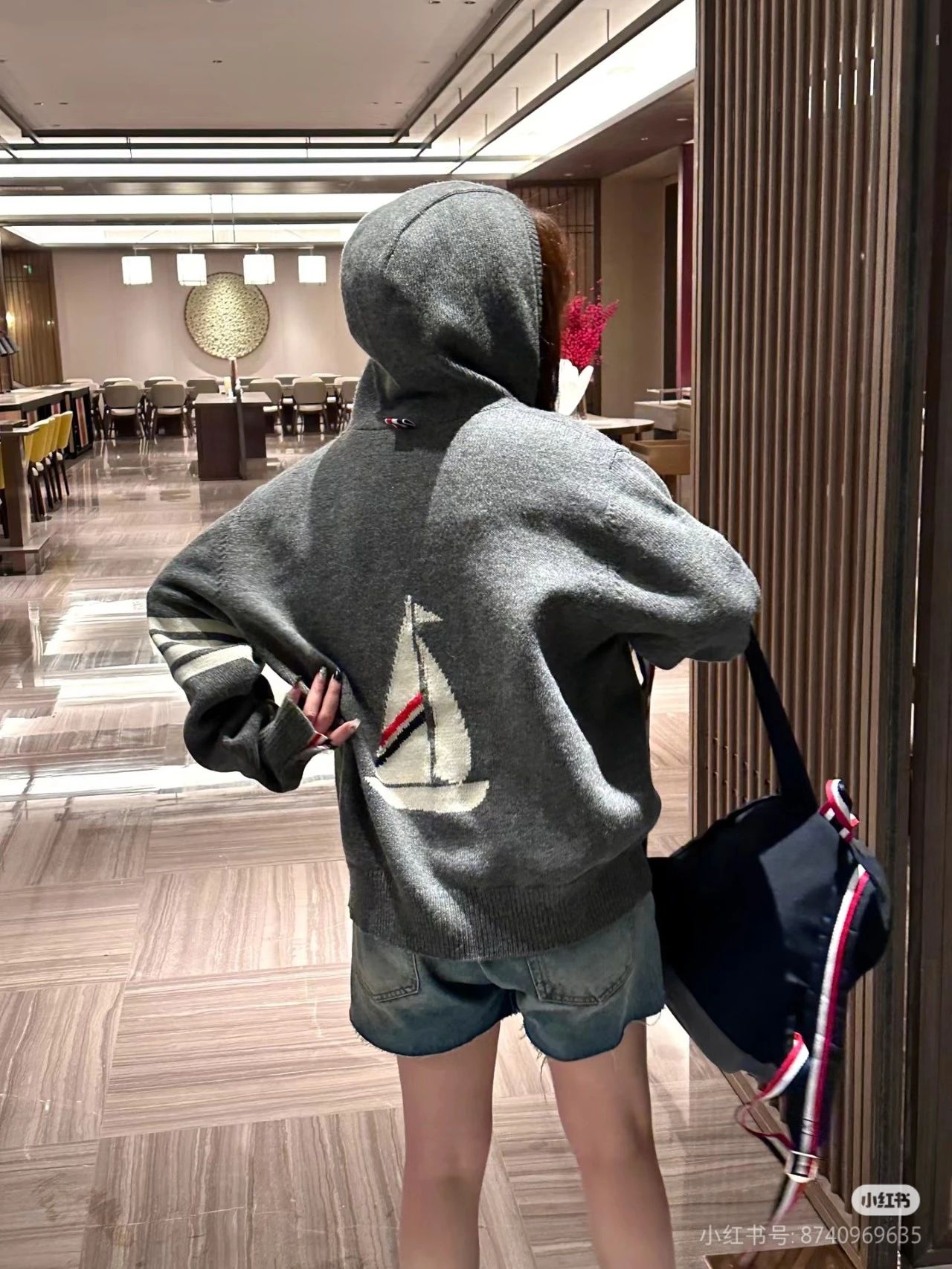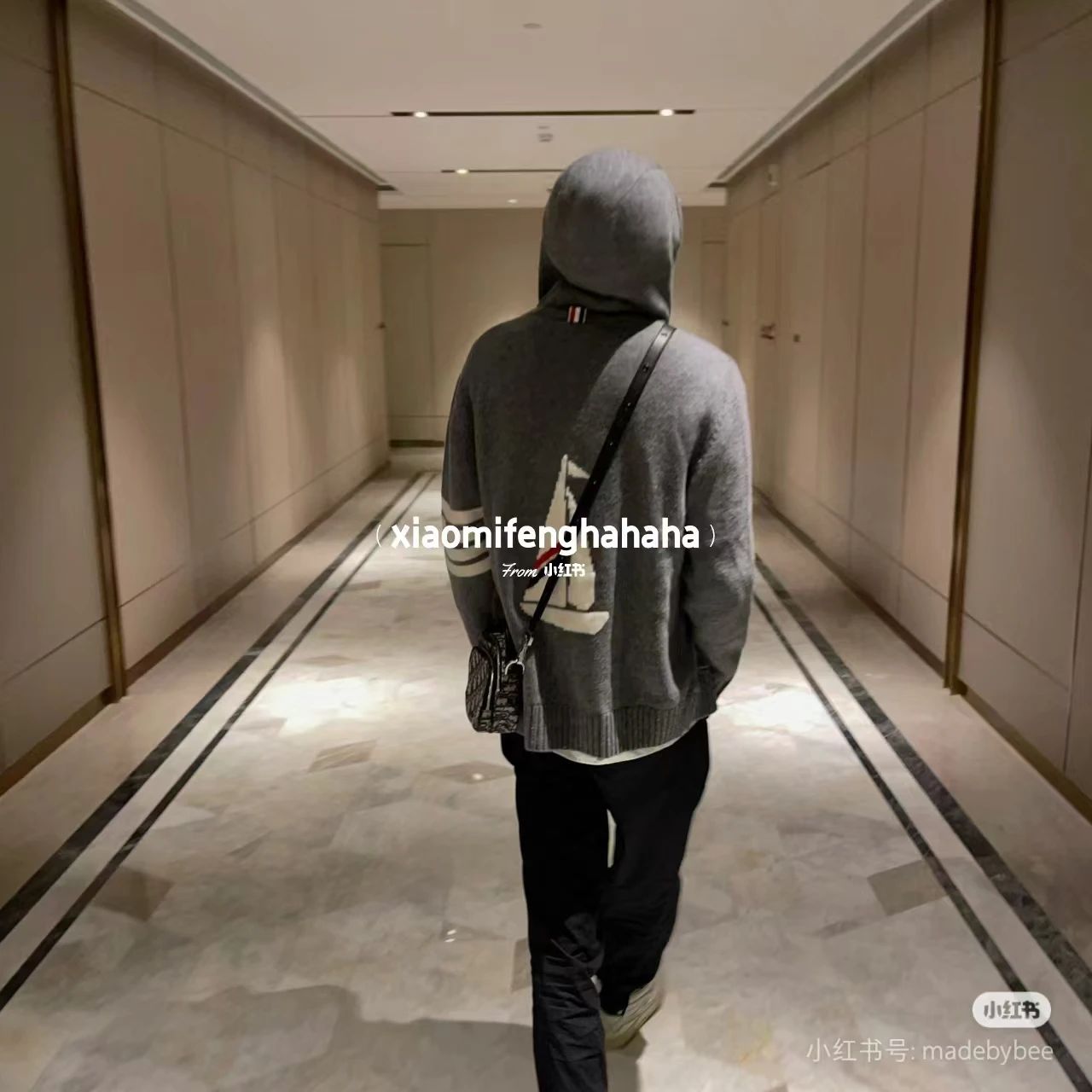 高级感TB汤姆*布情侣款帆船提花粗线精纺羊毛针织连帽衫