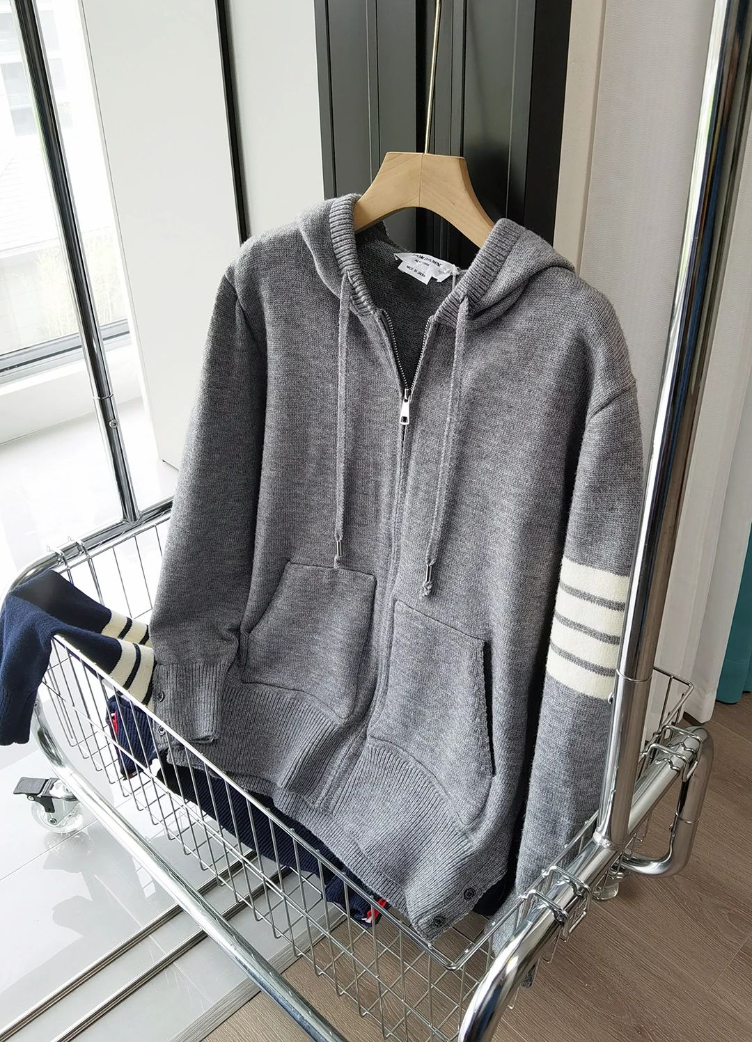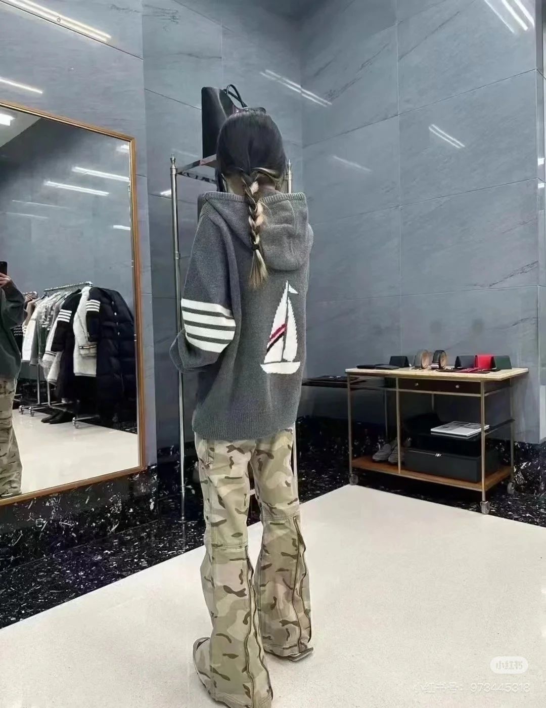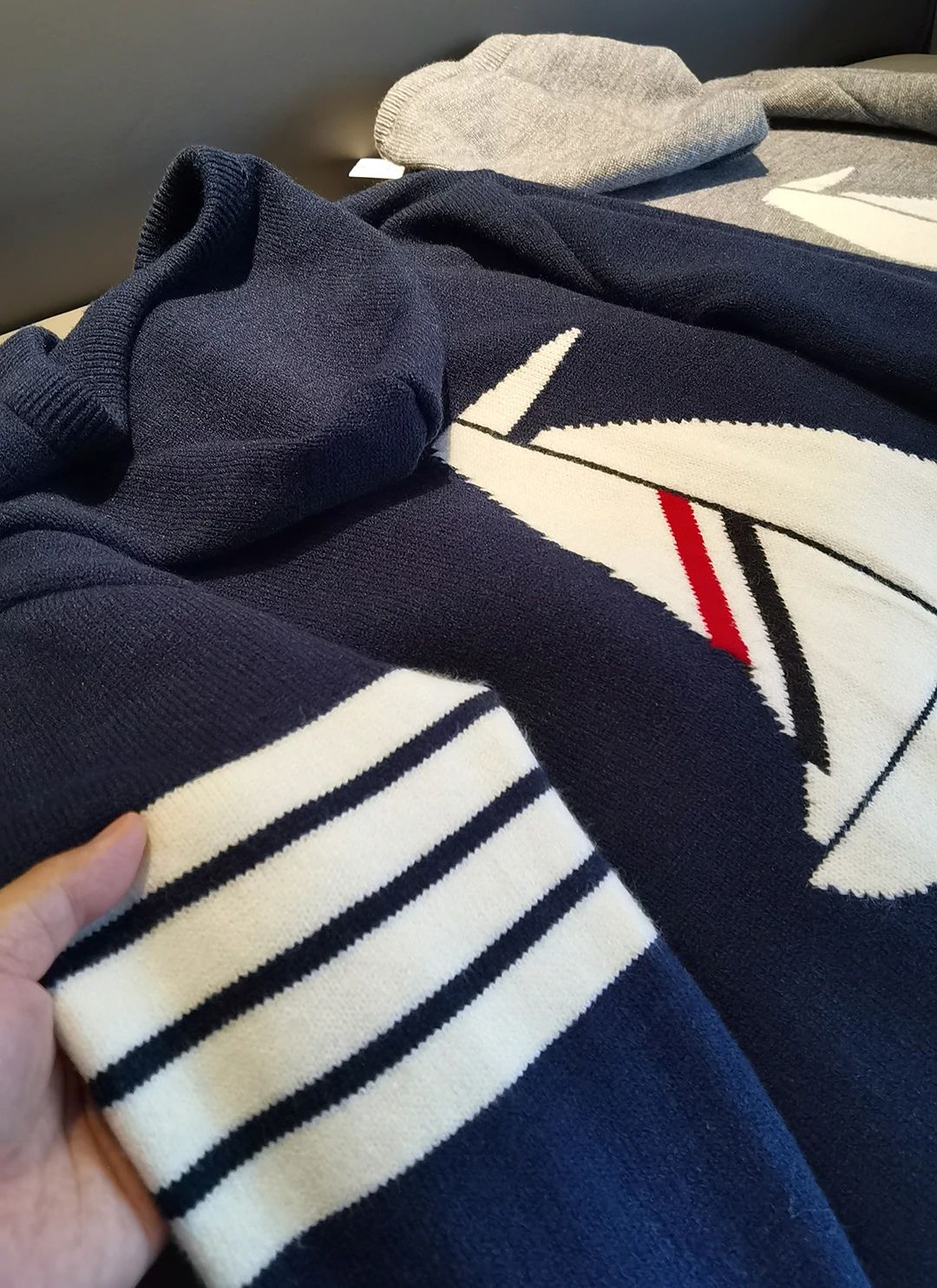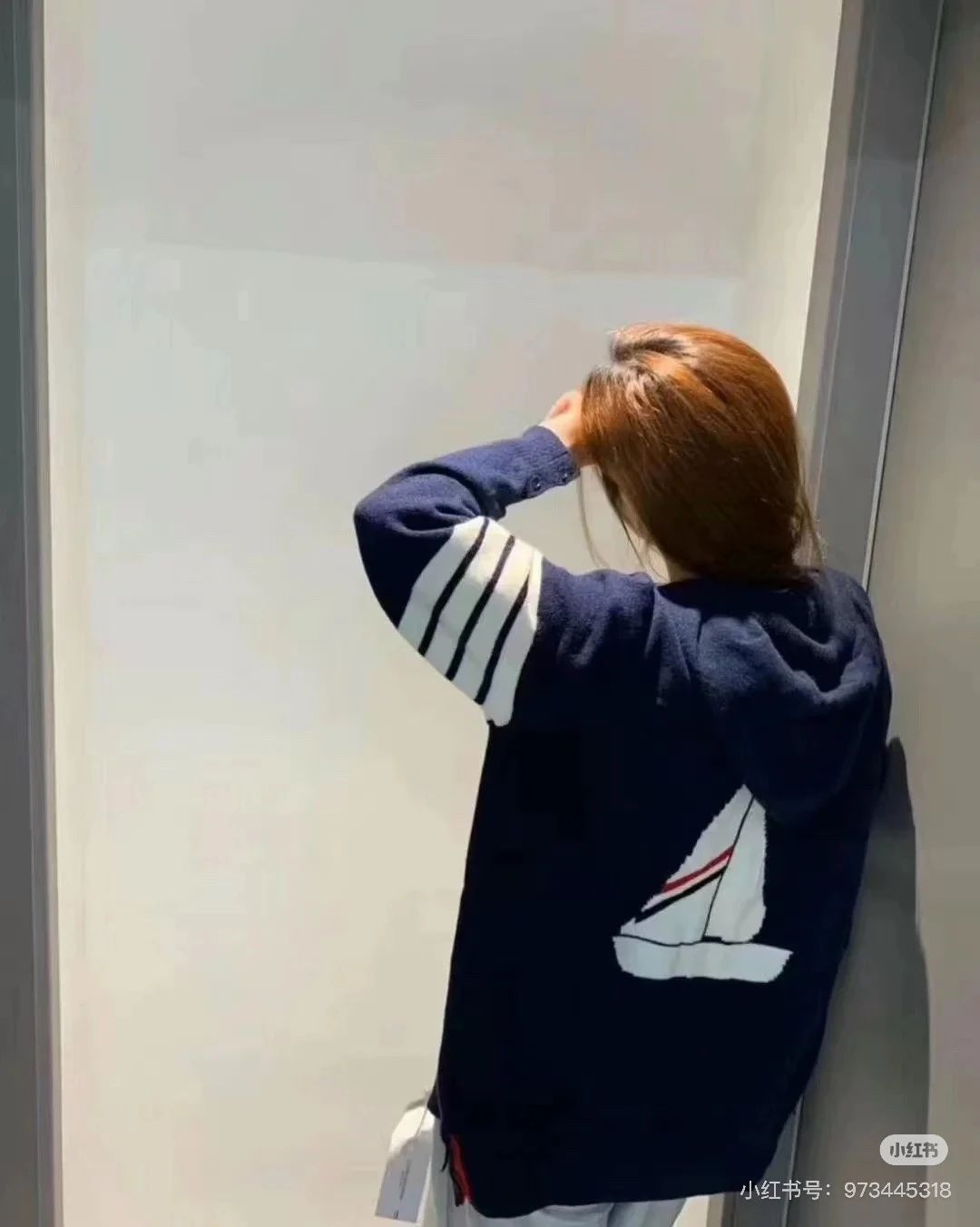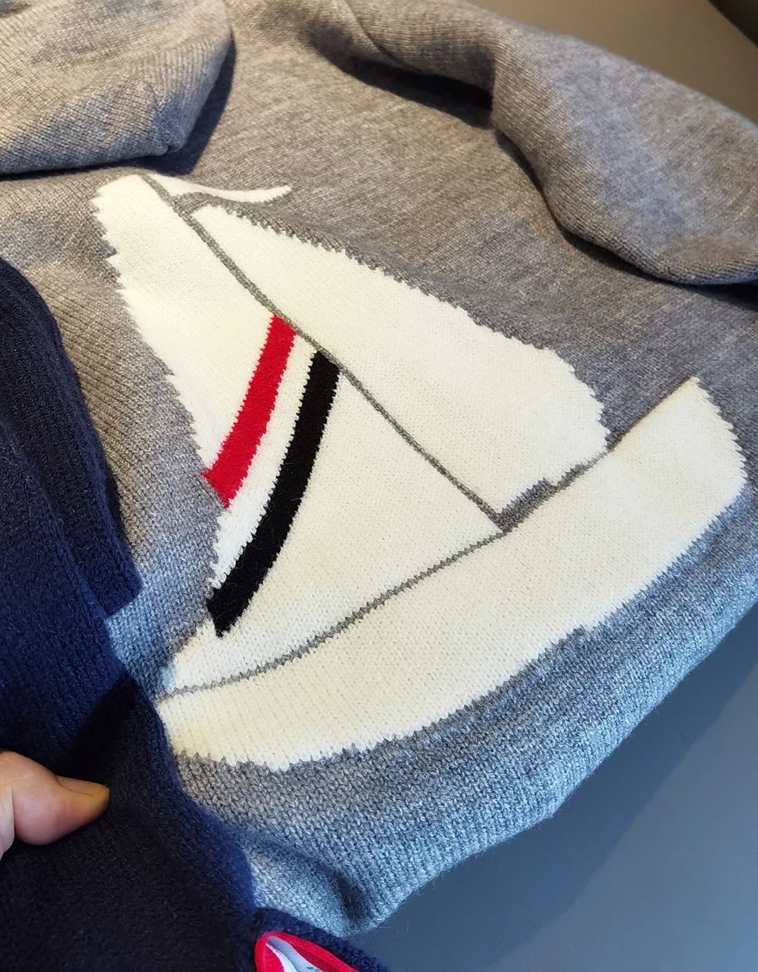 高级感TB汤姆*布情侣款帆船提花粗线精纺羊毛针织连帽衫