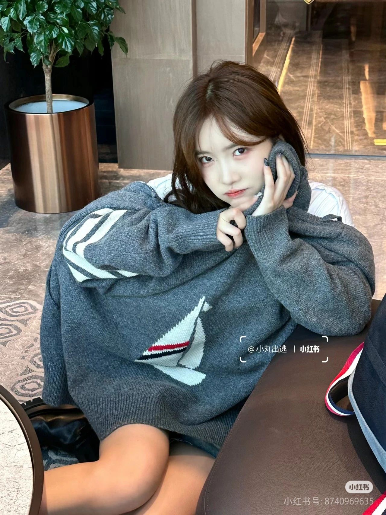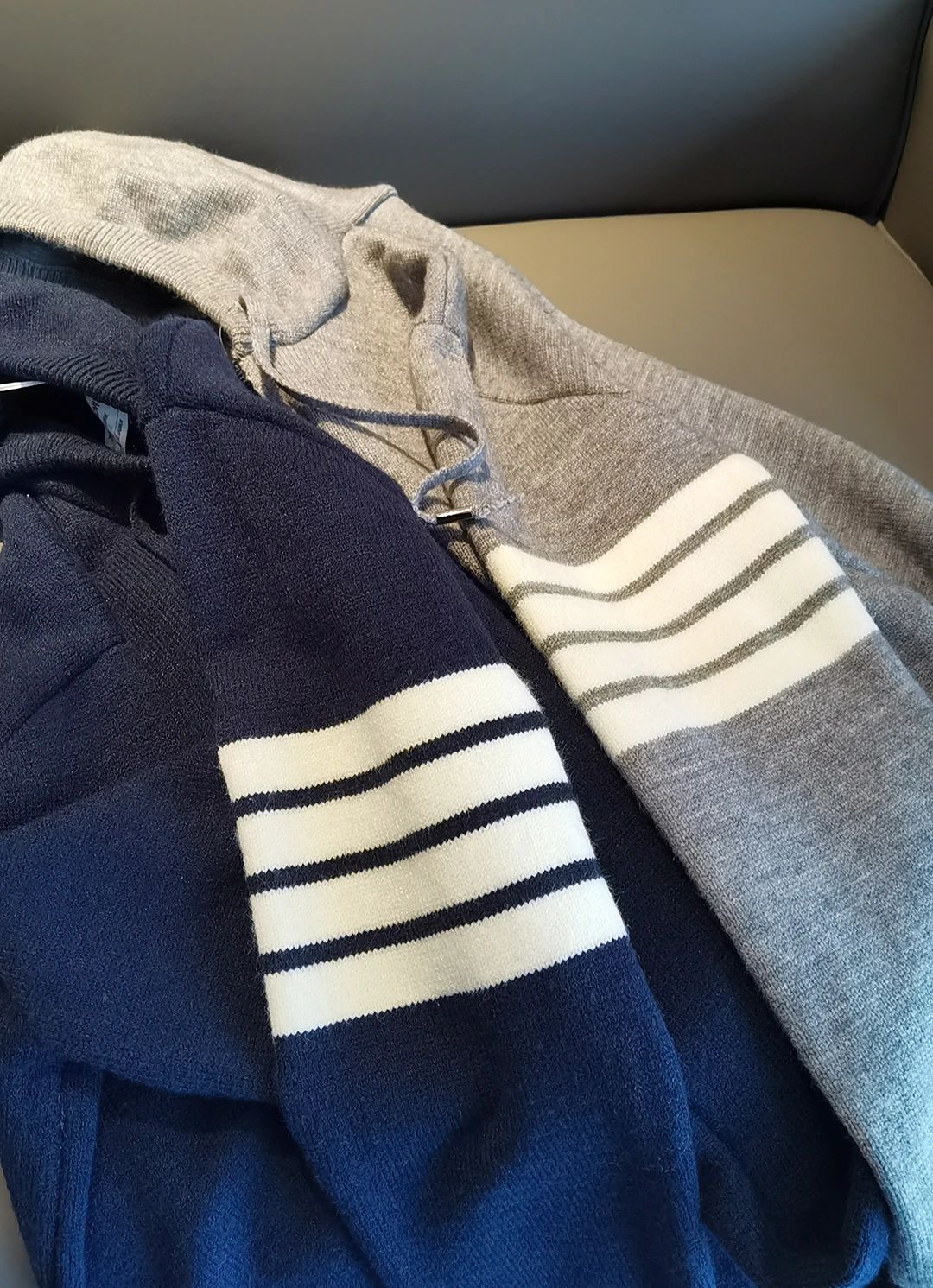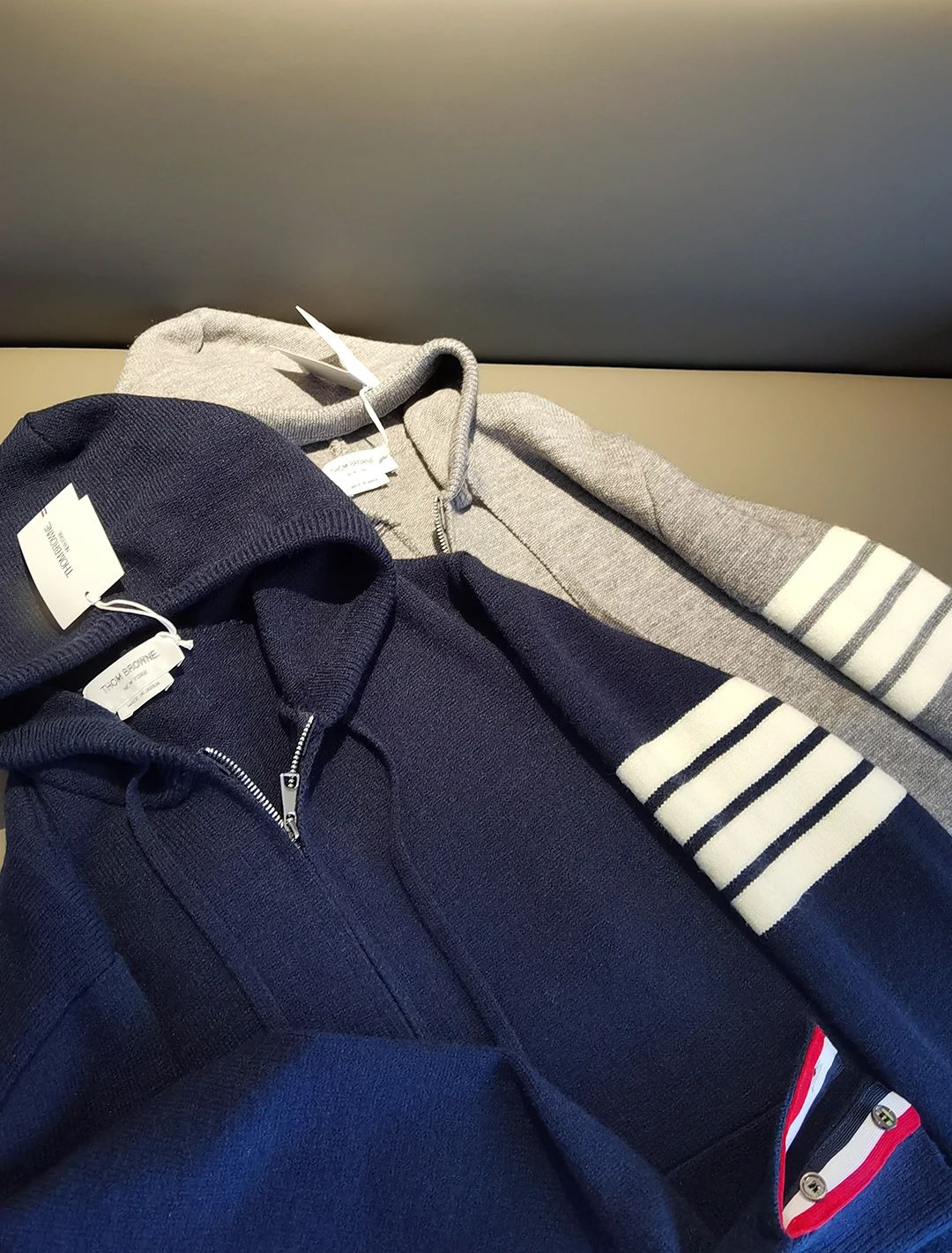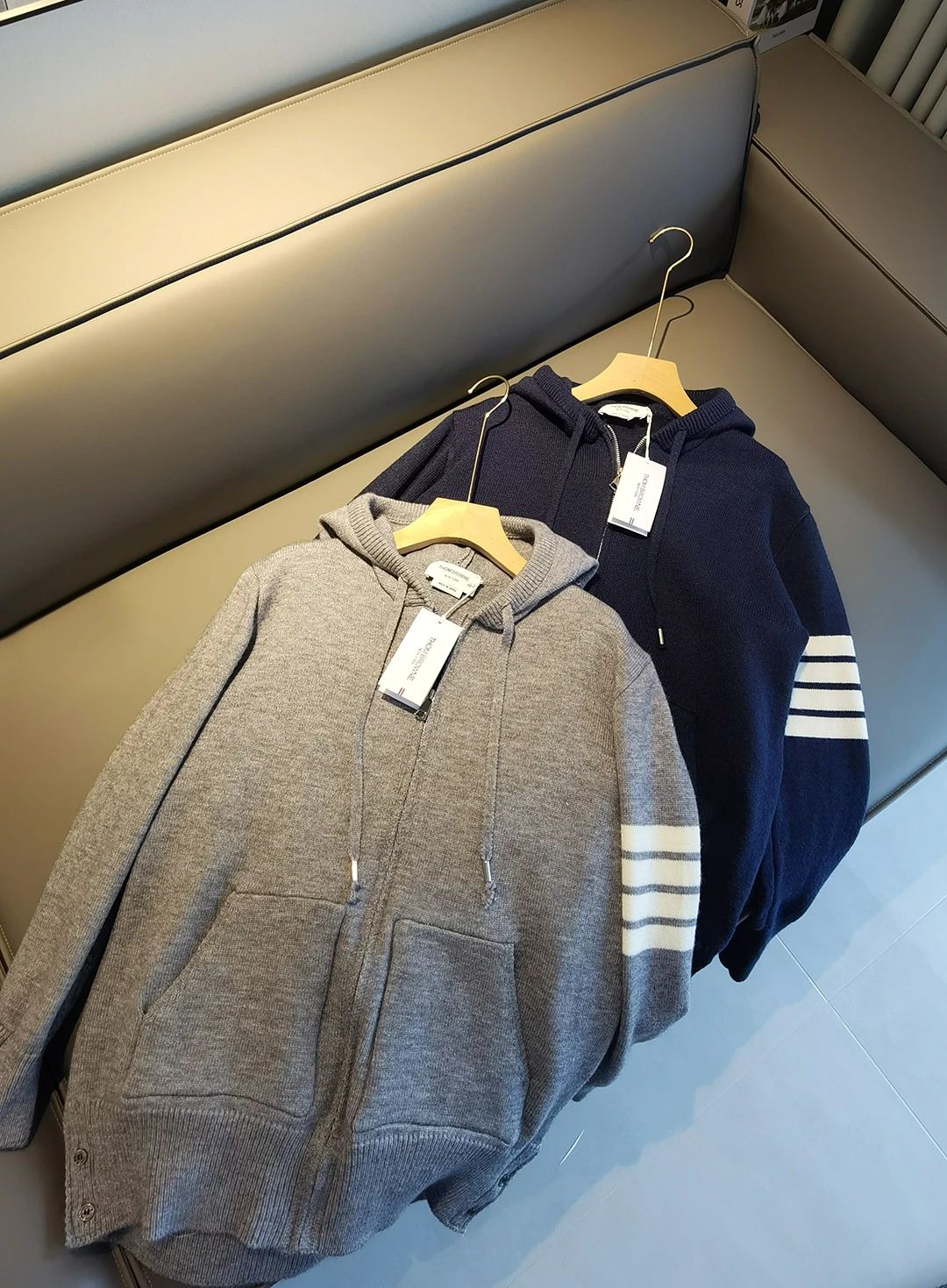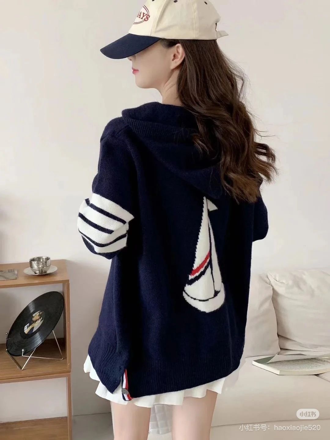 高级感TB汤姆*布情侣款帆船提花粗线精纺羊毛针织连帽衫