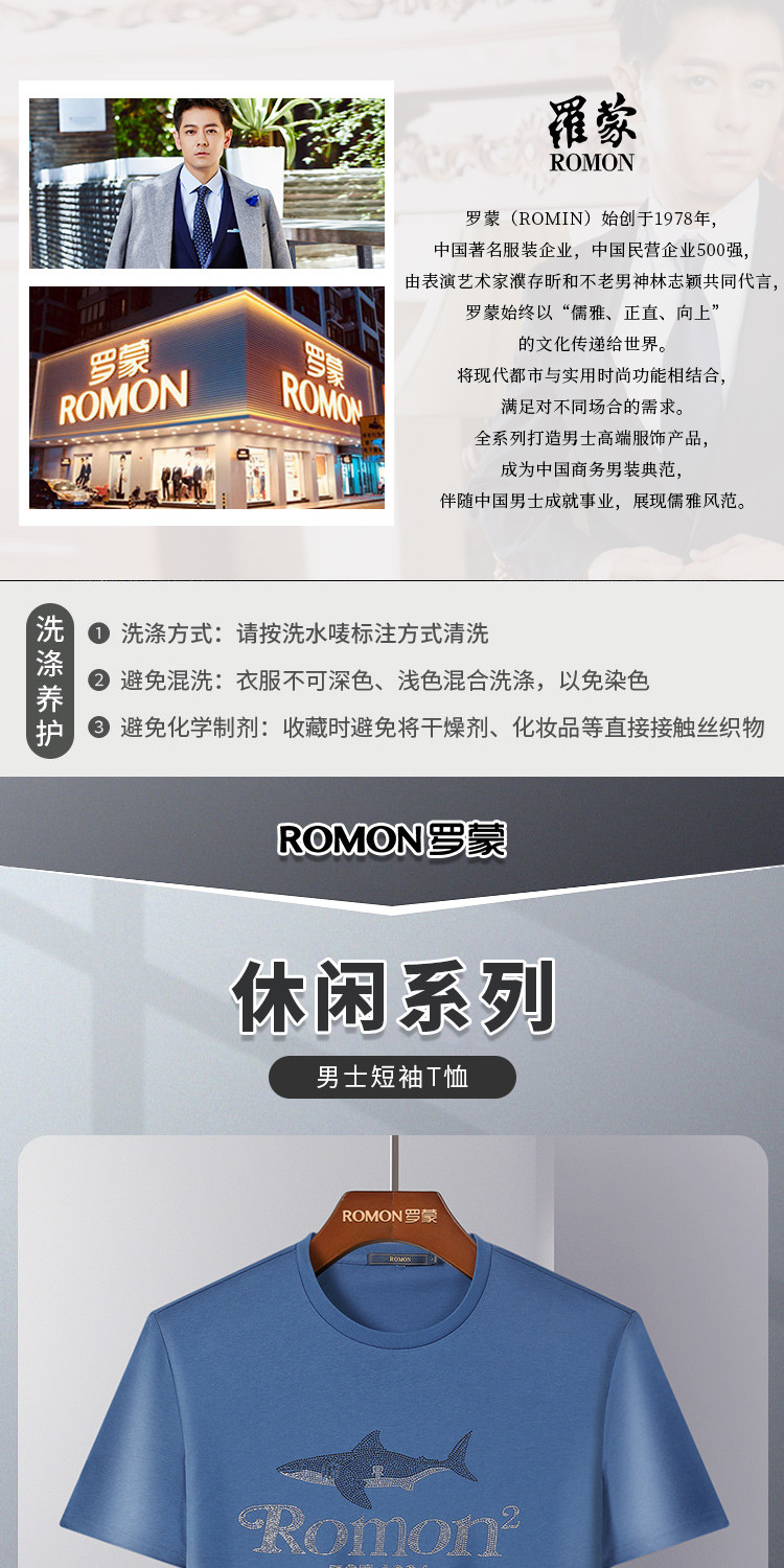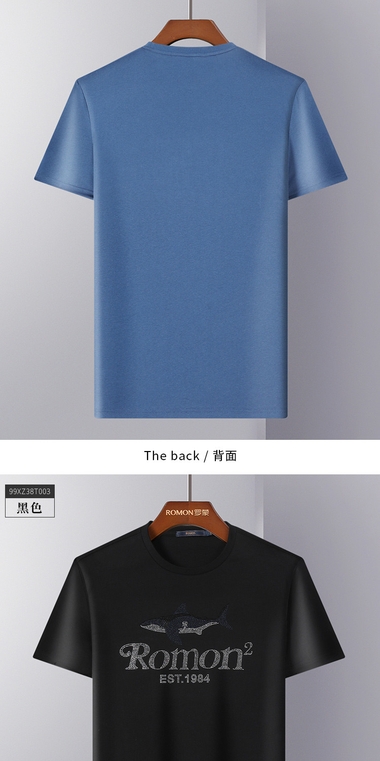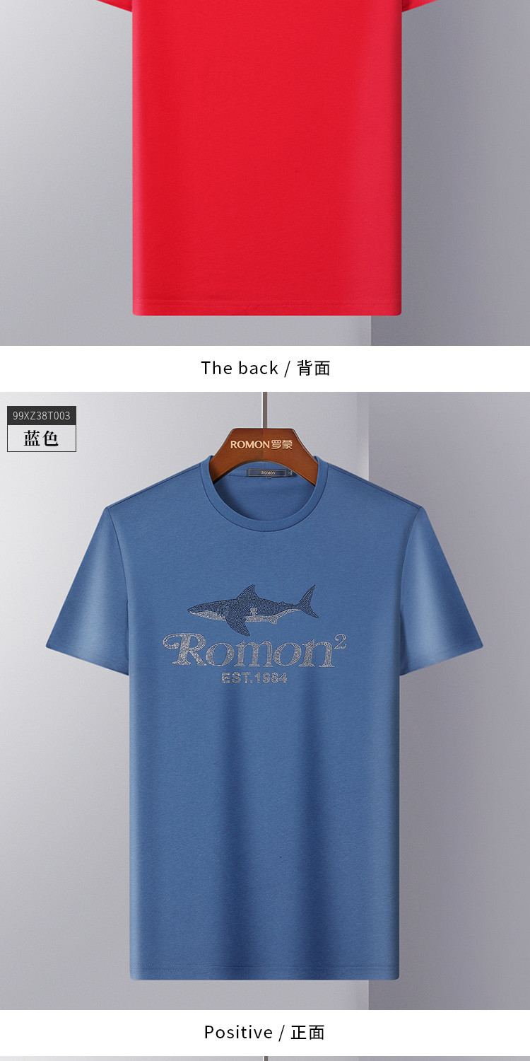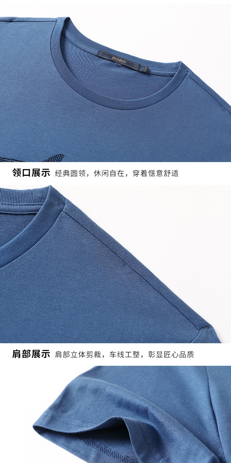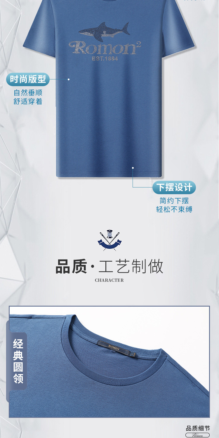 【纯棉透气】罗蒙男士t恤夏季新款时尚印花简约通勤休闲百搭短袖t恤