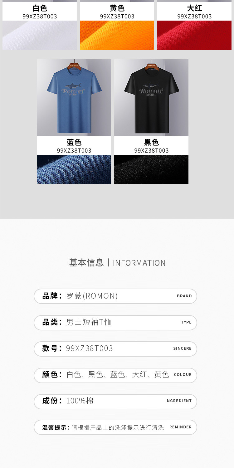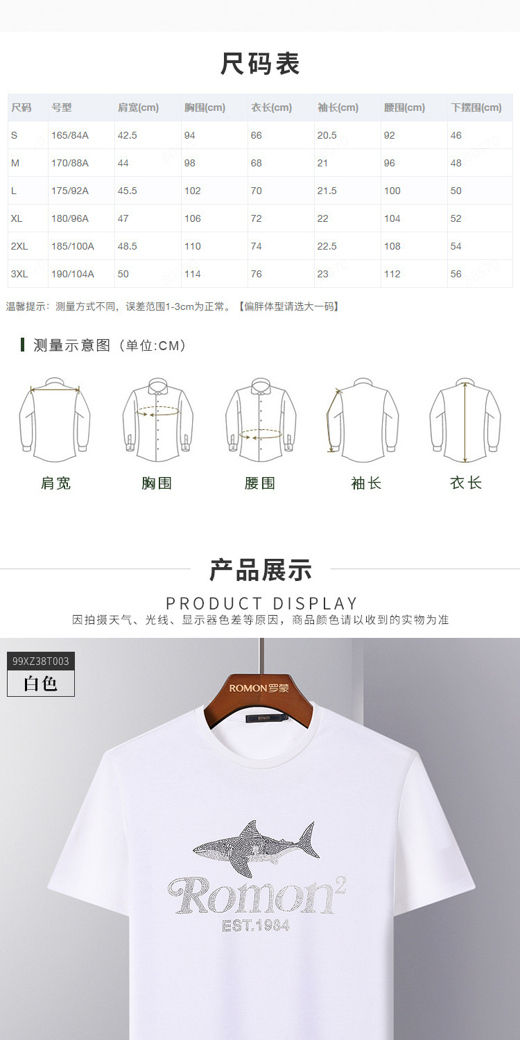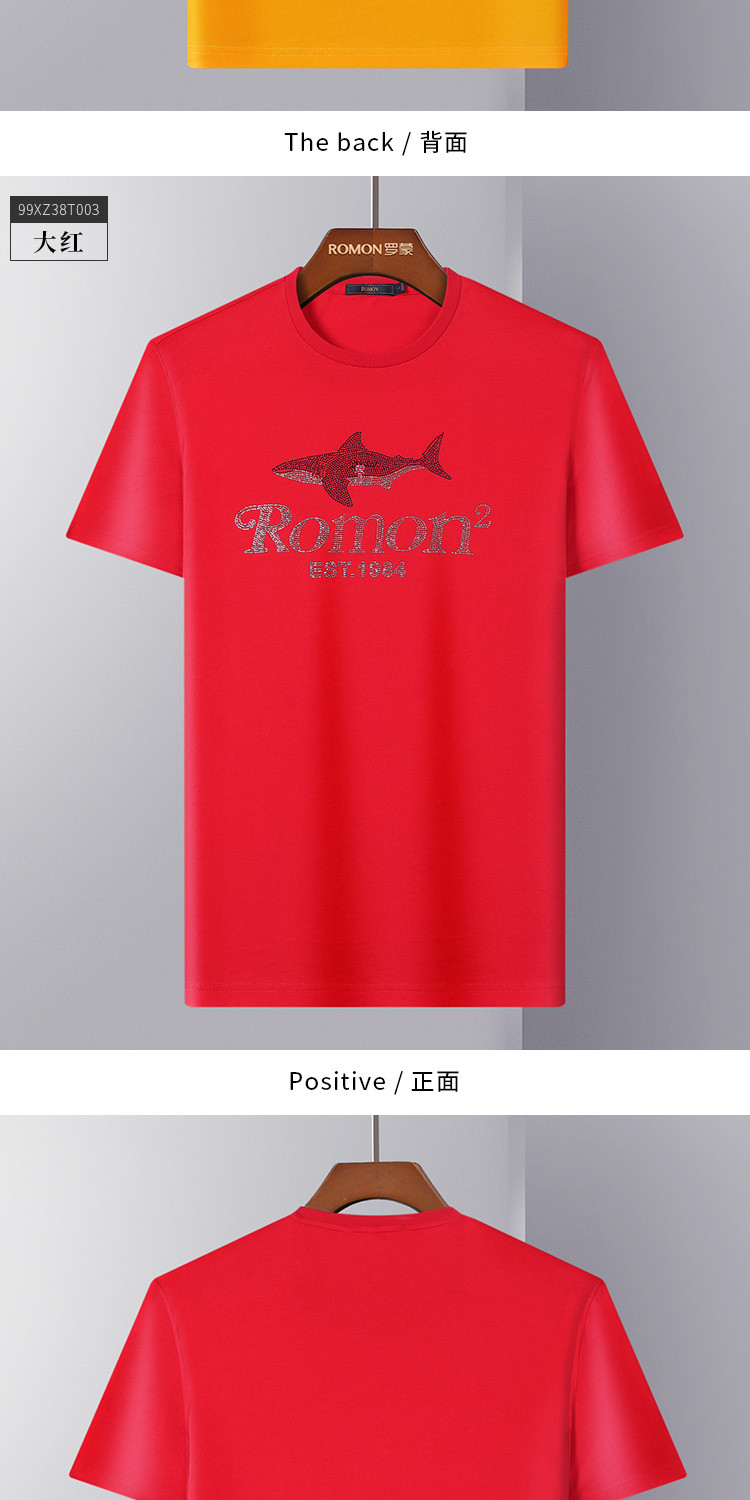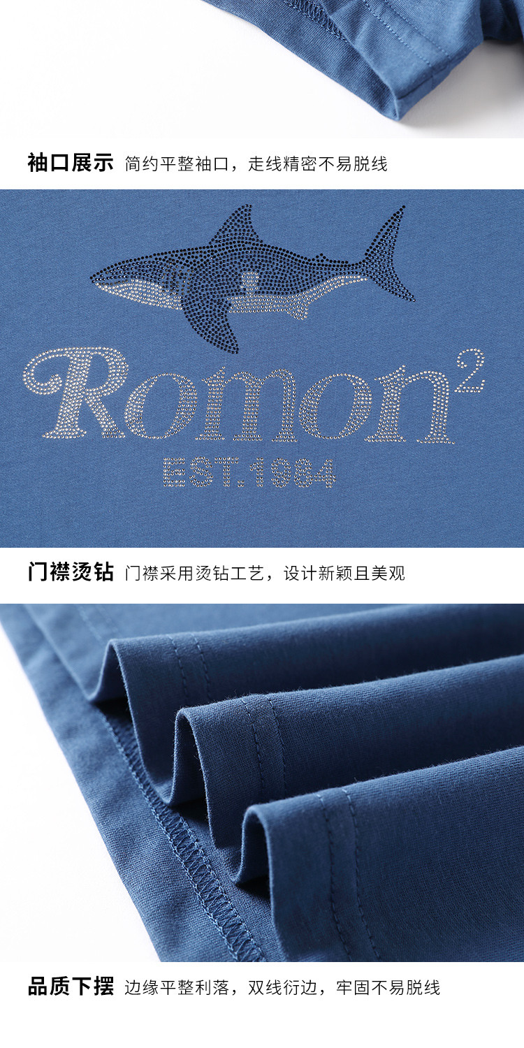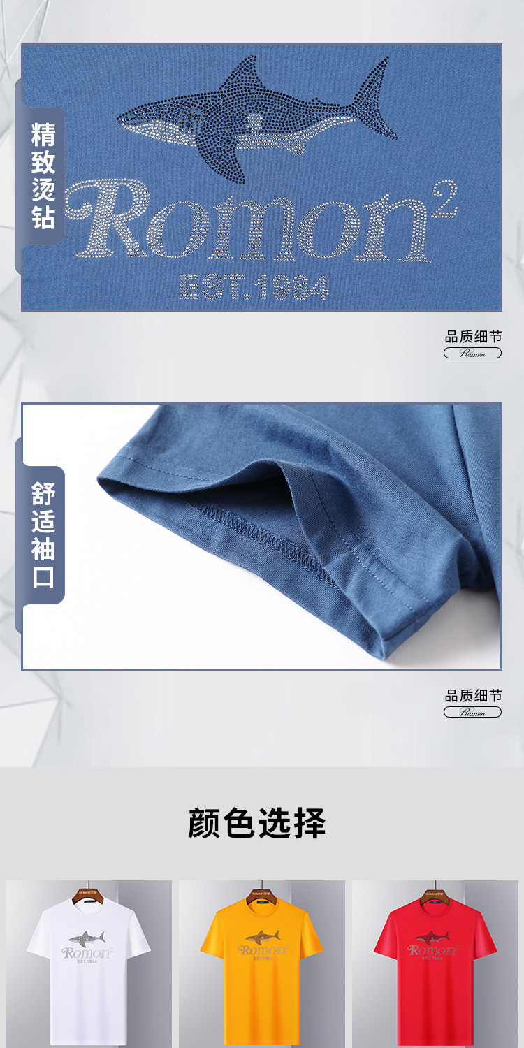 【纯棉透气】罗蒙男士t恤夏季新款时尚印花简约通勤休闲百搭短袖t恤