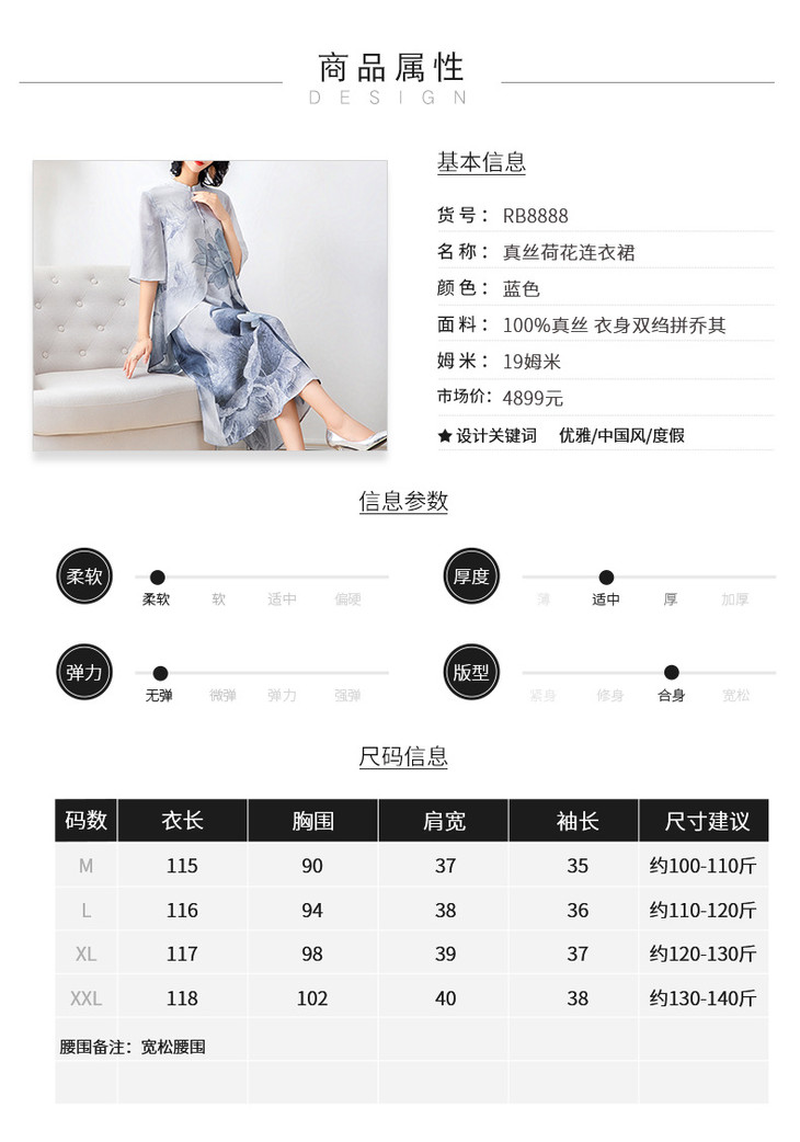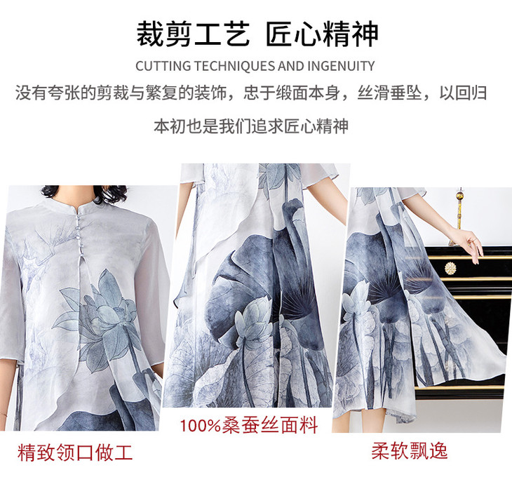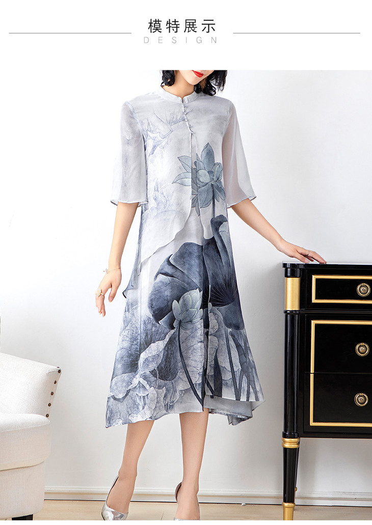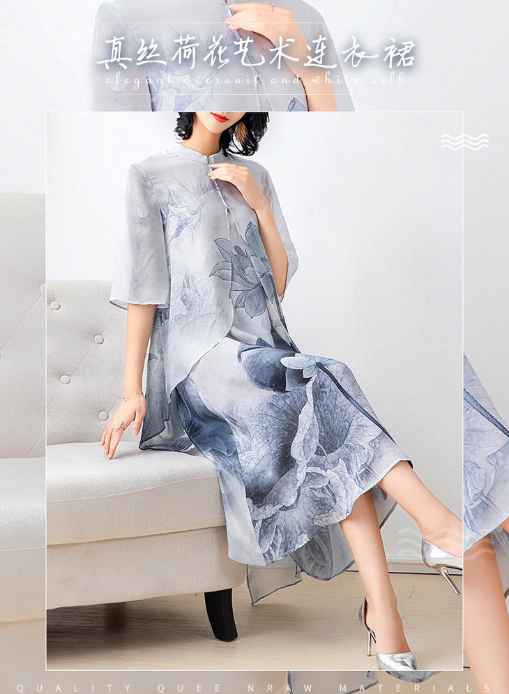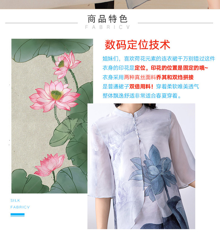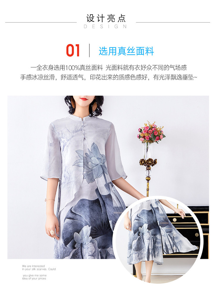 NYT-RB8888新款中国风立领长裙定位印花桑蚕丝仙女气质