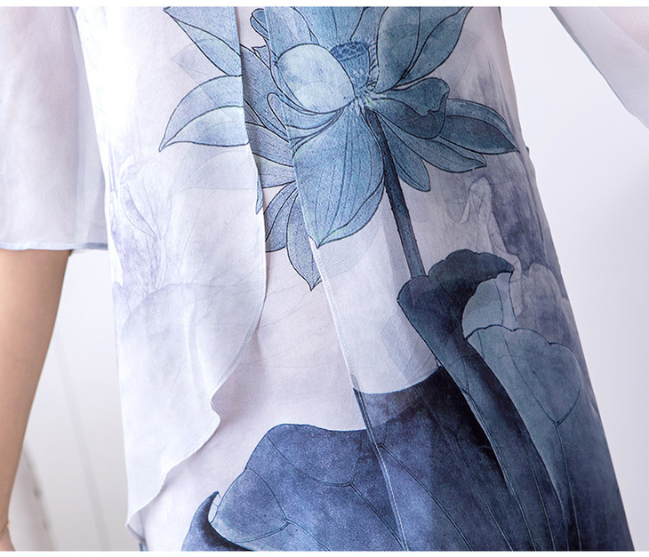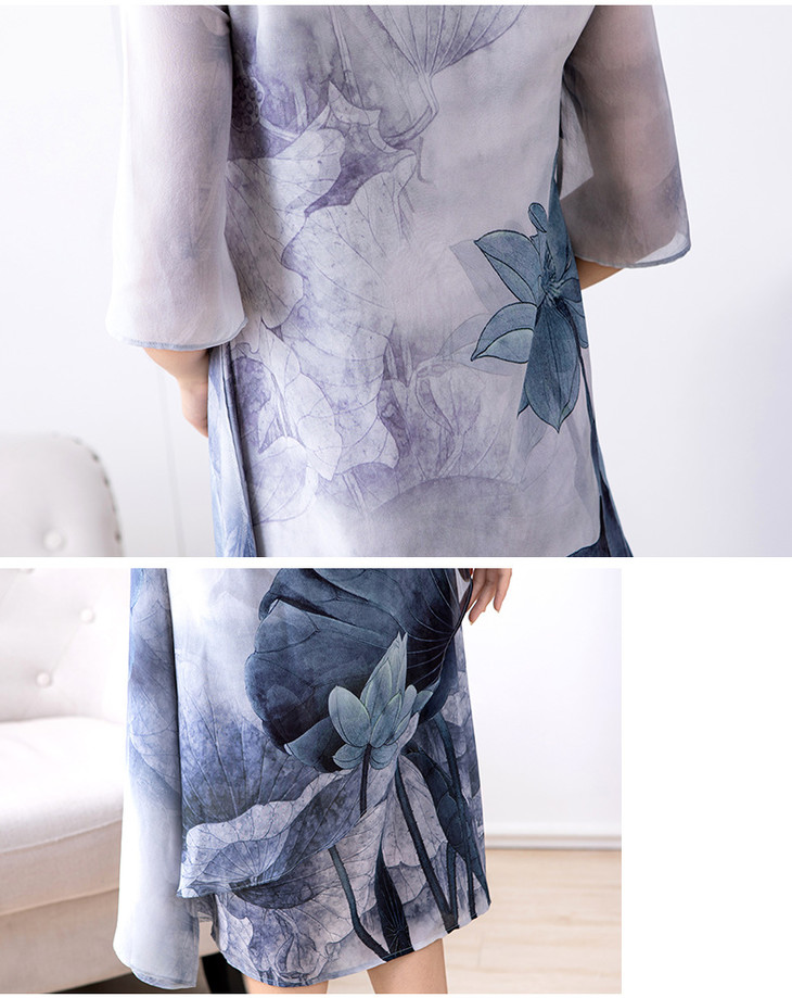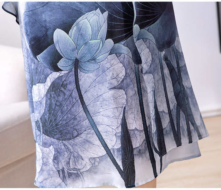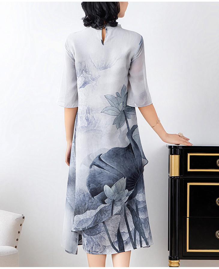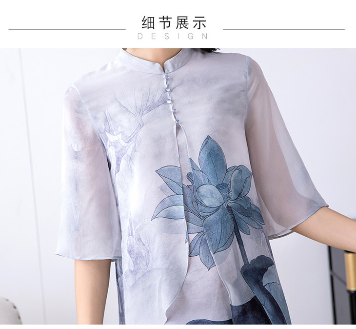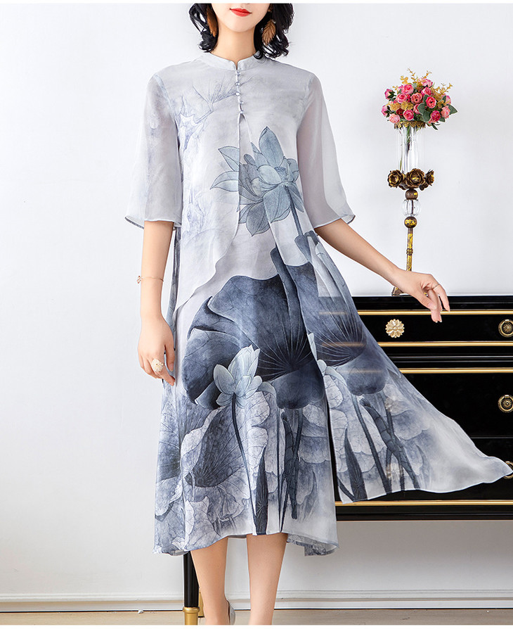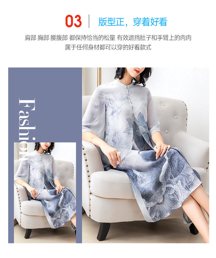 NYT-RB8888新款中国风立领长裙定位印花桑蚕丝仙女气质