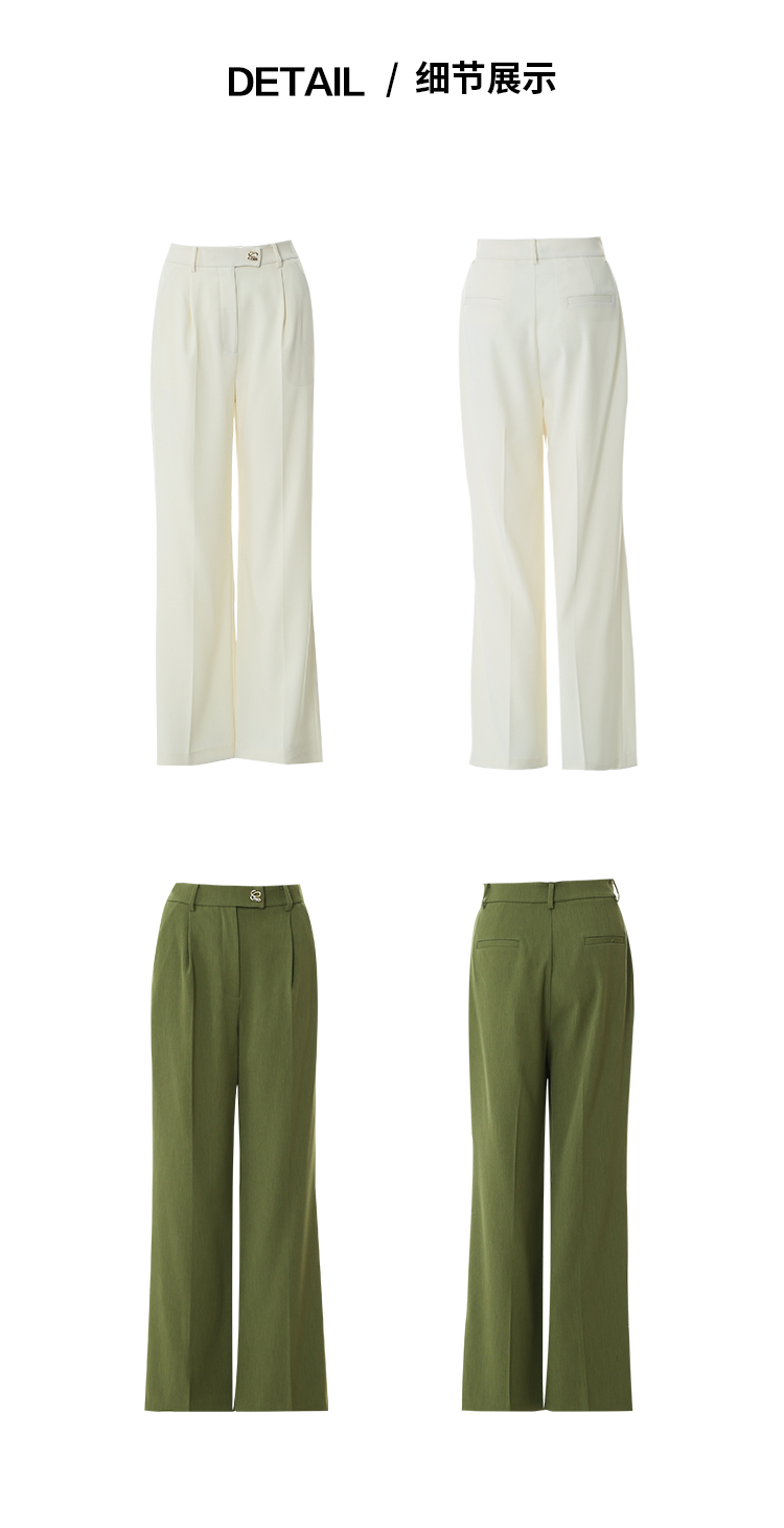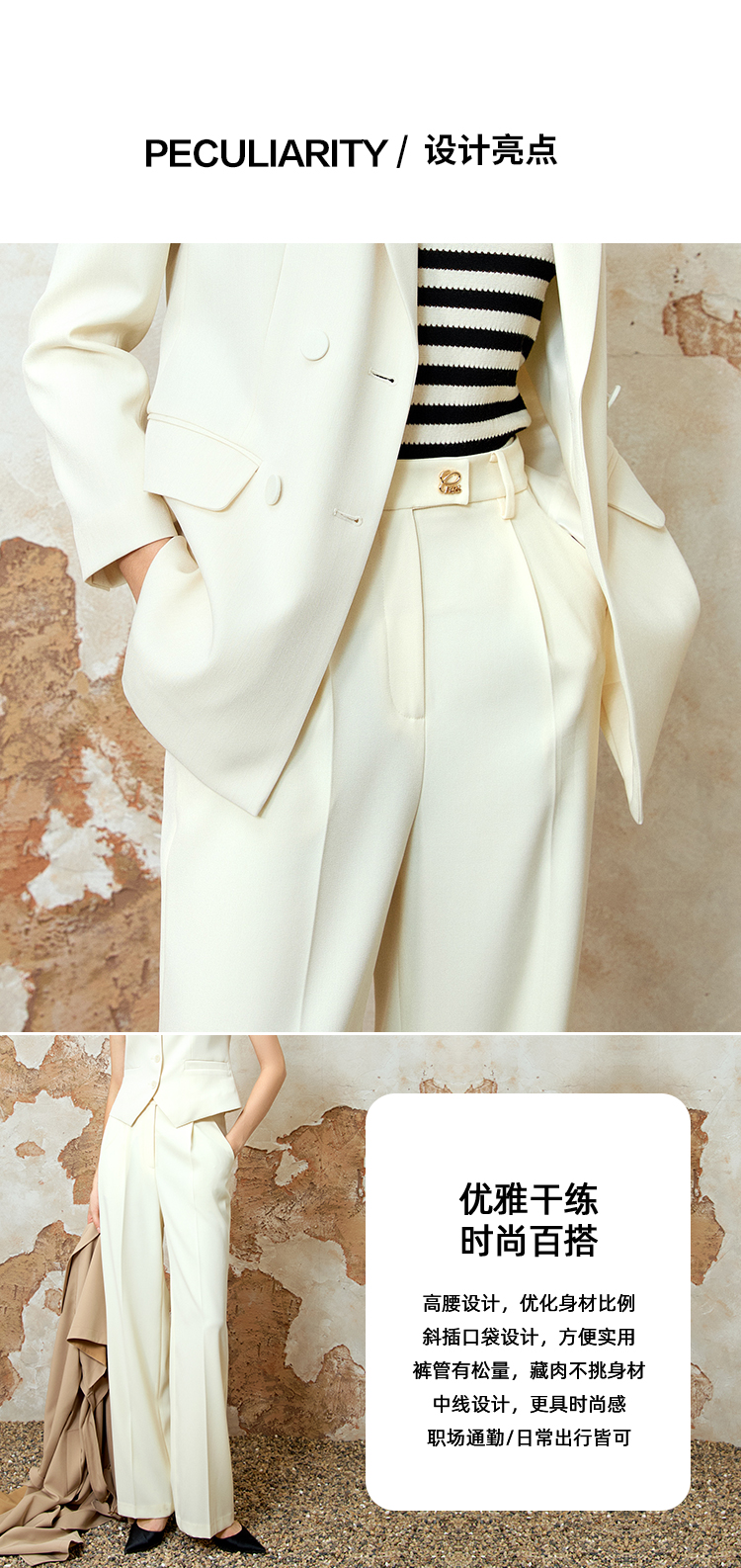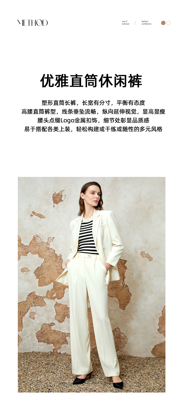 EITIE爱特爱简约高腰显瘦百搭通勤干练休闲裤春新款8105811