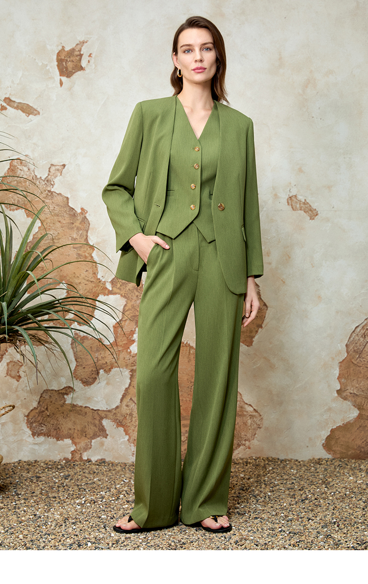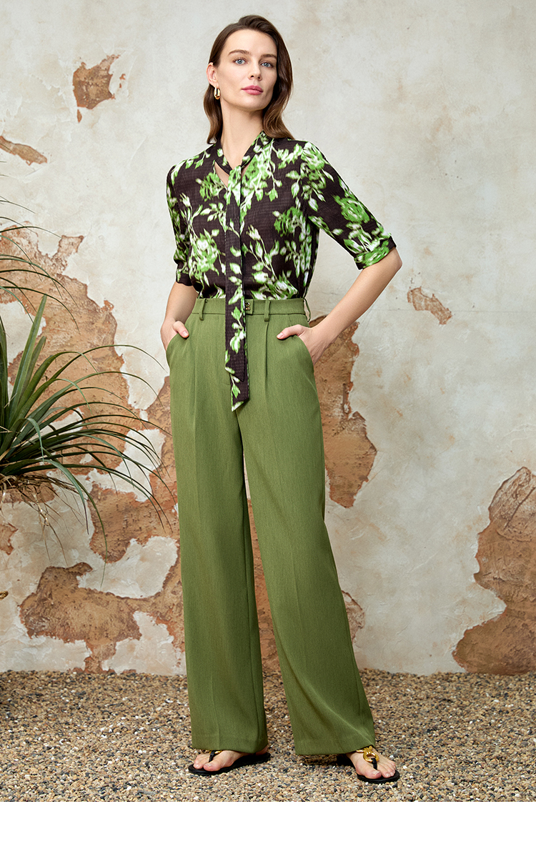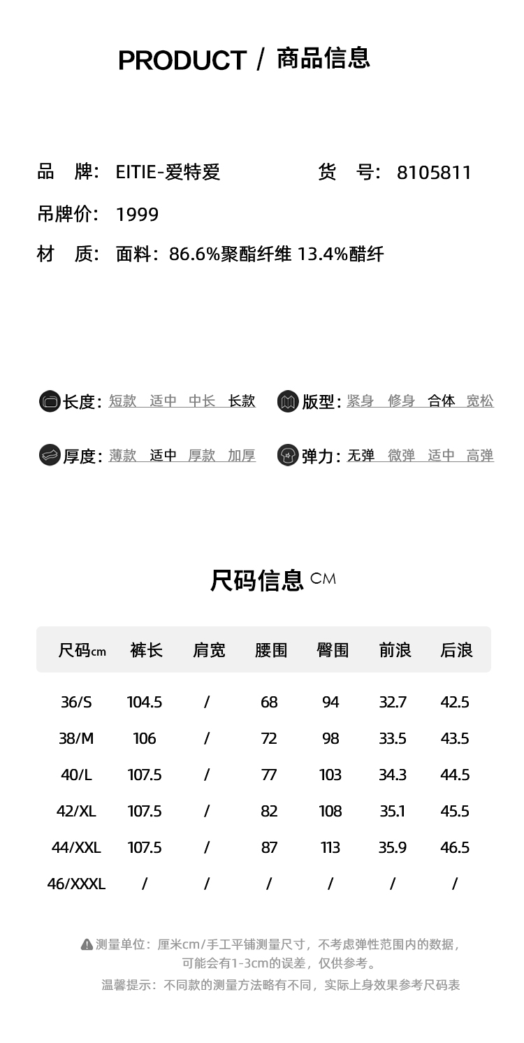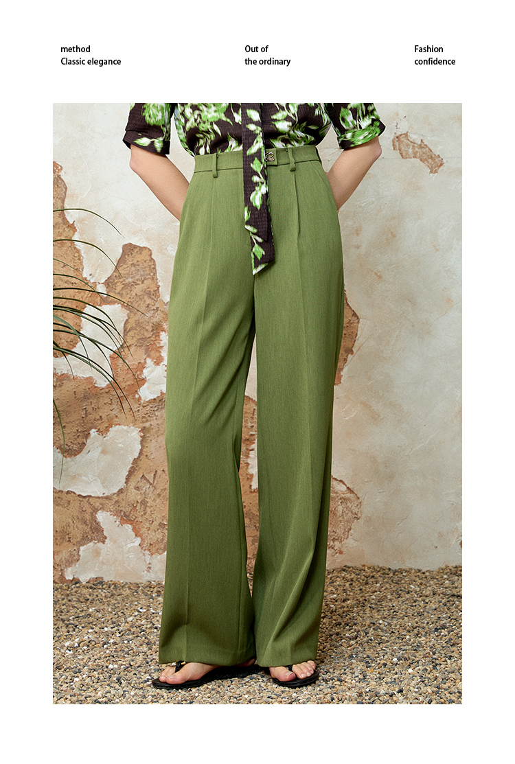 EITIE爱特爱简约高腰显瘦百搭通勤干练休闲裤春新款8105811