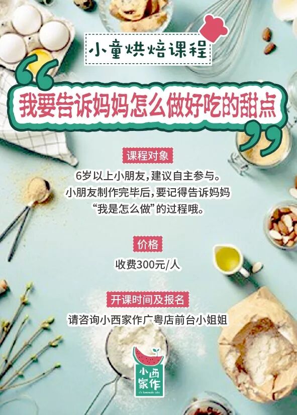 每天一节课,和小姐姐预约,让小朋友们体验小西家作无添加的小童烘焙课程吧![]()