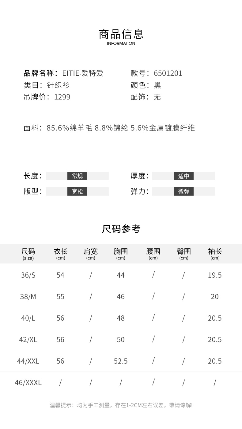 EITIE爱特爱秋季新款高领修身百搭显瘦纯羊毛针织衫女套头C2101806