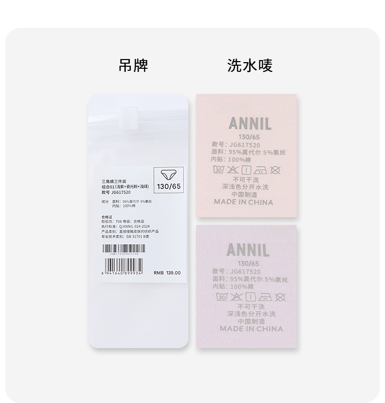 女童三角裤三件装春季新款安奈儿童装JG617520
