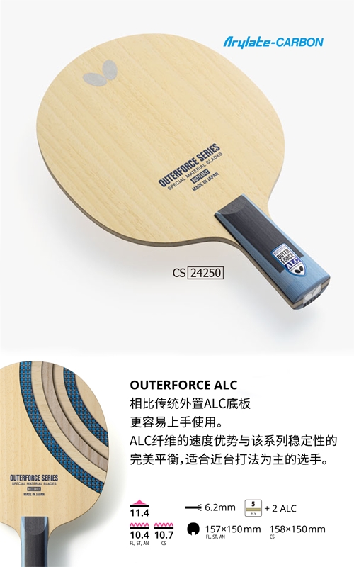 商品名称:Butterfly蝴蝶外力ALC【37341/24250】 专业乒乓球拍底板OUTERFORCE ALC外置5+2结构