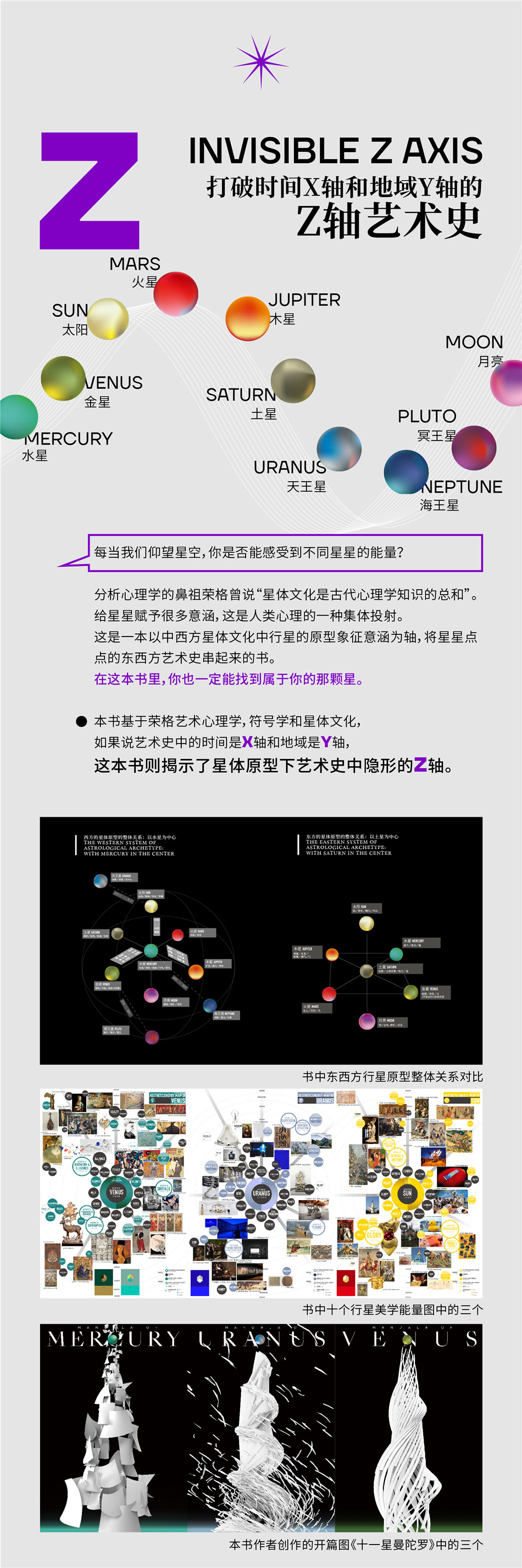 基于荣格艺术心理学,符号学和星体文化,打破时间轴X和地区轴Y,揭示星体原型下艺术史中隐形的Z轴,并试图减少西方中心论的影响。由人的本原出发,寻找人性和真实。