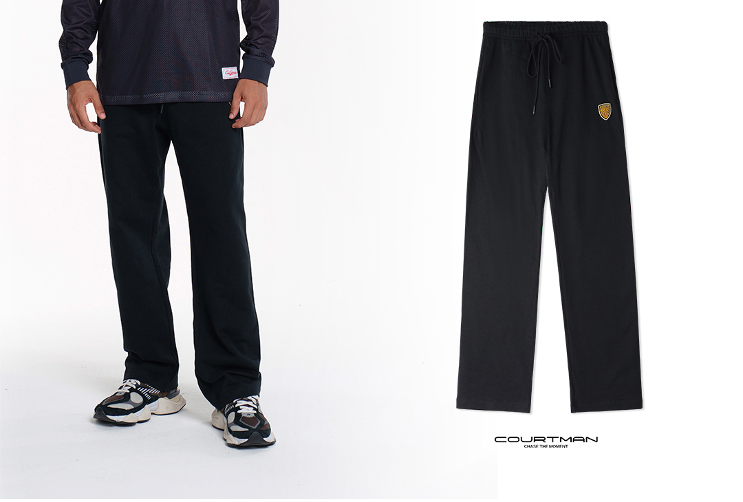COURTMAN野球帝 运动直筒徽章宽松针织裤跑步训练篮球休闲卫裤男
