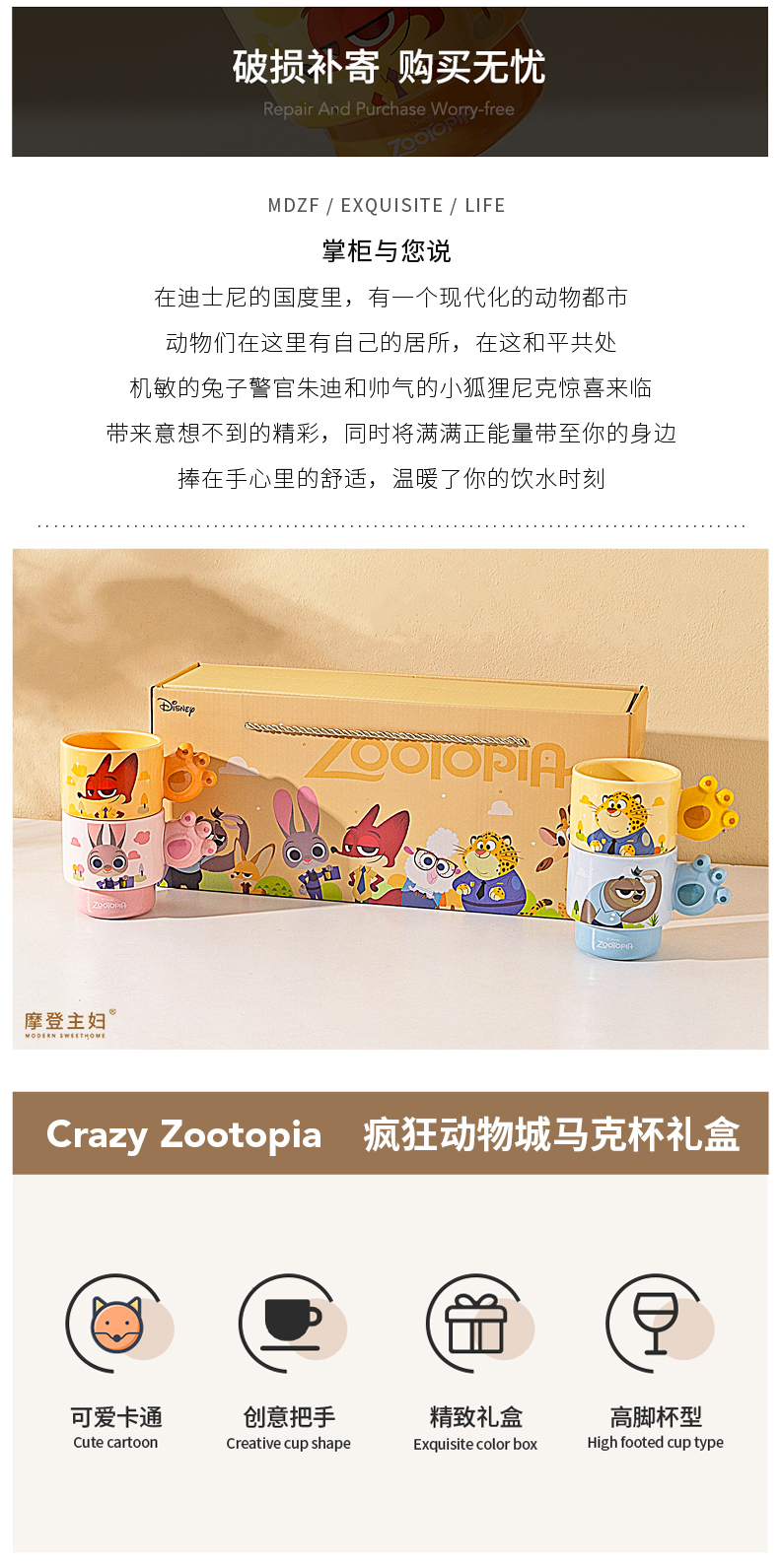 摩登主妇疯狂动物城马克杯生日礼物情侣水杯家用陶瓷喝水咖啡杯子