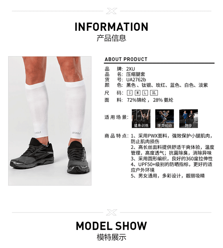 2XU Performance Run Calf Sleeve 速干透气压缩腿套 跑马拉松比赛越野跑步耐力跑训练慢跑健身徒步运动