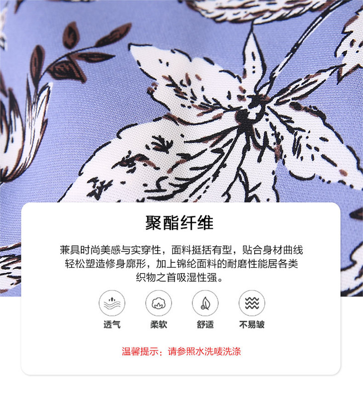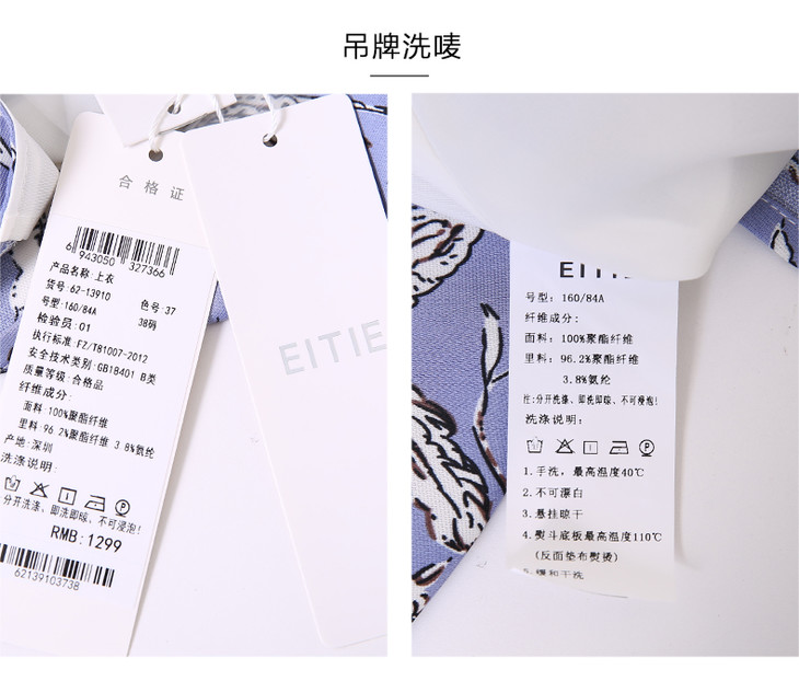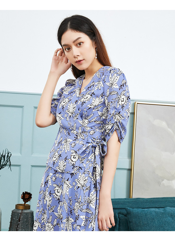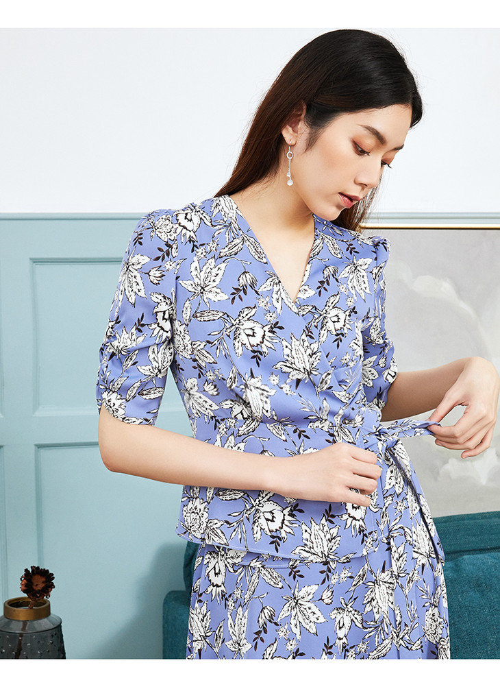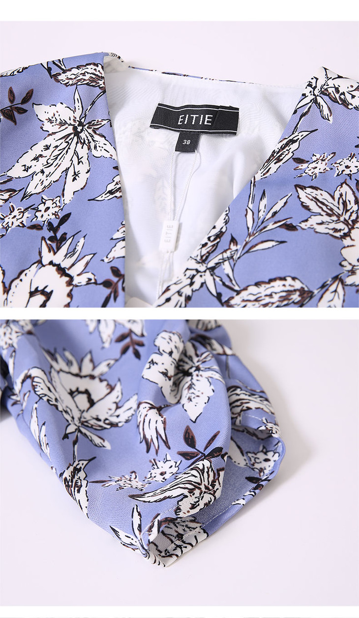 EITIE爱特爱女装夏款复古围裹收腰泡泡袖港风印花上衣女