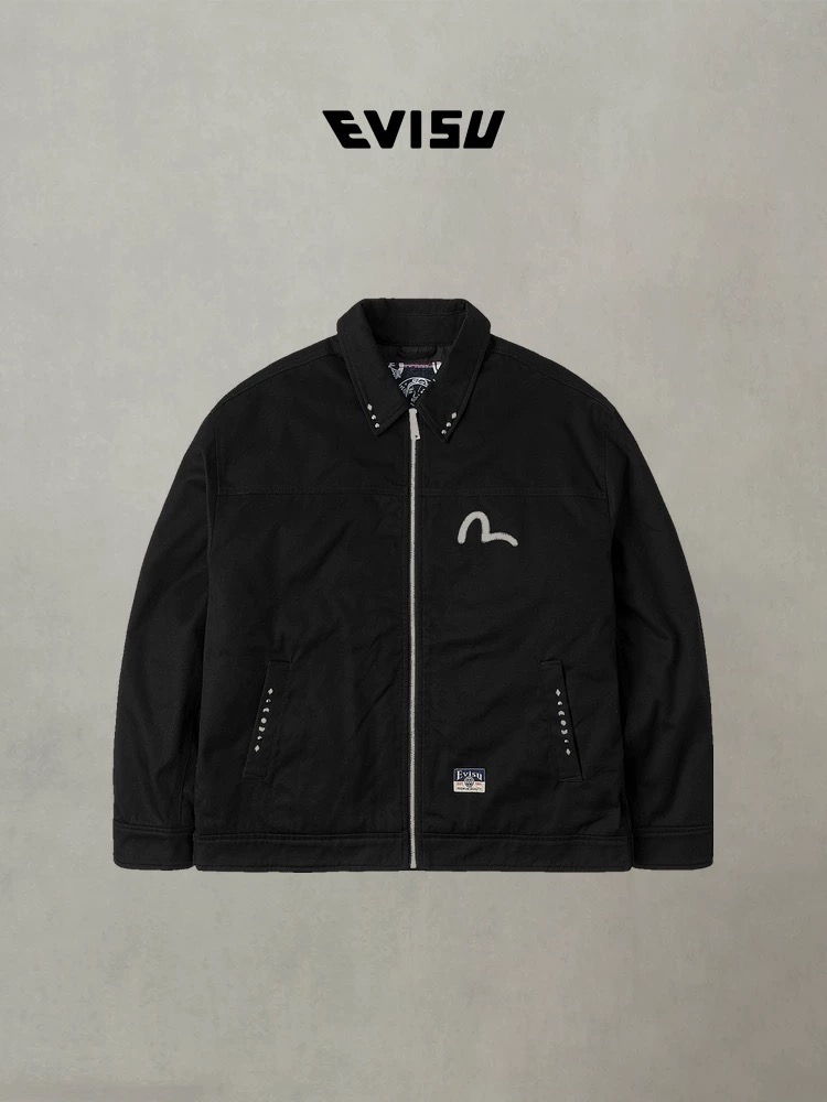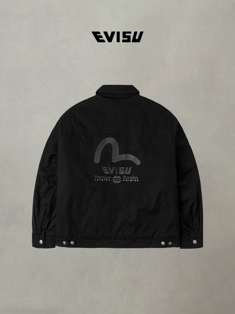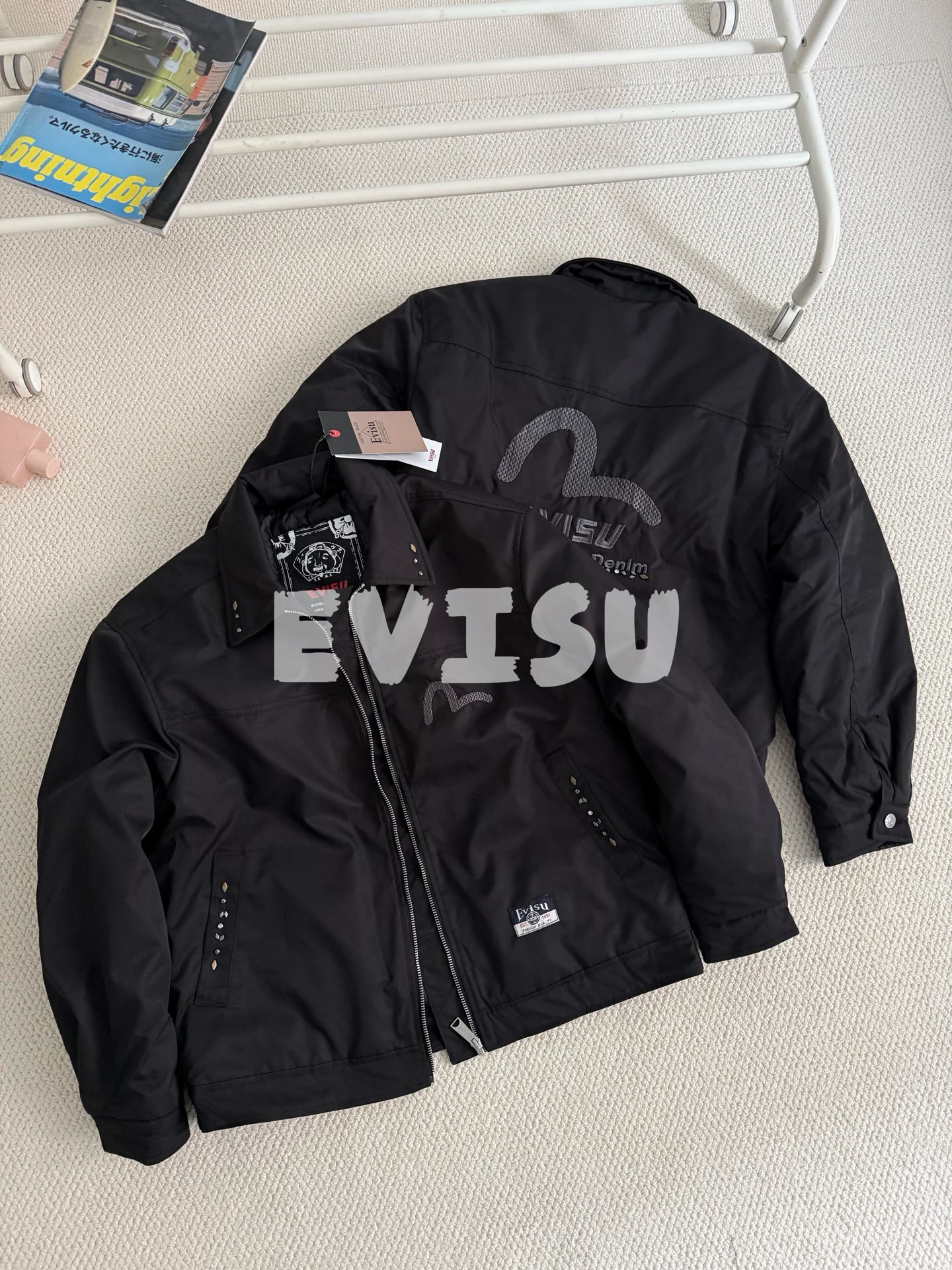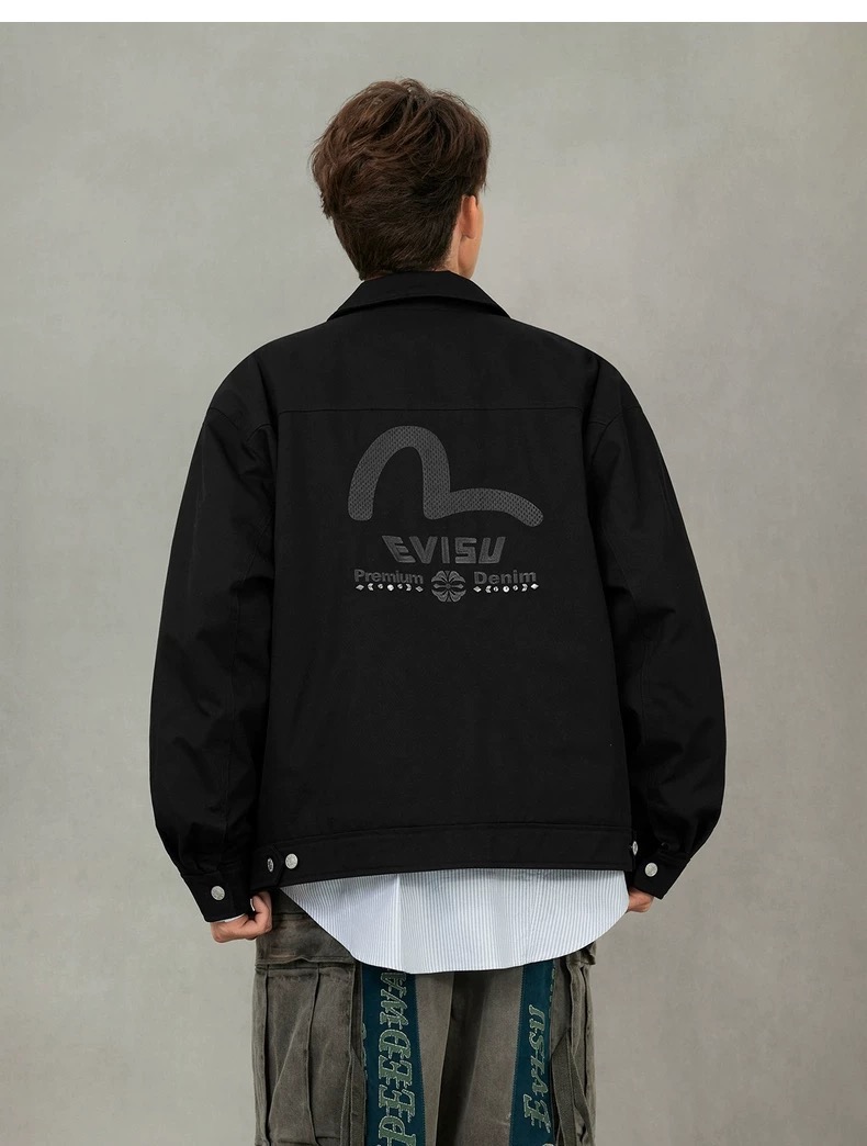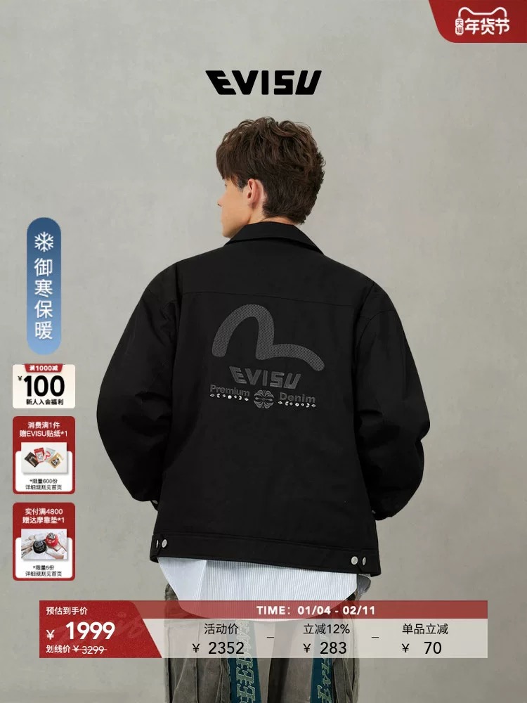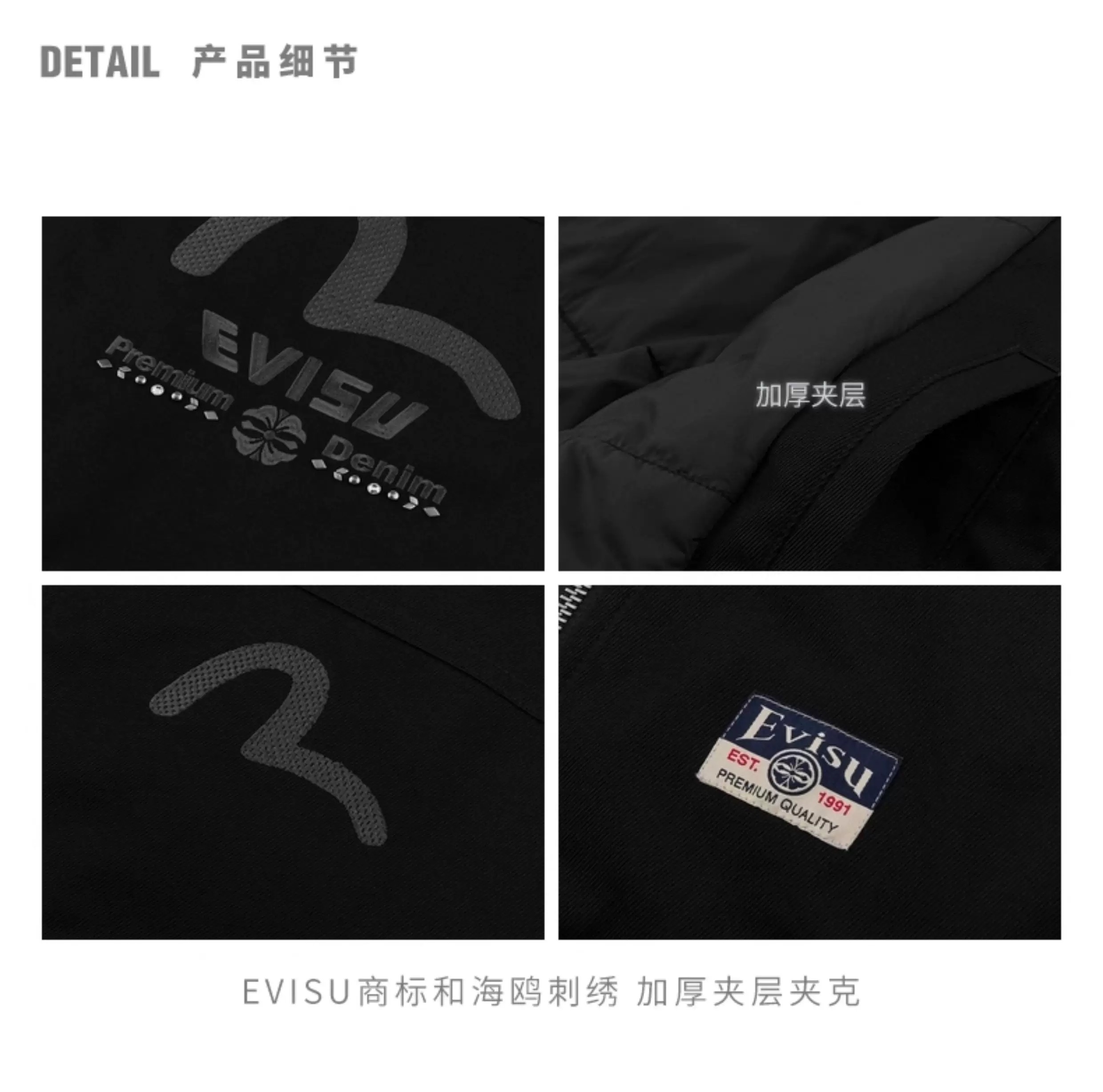 EVISU福神冬季男士商标刺绣翻领加厚休闲通勤夹克棉衣外套