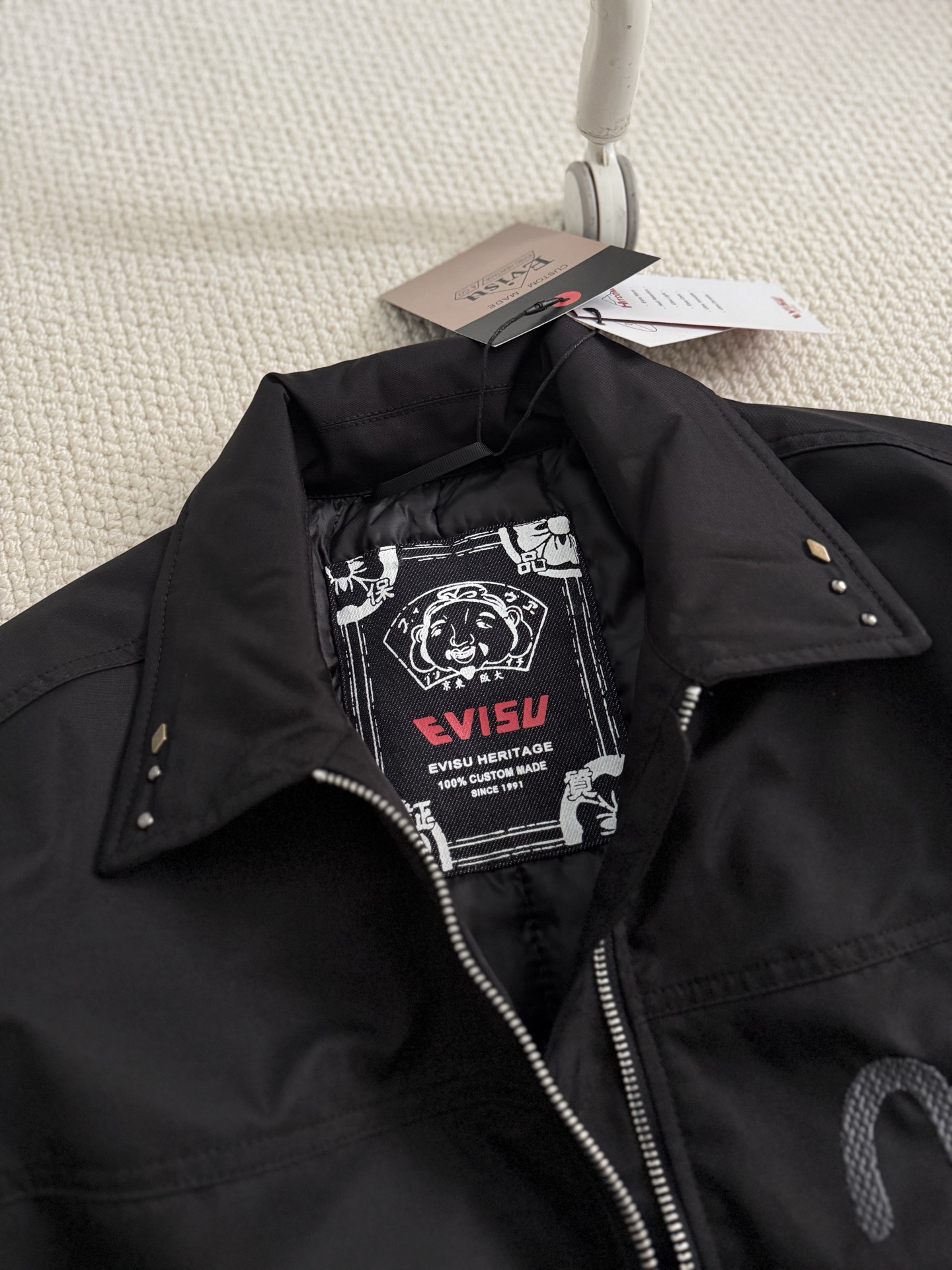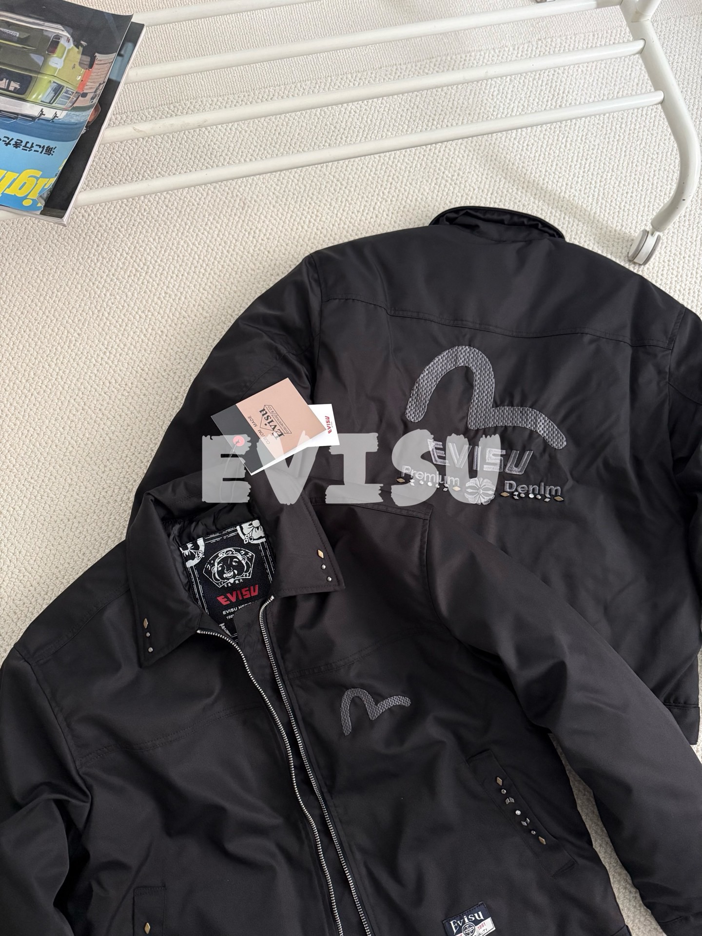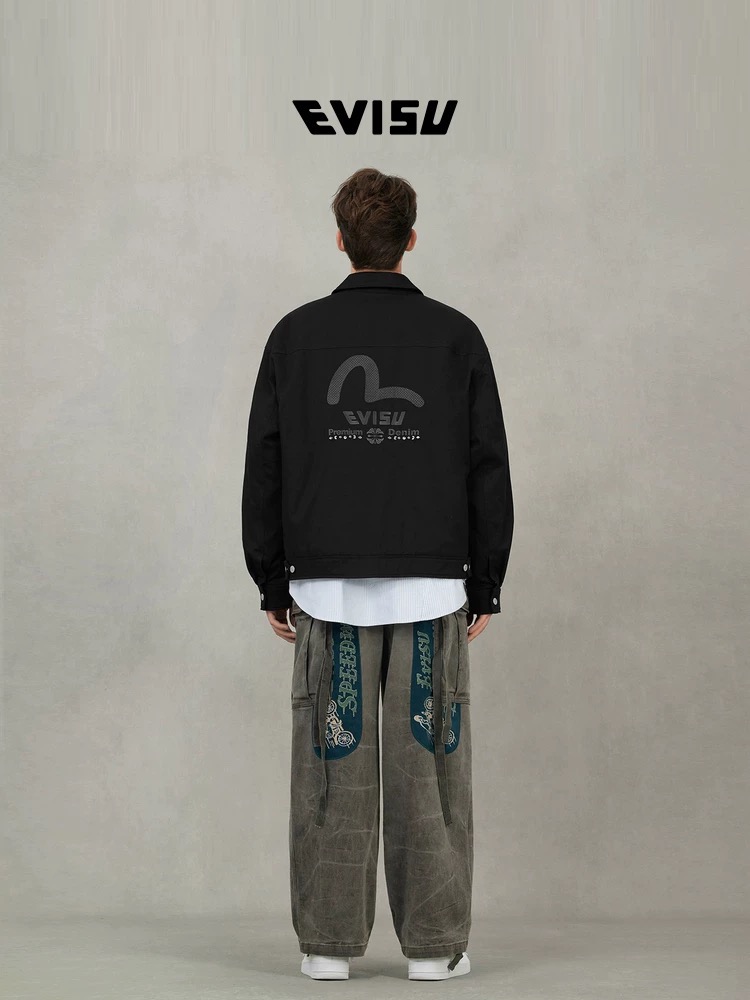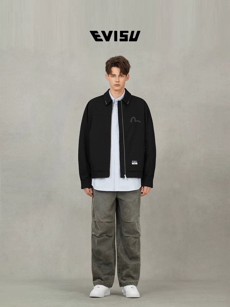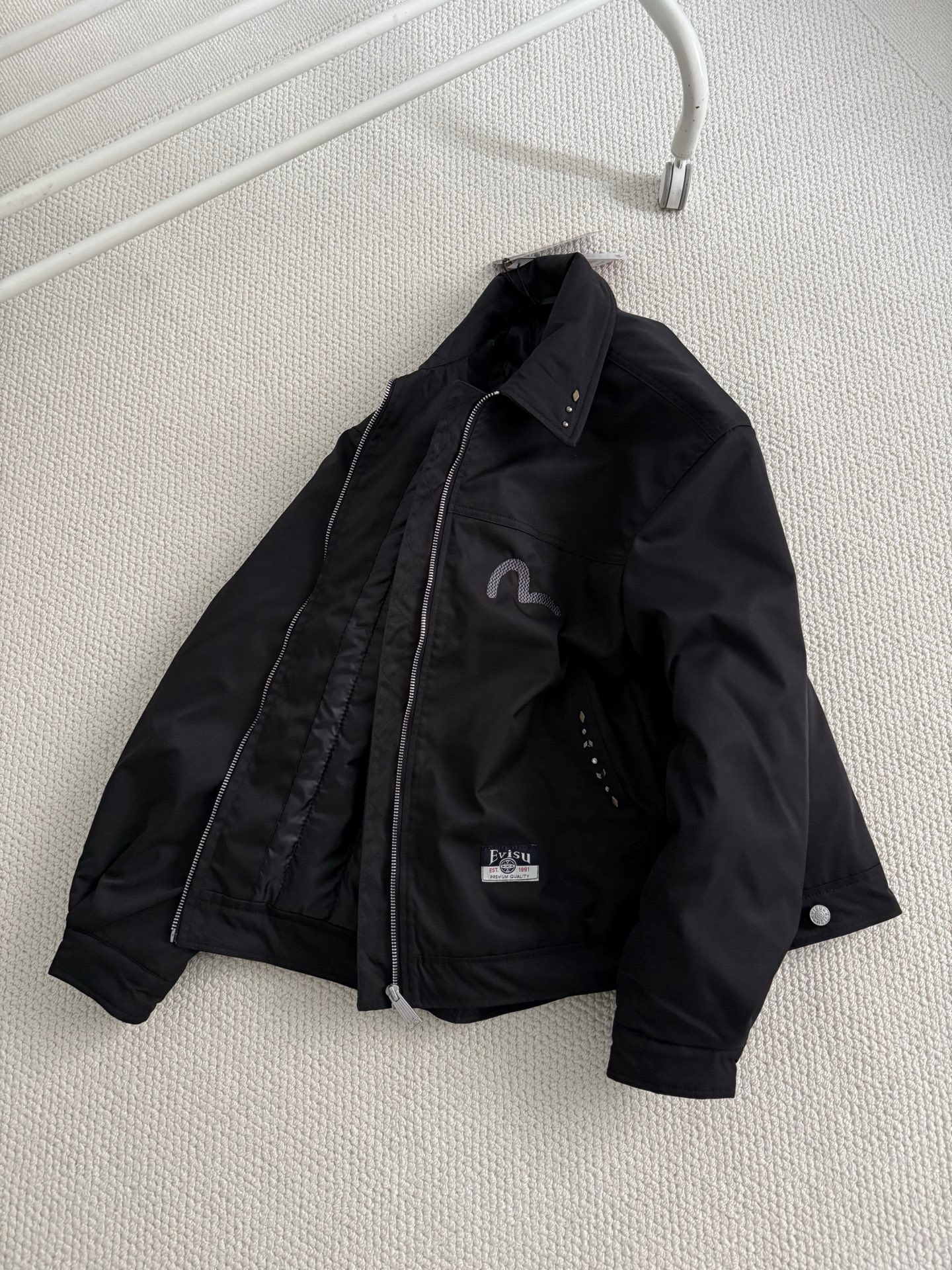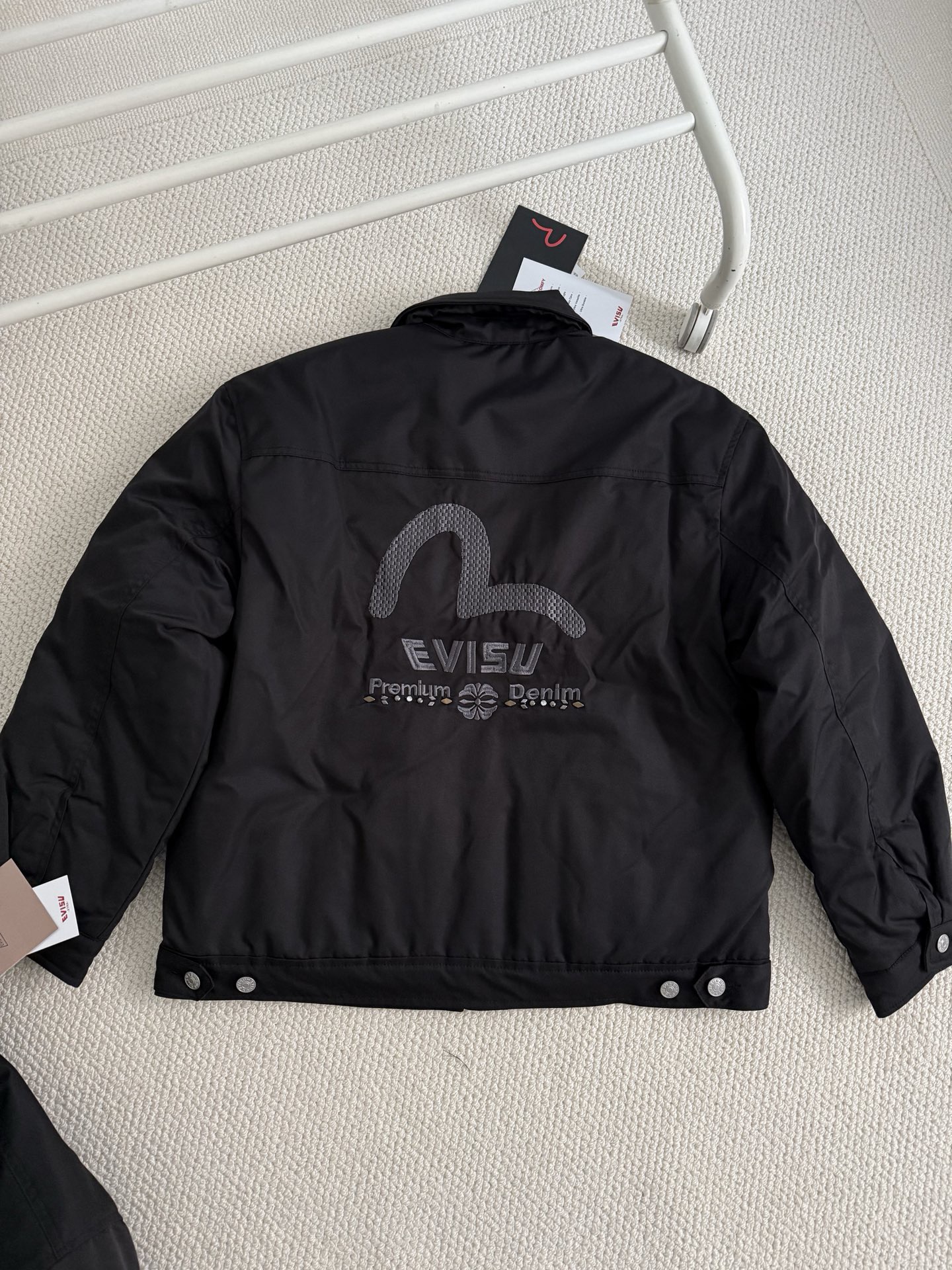 EVISU福神冬季男士商标刺绣翻领加厚休闲通勤夹克棉衣外套