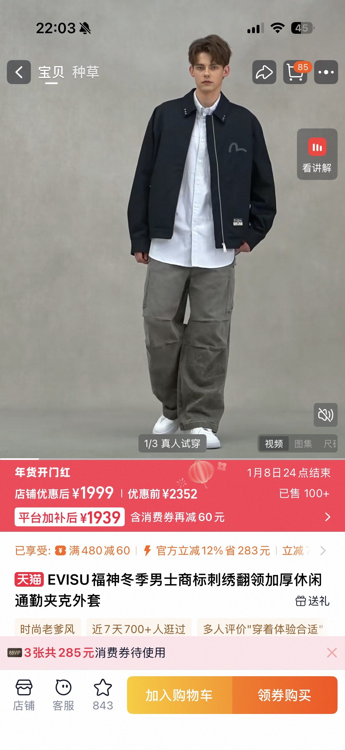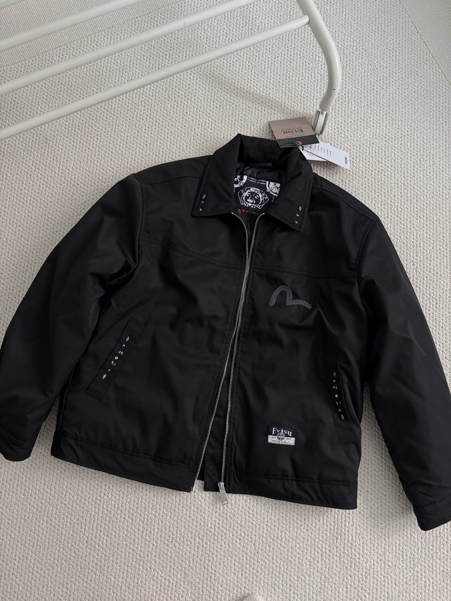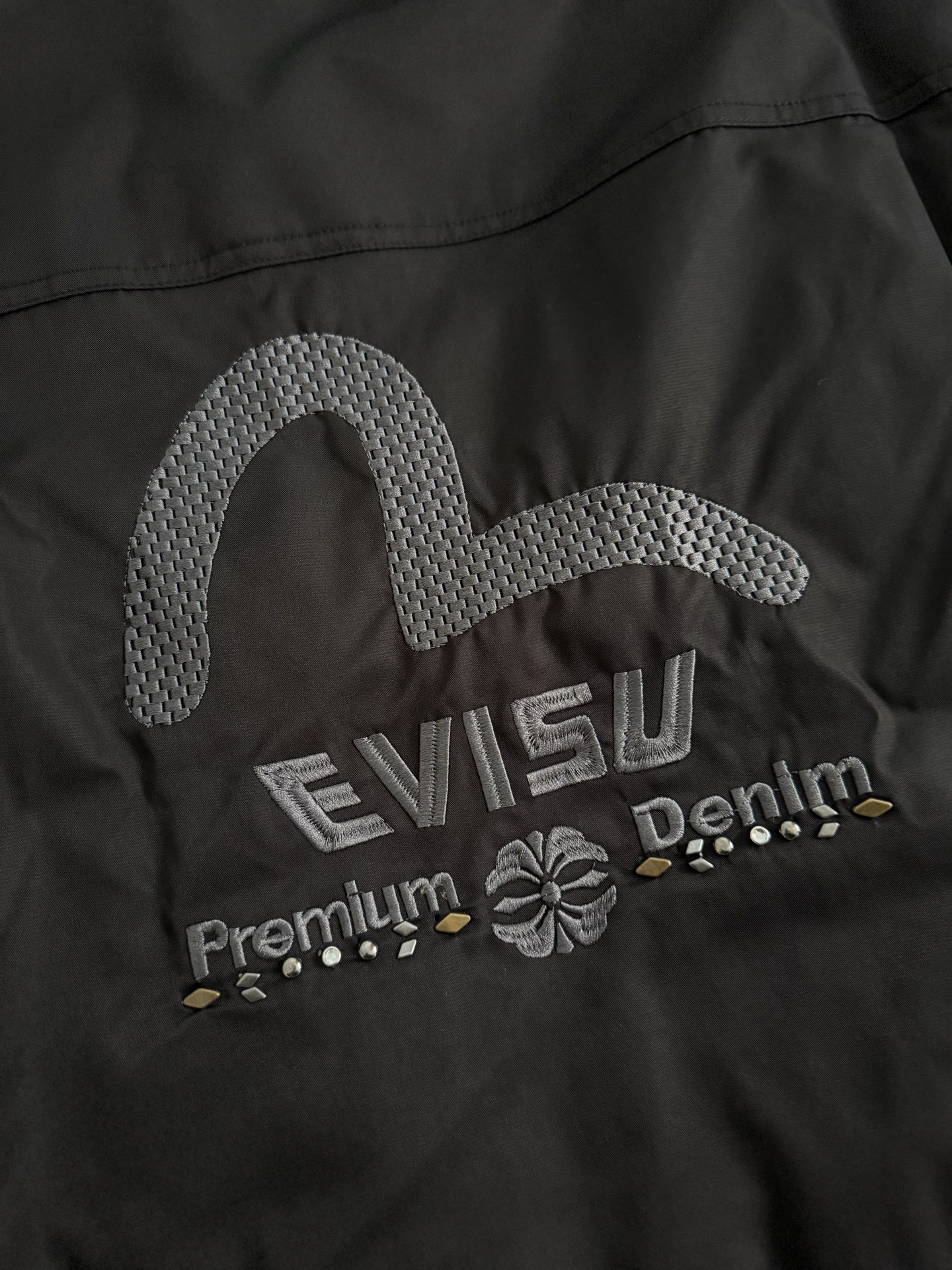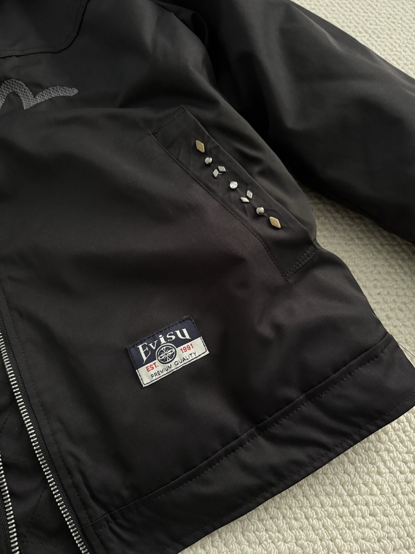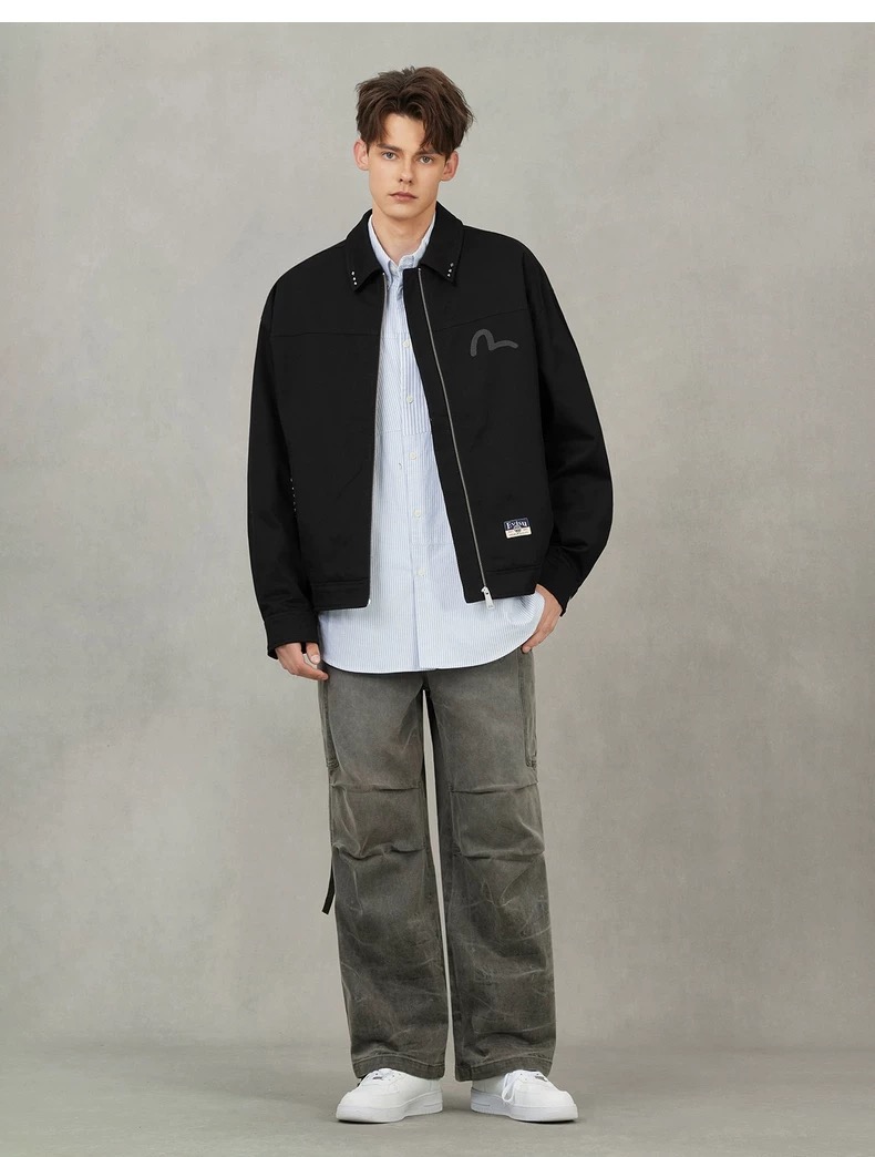 EVISU福神冬季男士商标刺绣翻领加厚休闲通勤夹克棉衣外套