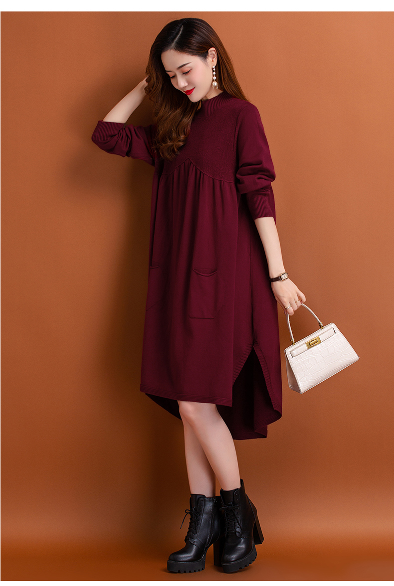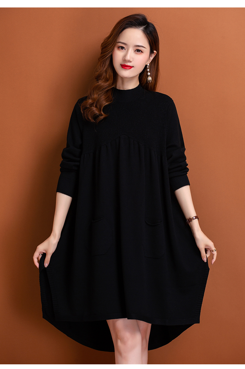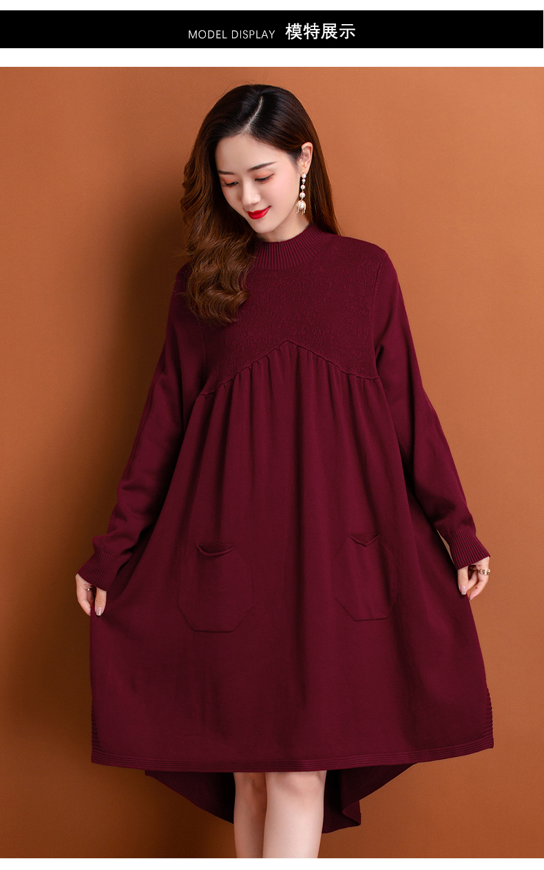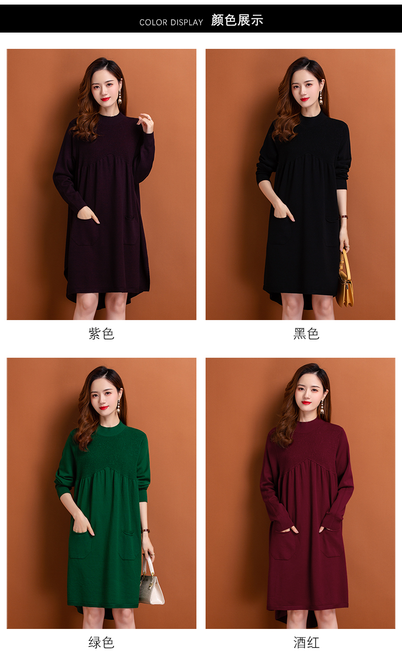 前短后长连衣裙,大码胖mm遮肚藏肉裙子200斤秋冬中长款毛衣裙洋气CC-92108