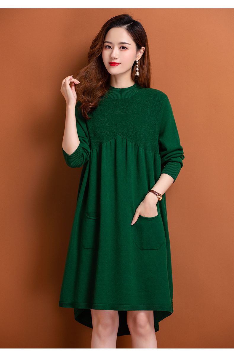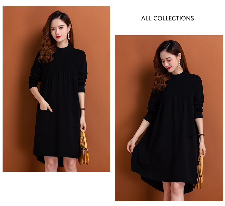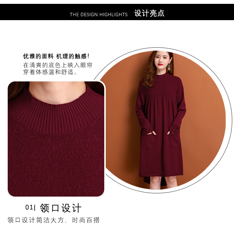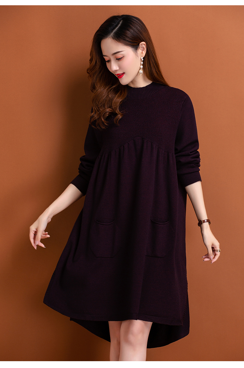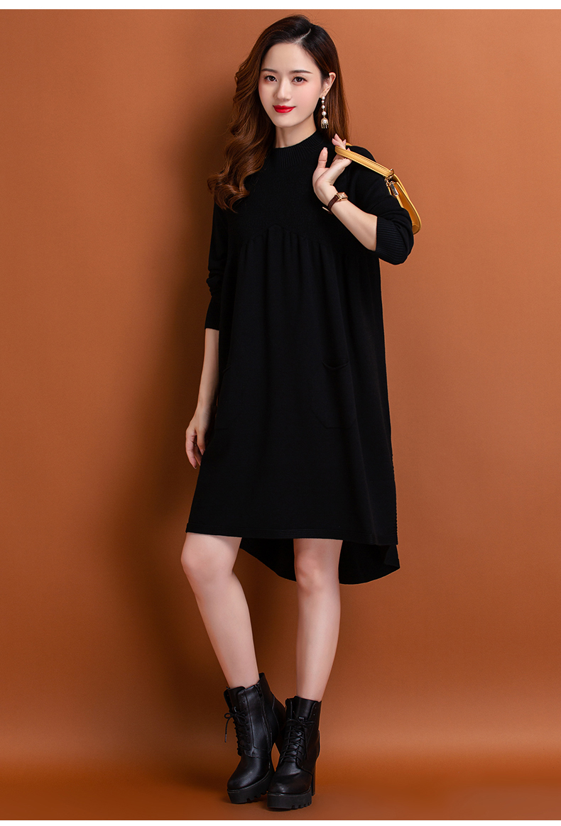 前短后长连衣裙,大码胖mm遮肚藏肉裙子200斤秋冬中长款毛衣裙洋气CC-92108